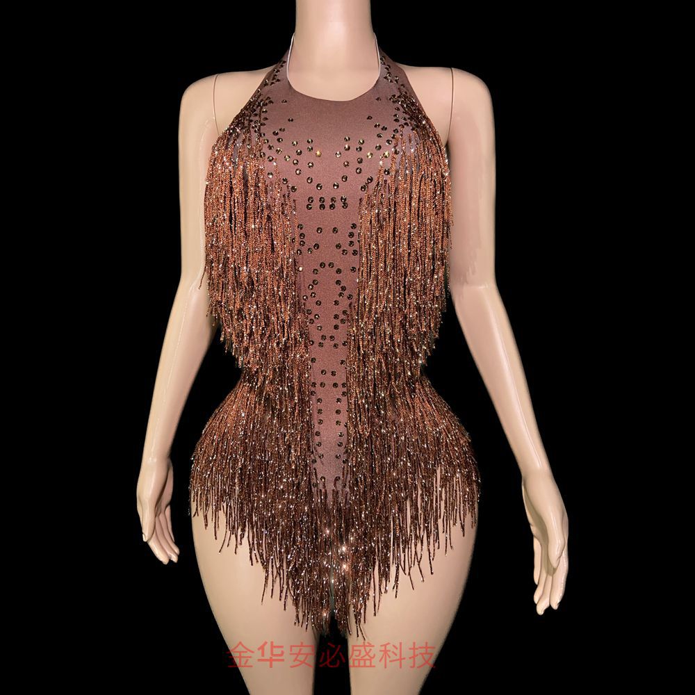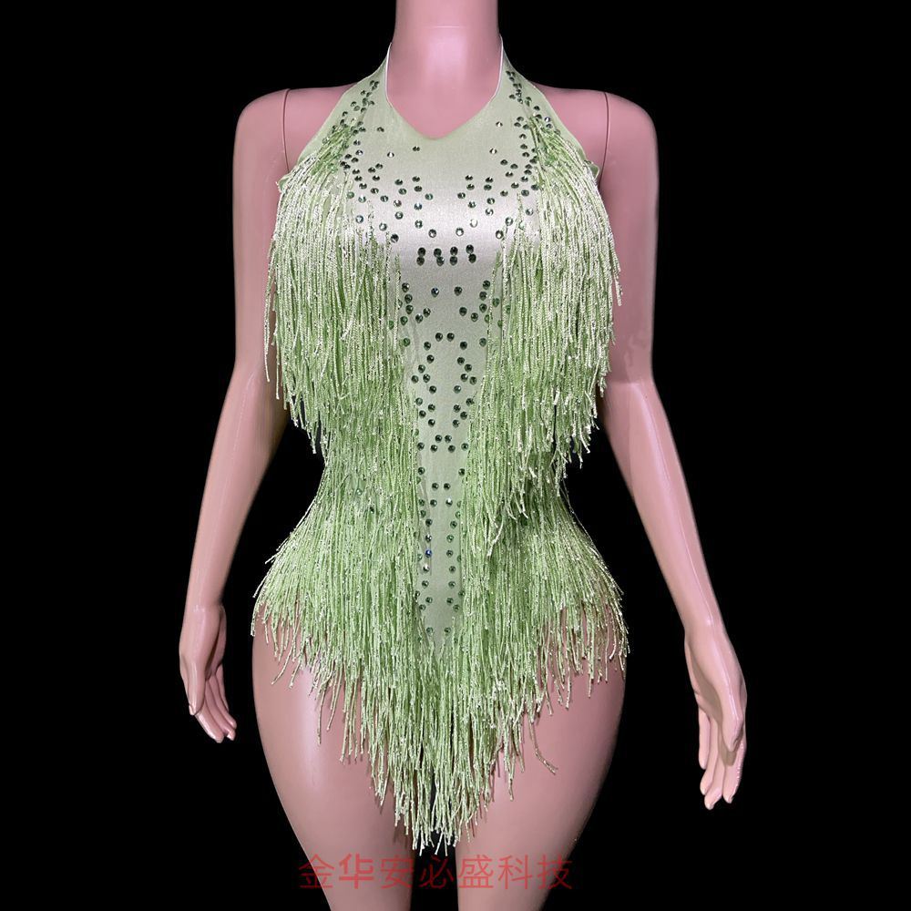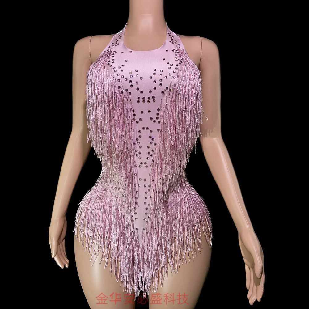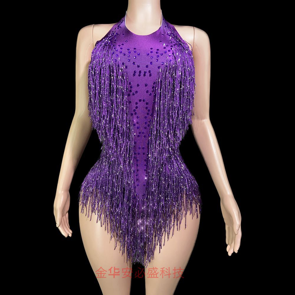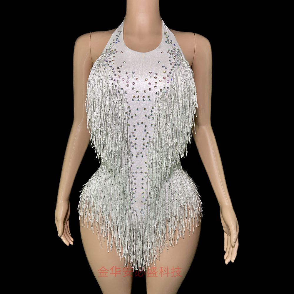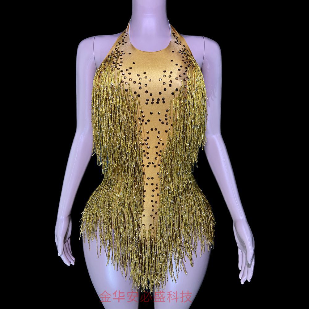 Хит продаж на Amazon: сексуальный безрукавный комбинезон с бахромой и яркими стразами для танцев, одежда для латиноамериканских танцев и соревнований.
