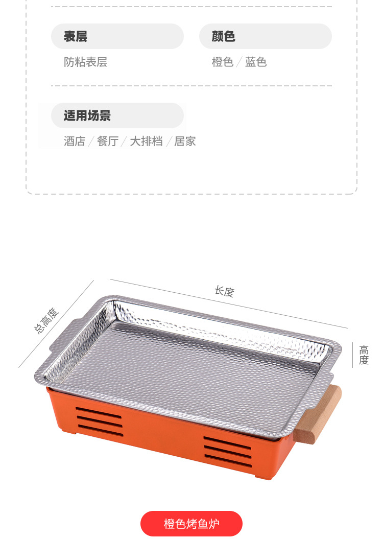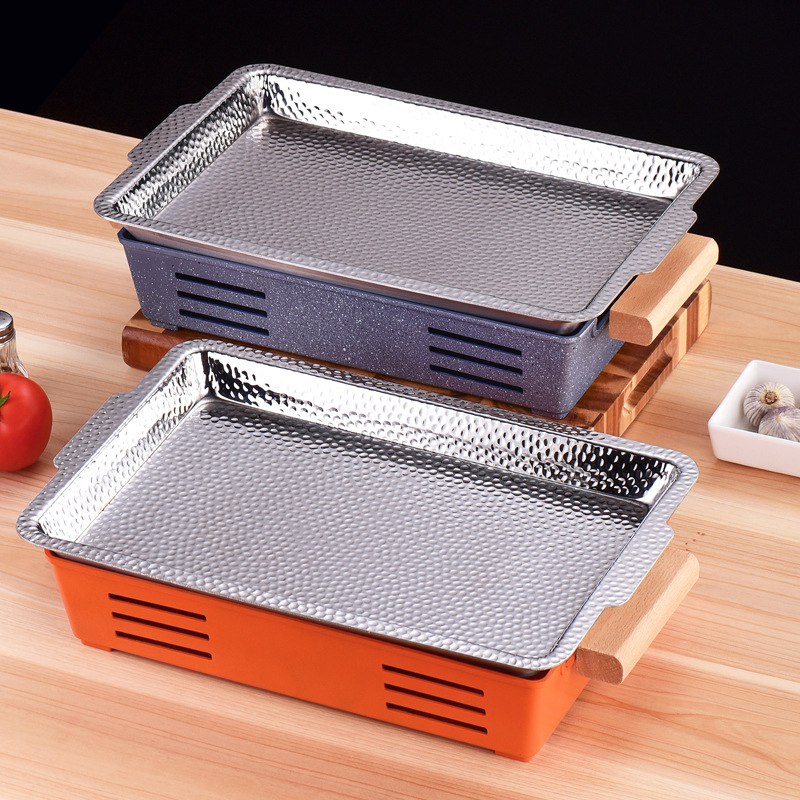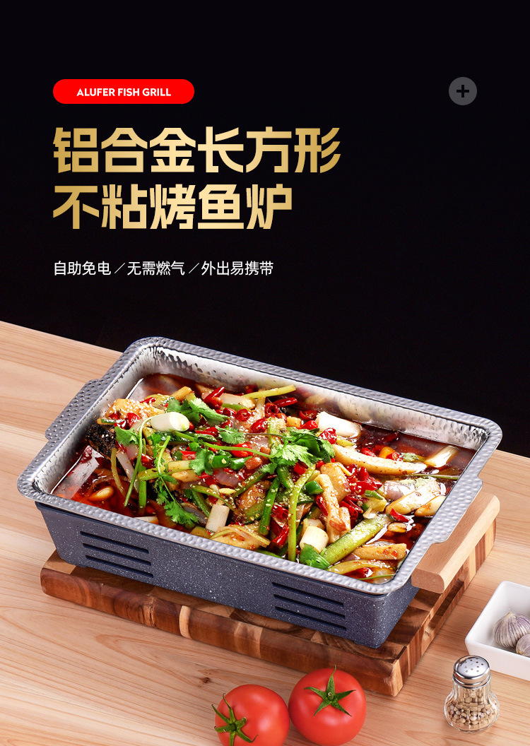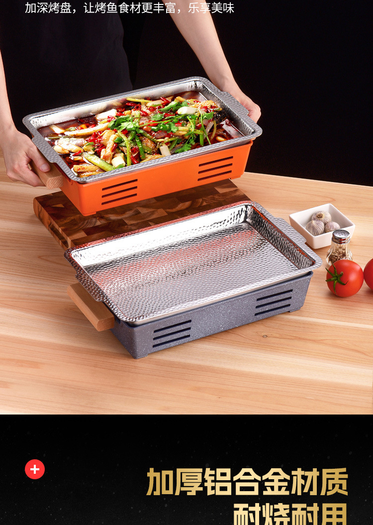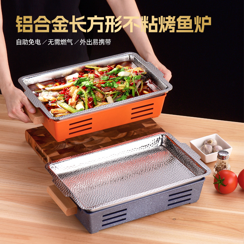 Коммерческий алюминиевый сплав Прямоугольный антипригарный рыбный гриль Изоляция спирта Горшок с лягушкой Морепродукты Большая тарелка для кафе Маленькая Рыбная тарелка на гриле