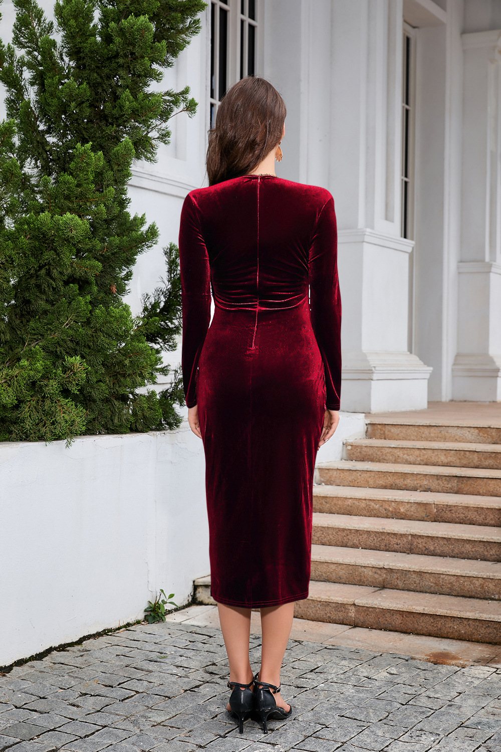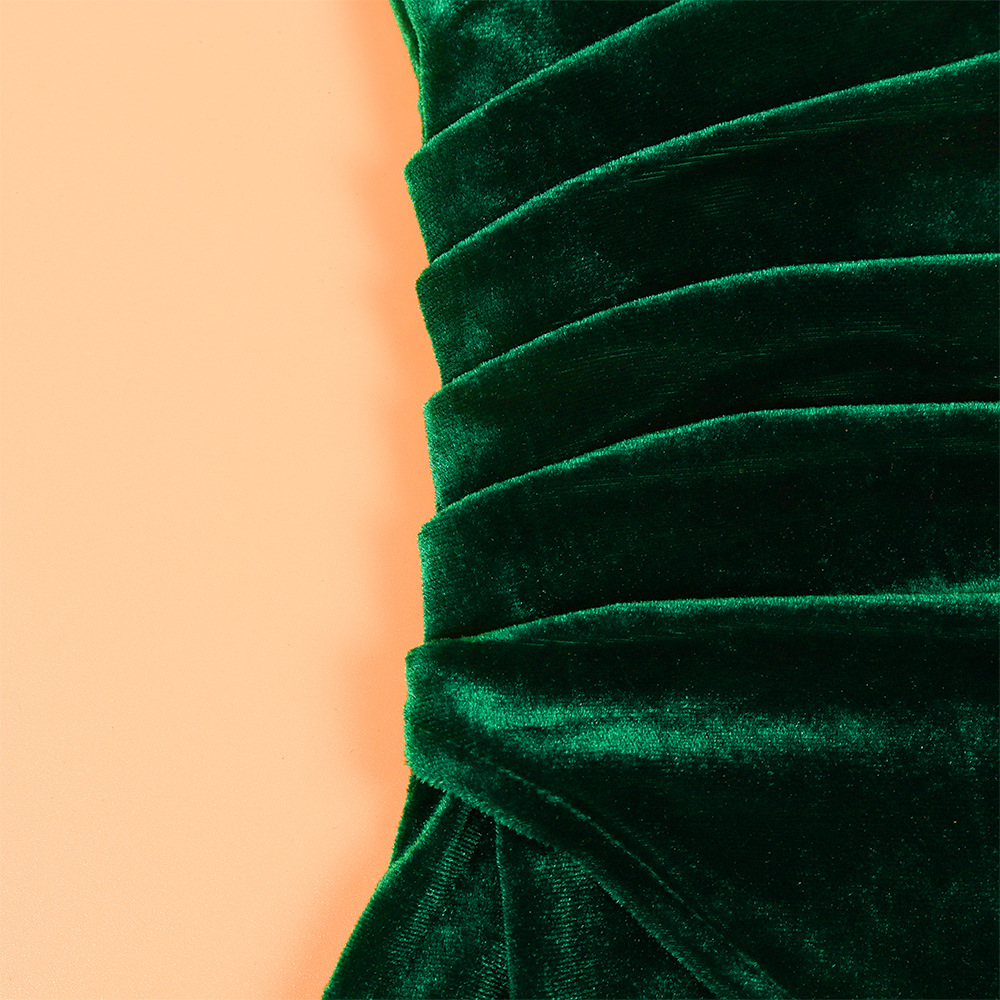 2023 Женское платье средней длины с трансграничным воротником-лебедем Amazon, глубоким V-образным вырезом и запахом, разрезным подолом и длинным рукавом