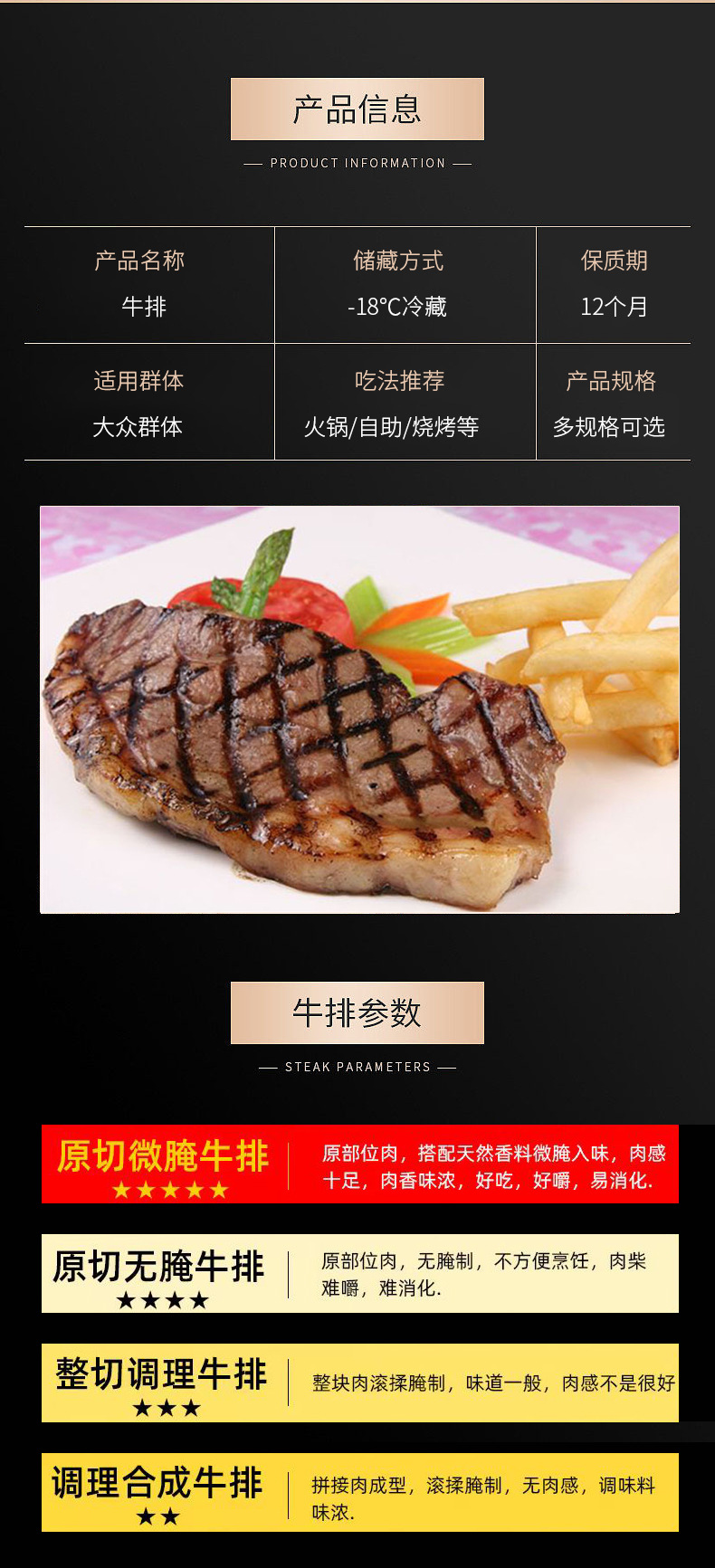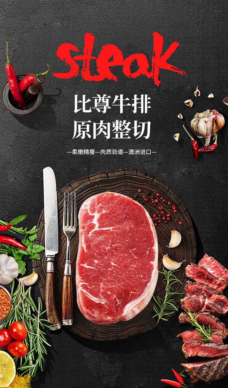 Оригинальный нарезанный слегка маринованный стейк, толстый стейк, нарезанный производителем, стейк филе, стейк, филе, филе, стейк, замороженный в западном ресторане