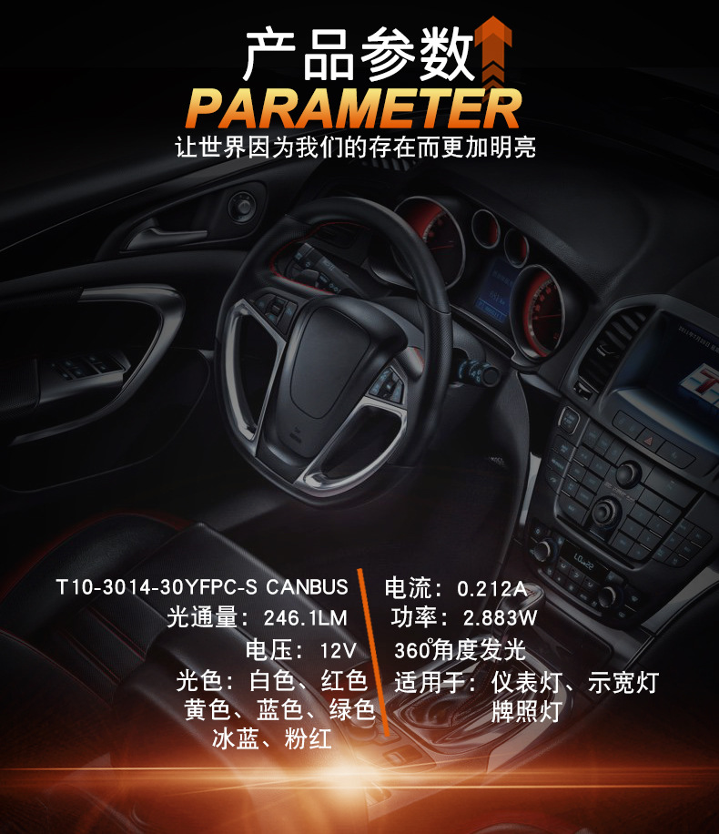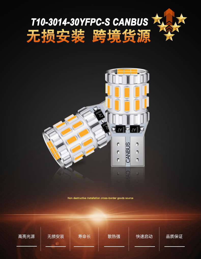 Трансграничная горячая Распродажа T10 Автомобильный светодиодный светильник для внутреннего освещения 3014-30SMD индикатор ширины желтый свет номерного знака Янтарный маленький свет
