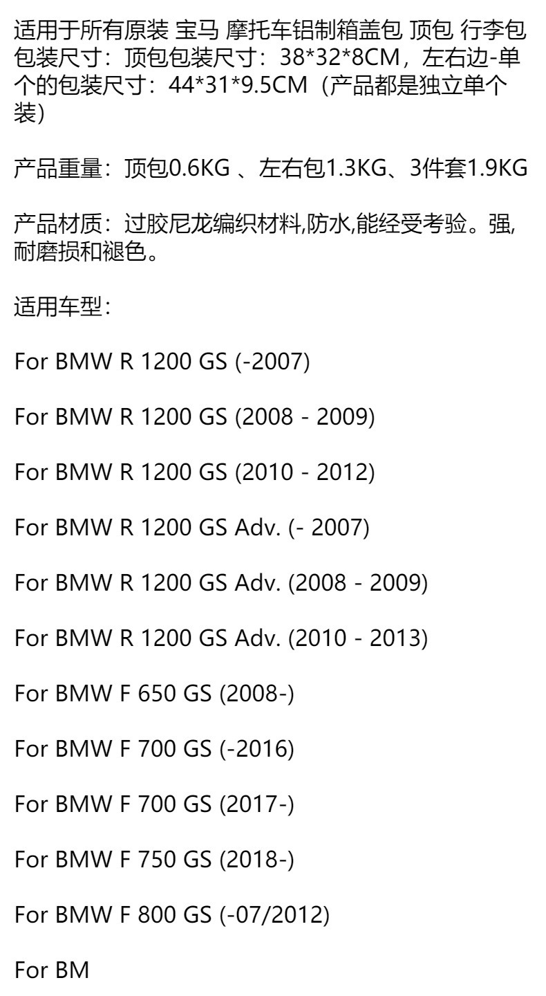 Все мотоциклетные алюминиевые сумки с крышкой подходят для BMW R1200GS и других модификаций алюминиевых боксов для багажа для трансграничных перевозок.