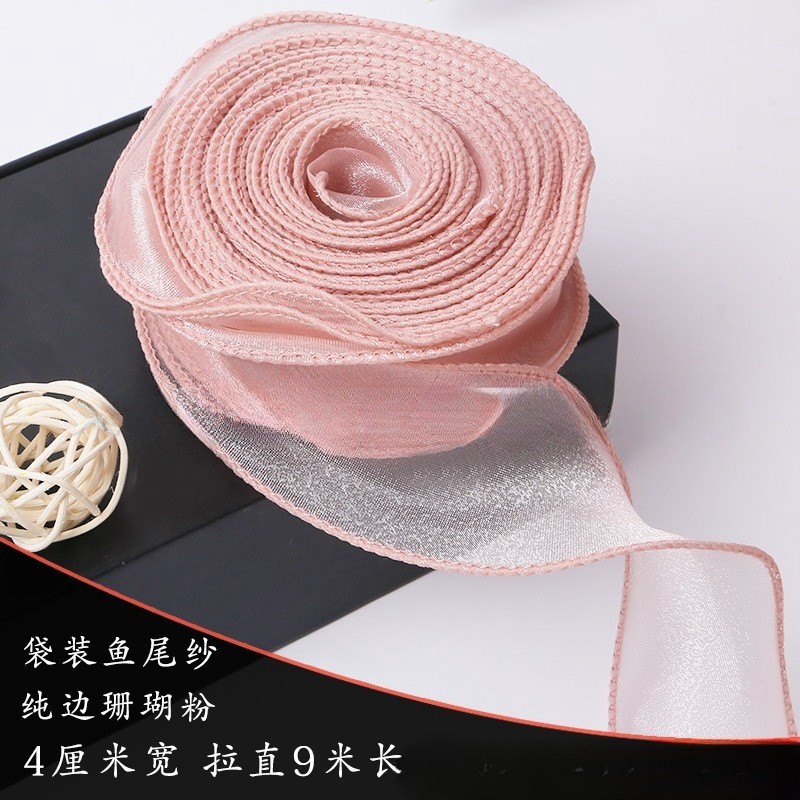 Торт свежая Цветочная лента лук галстук головной убор Материал волна рулон упаковка рыбий хвост пряжа тканая атласная плавающая лента оптом