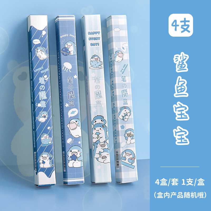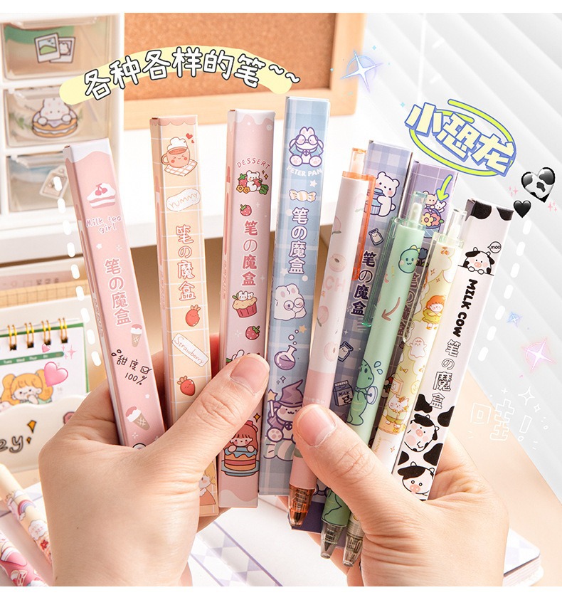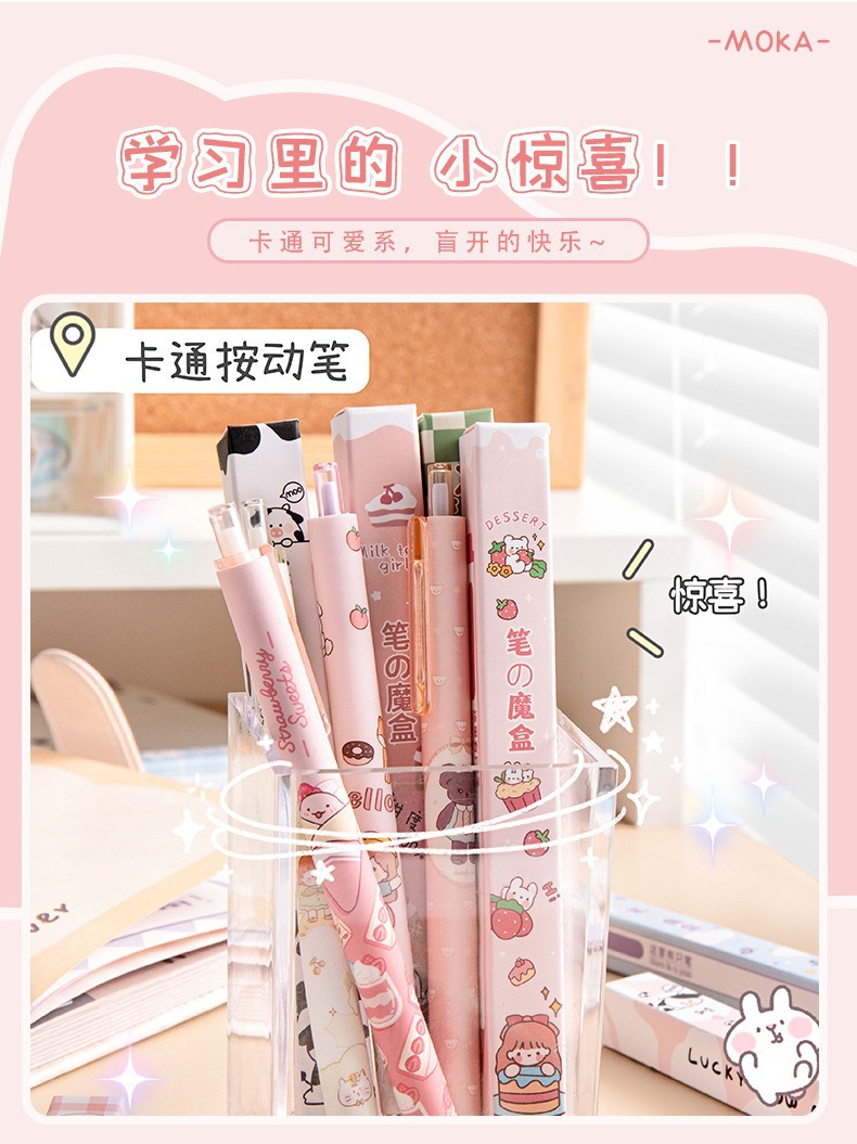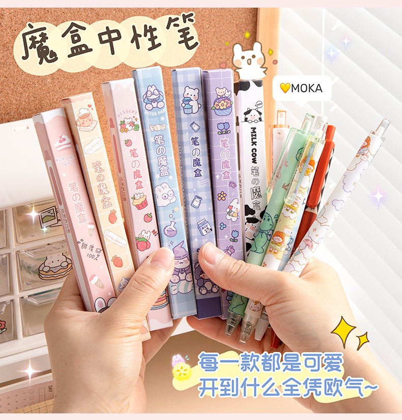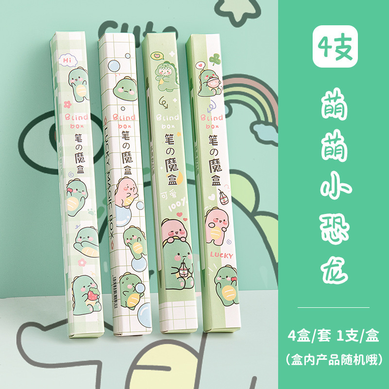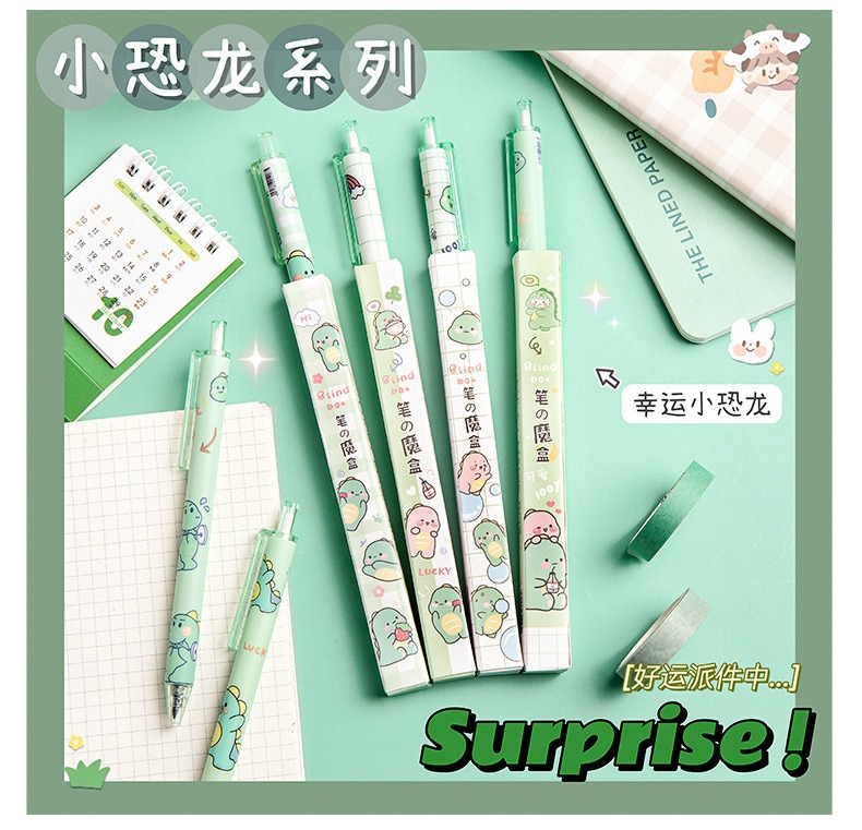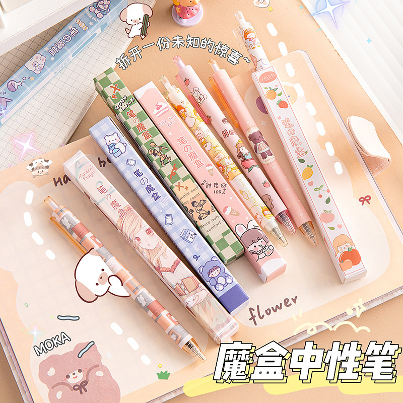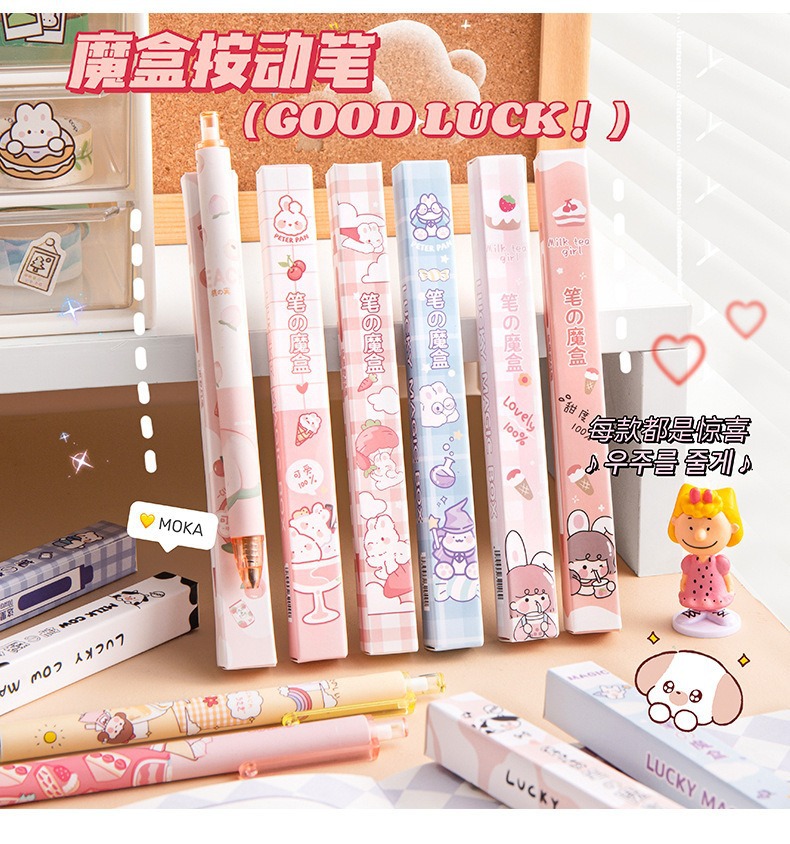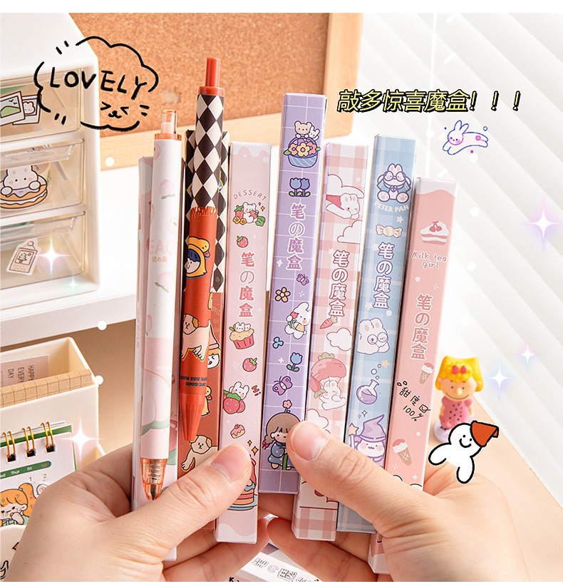Мультяшная ручка-сюрприз в закрытой упаковке, маленький подарок для школьника, волшебная коробка с гелевой ручкой, канцелярские товары оптом, выдвижная черная ручка 0,5 мм
