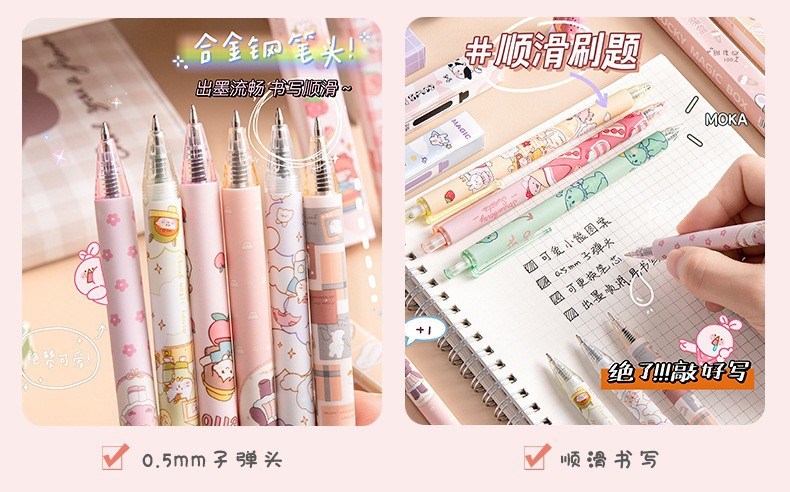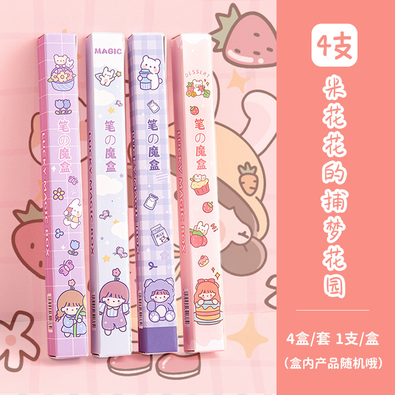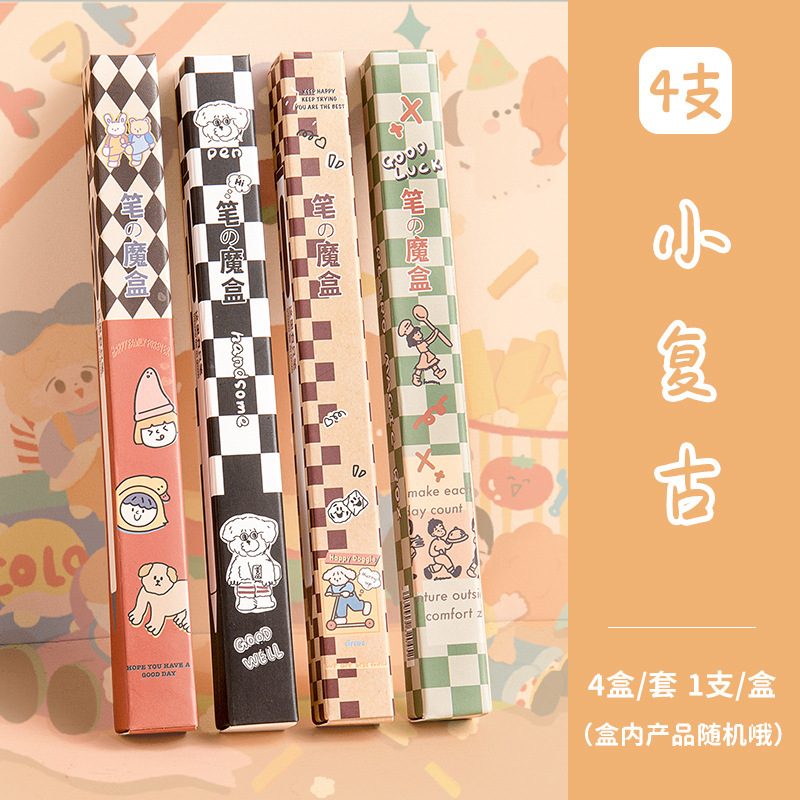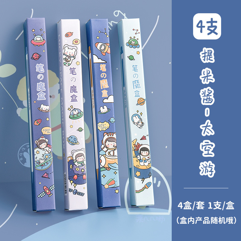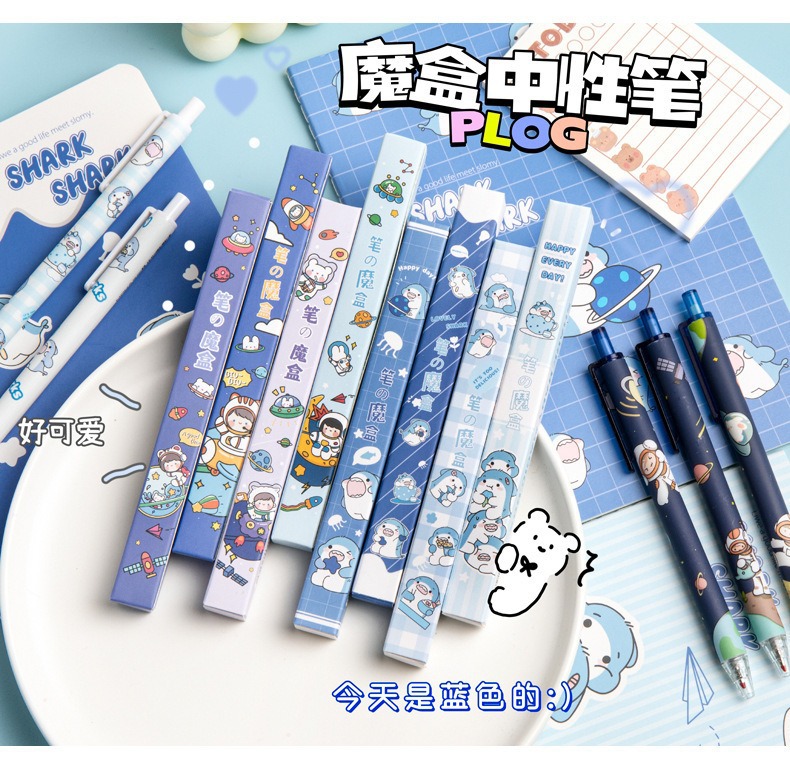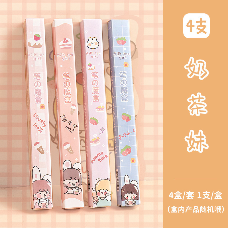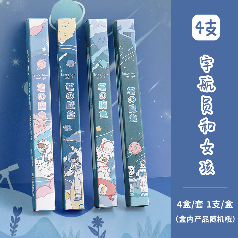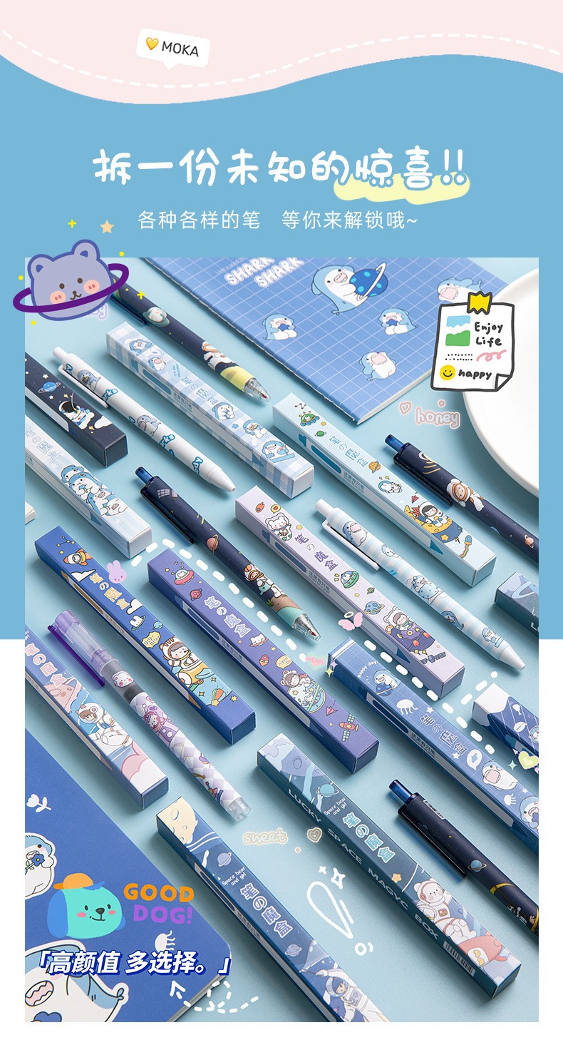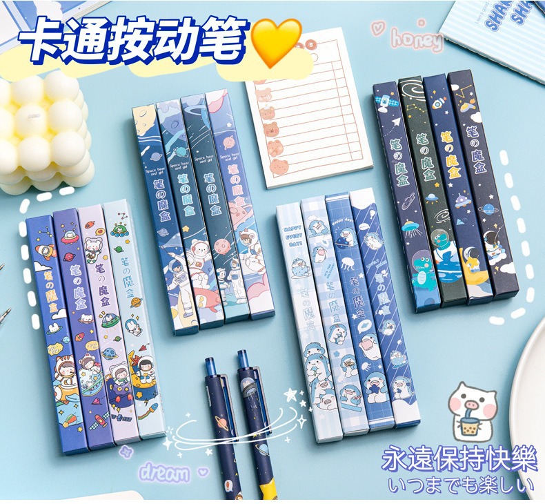 Мультяшная ручка-сюрприз в закрытой упаковке, маленький подарок для школьника, волшебная коробка с гелевой ручкой, канцелярские товары оптом, выдвижная черная ручка 0,5 мм