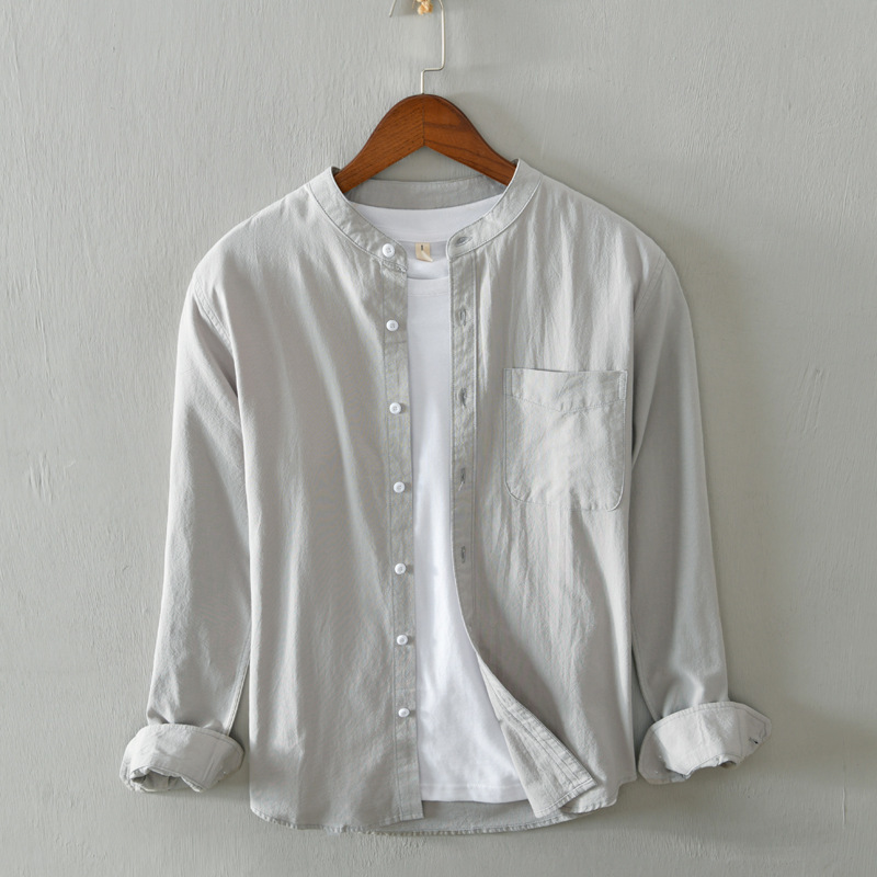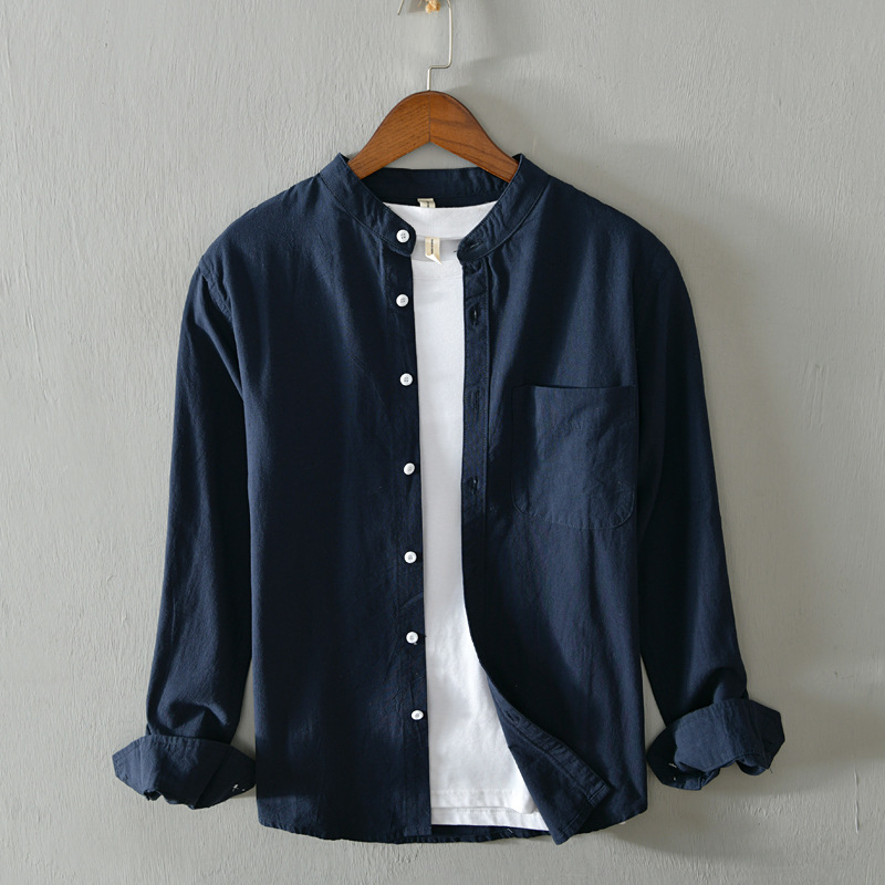 747 японская Простая рубашка-Джокер, мужская повседневная свободная Однотонная рубашка с длинным рукавом, Мужская цельная шерсть