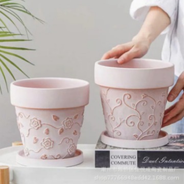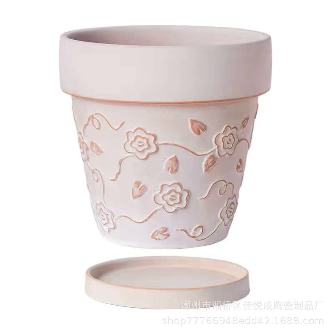Распыленный белый винтажный Красный гончарный рельефный глиняный цветочный горшок старый INS стиль садовый художественный двор открытый большой с держателем