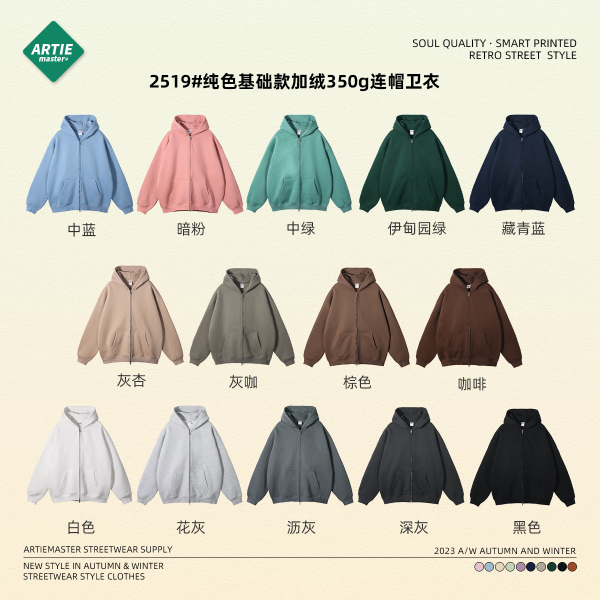 ARTIE Мужская одежда2025 Осень и зима Новый продукт плюс бархатный утолщенный 350 г Американский модный бренд на молнии Мужской свитер Брючный костюм