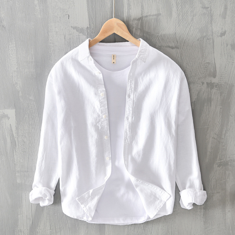 L601 Главная восьмицветная городская фабрика сокровищ, Однотонная рубашка из хлопка и льна, Повседневная рубашка с длинными рукавами, куртка, цельная доставка