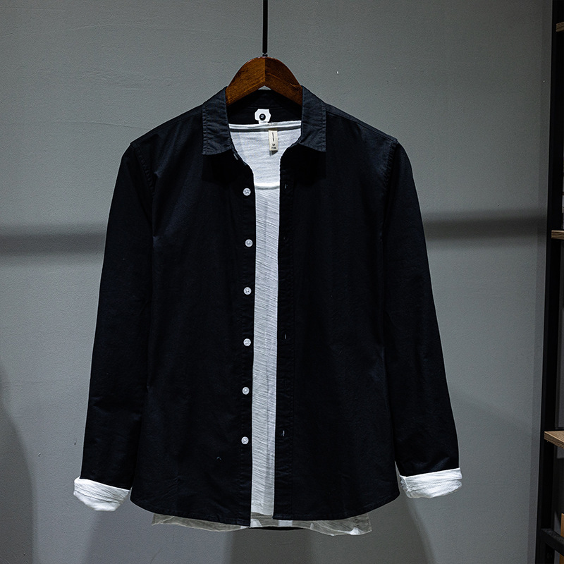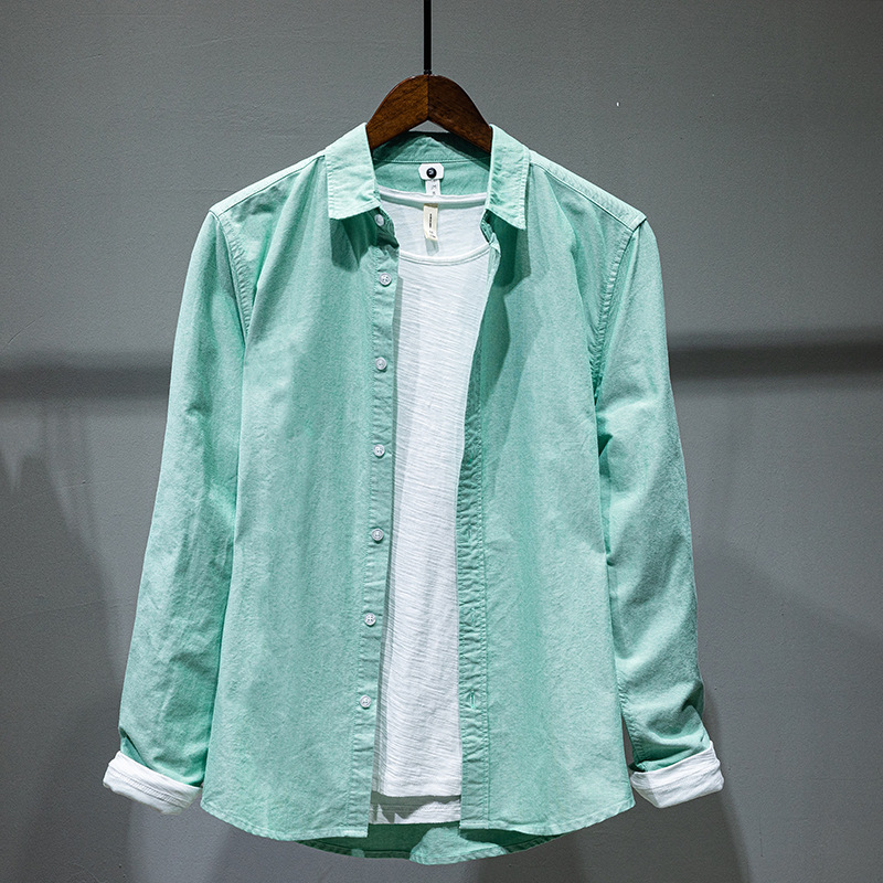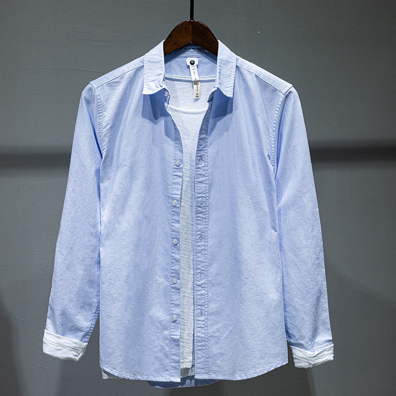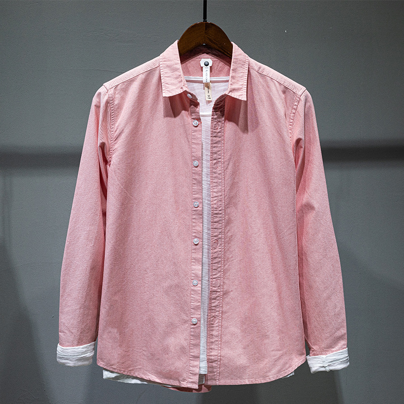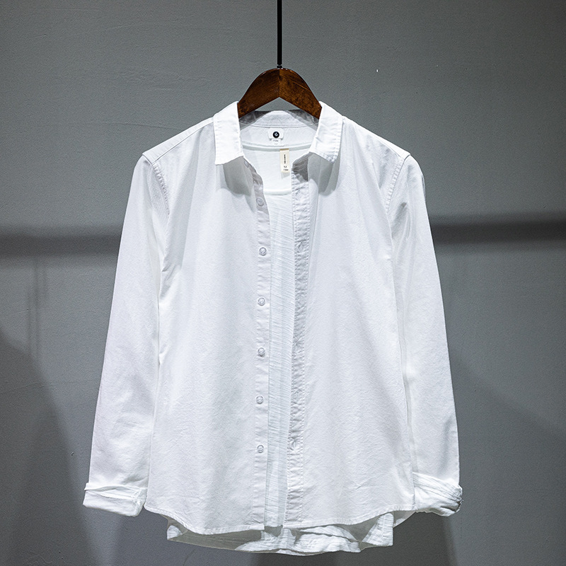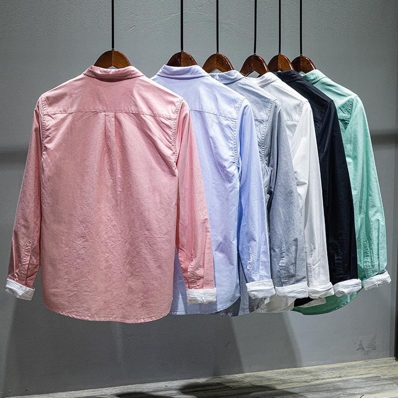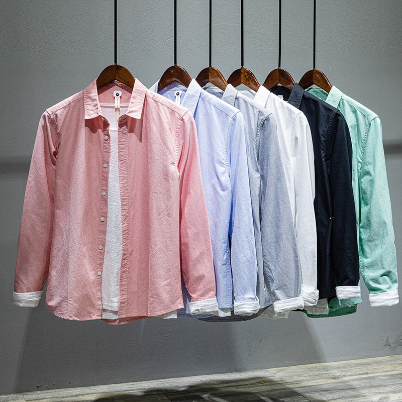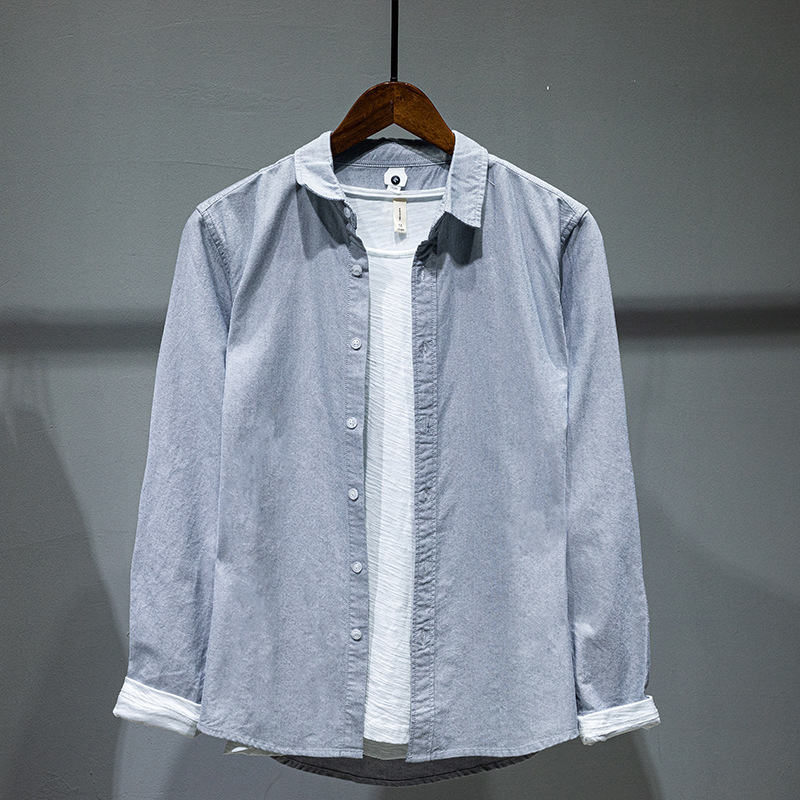 L842 новая японская Простая рубашка, мужская повседневная литературная Однотонная рубашка с длинным рукавом, поколение волос