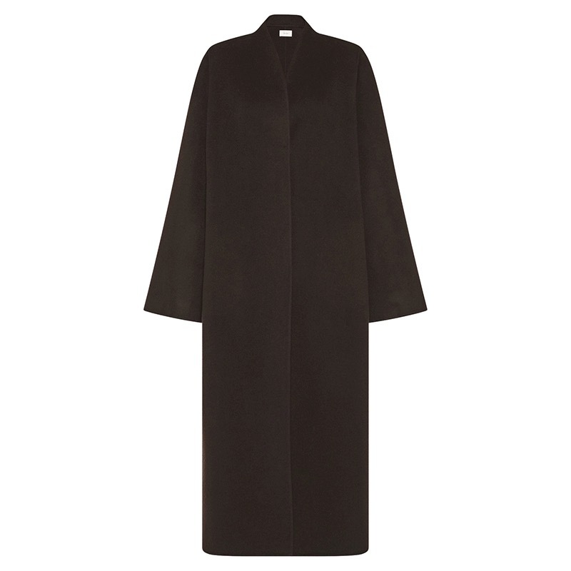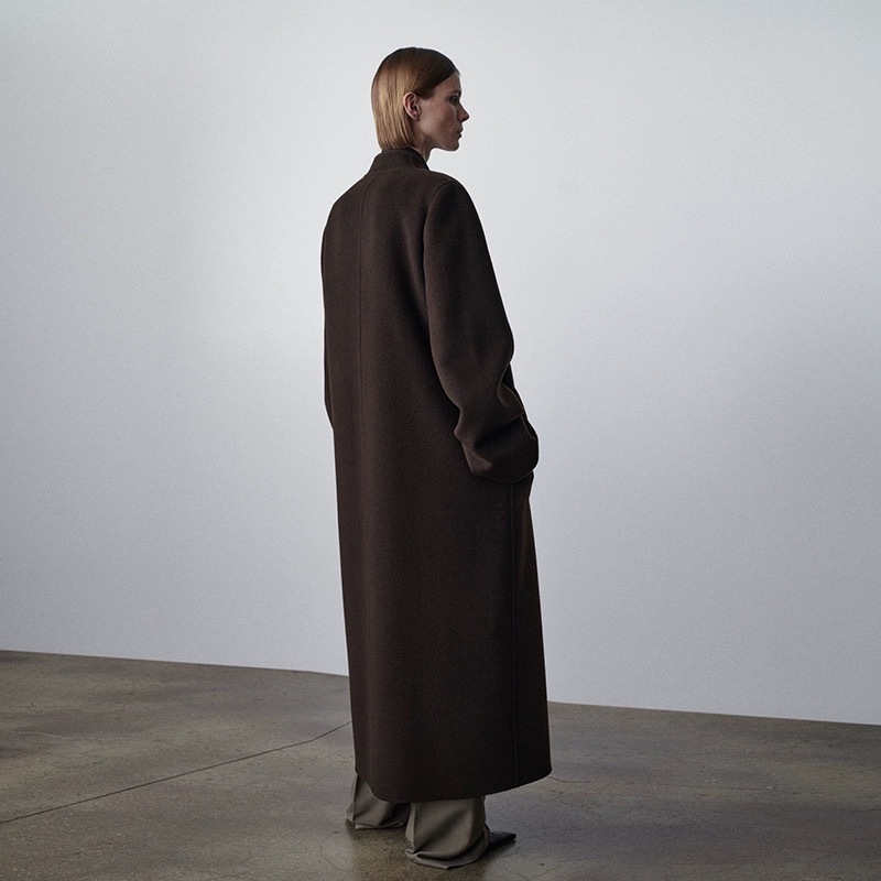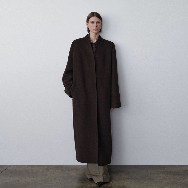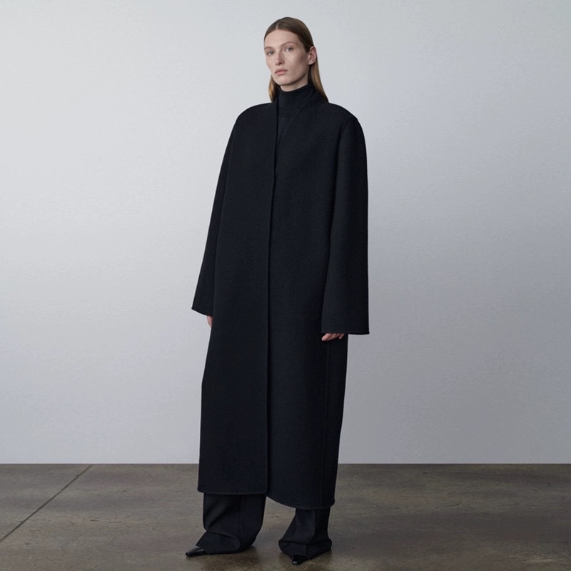 TH ~ ROW 2025 весенне-осенняя ветровка из кашемировой шерсти, универсальное повседневное двустороннее шерстяное пальто выше колена с v-образным вырезом и скрытыми пуговицами