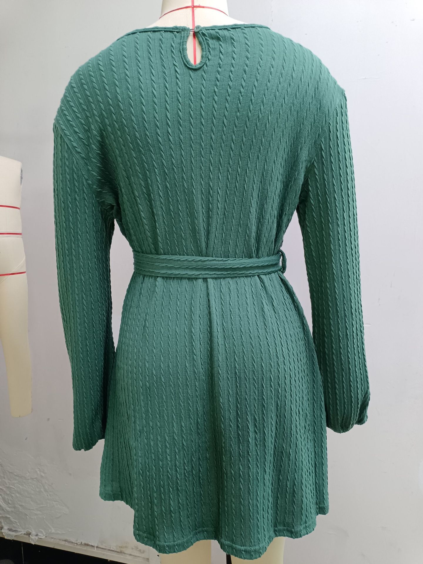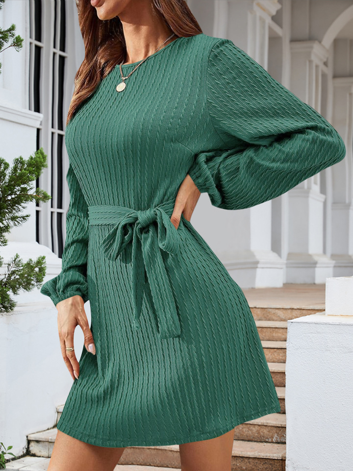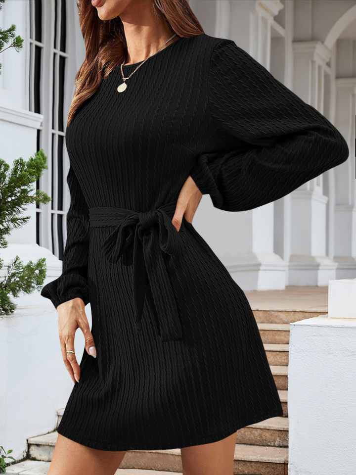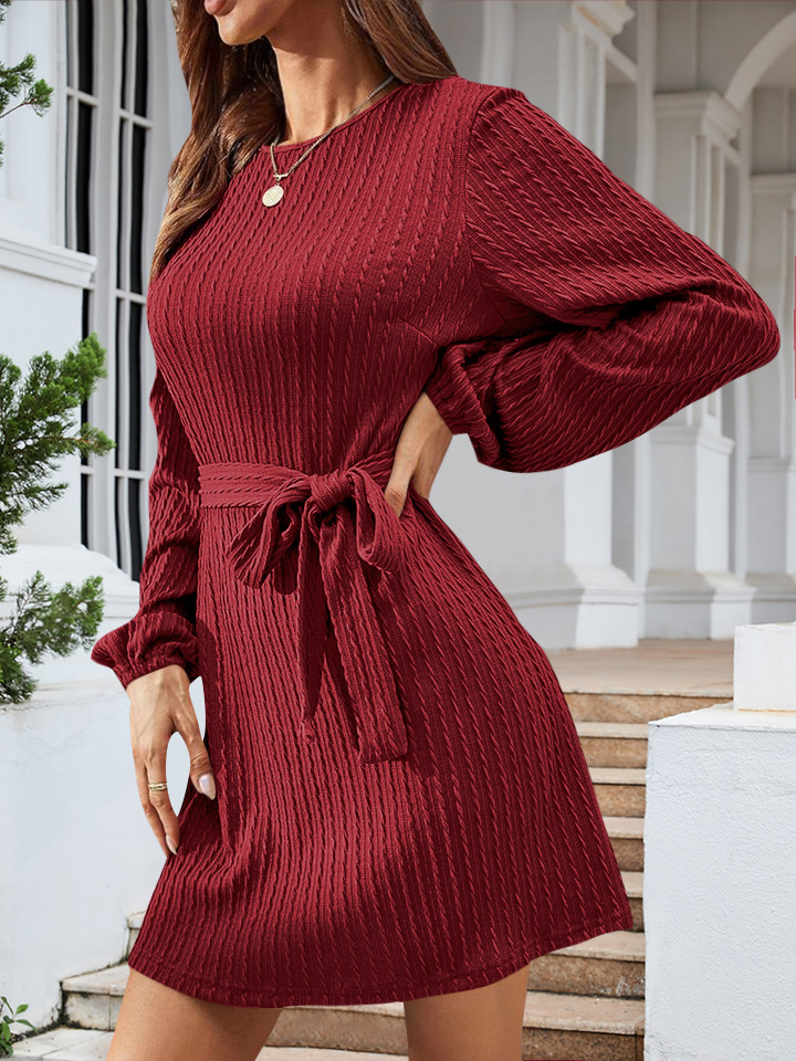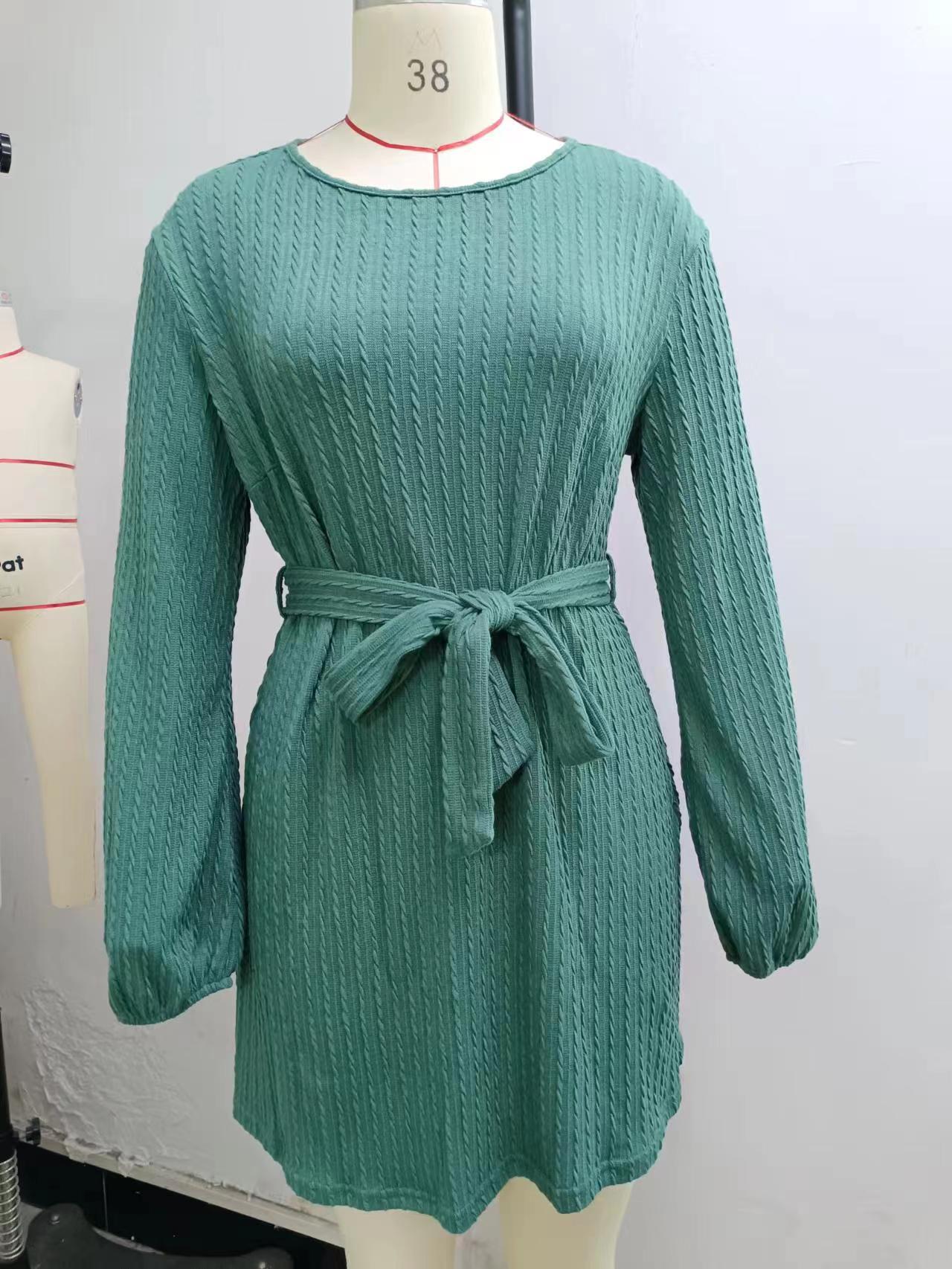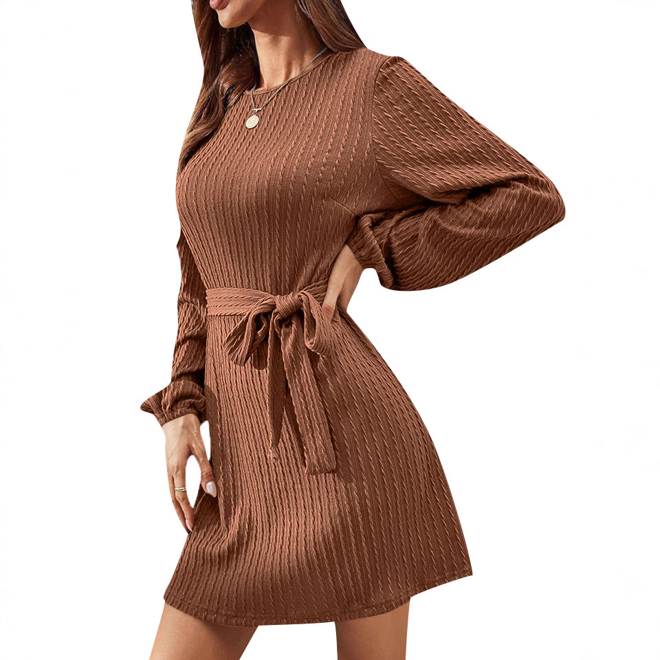 Осень-зима 2023, новое трансграничное европейское и американское платье с поясом для одежды, трикотажное платье с длинными рукавами и пышными рукавами, повседневная юбка