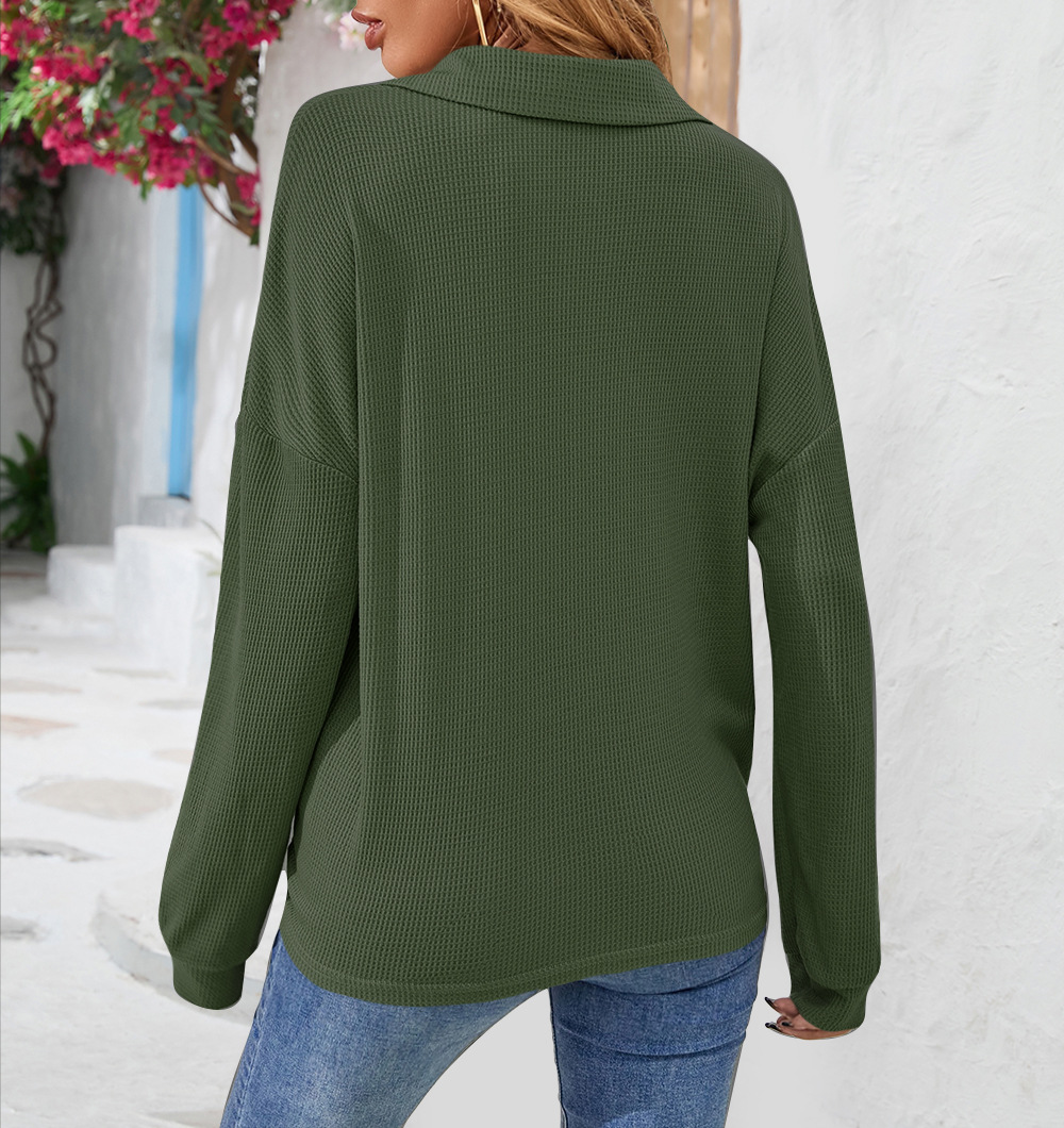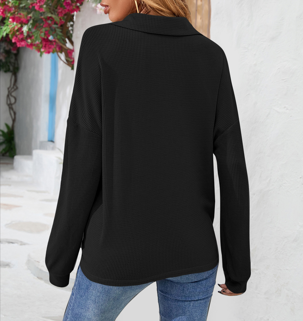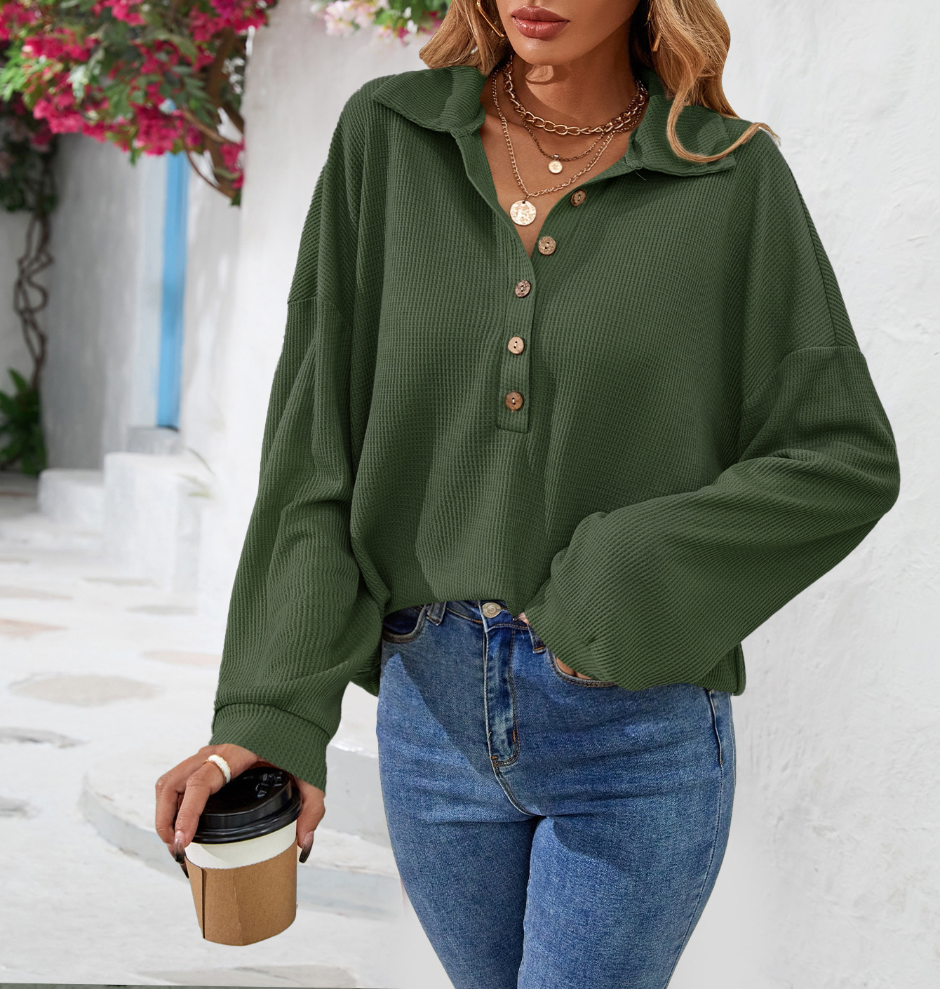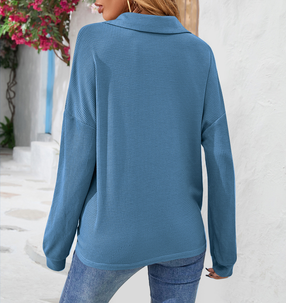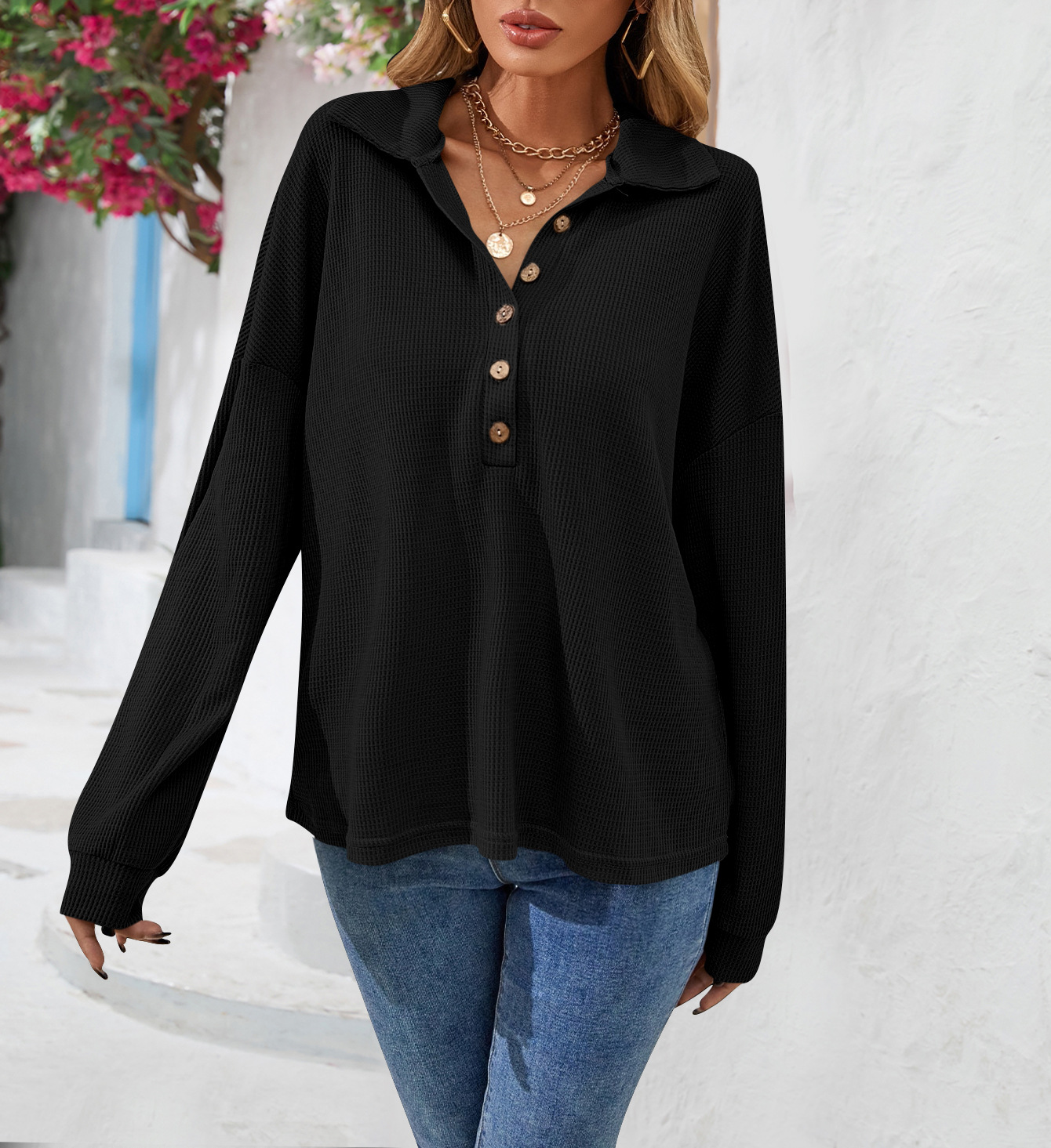 Европейская и американская трансграничная женская одежда 2023 Amazon осень и зима Новая Однотонная футболка с длинными рукавами на пуговицах с лацканами