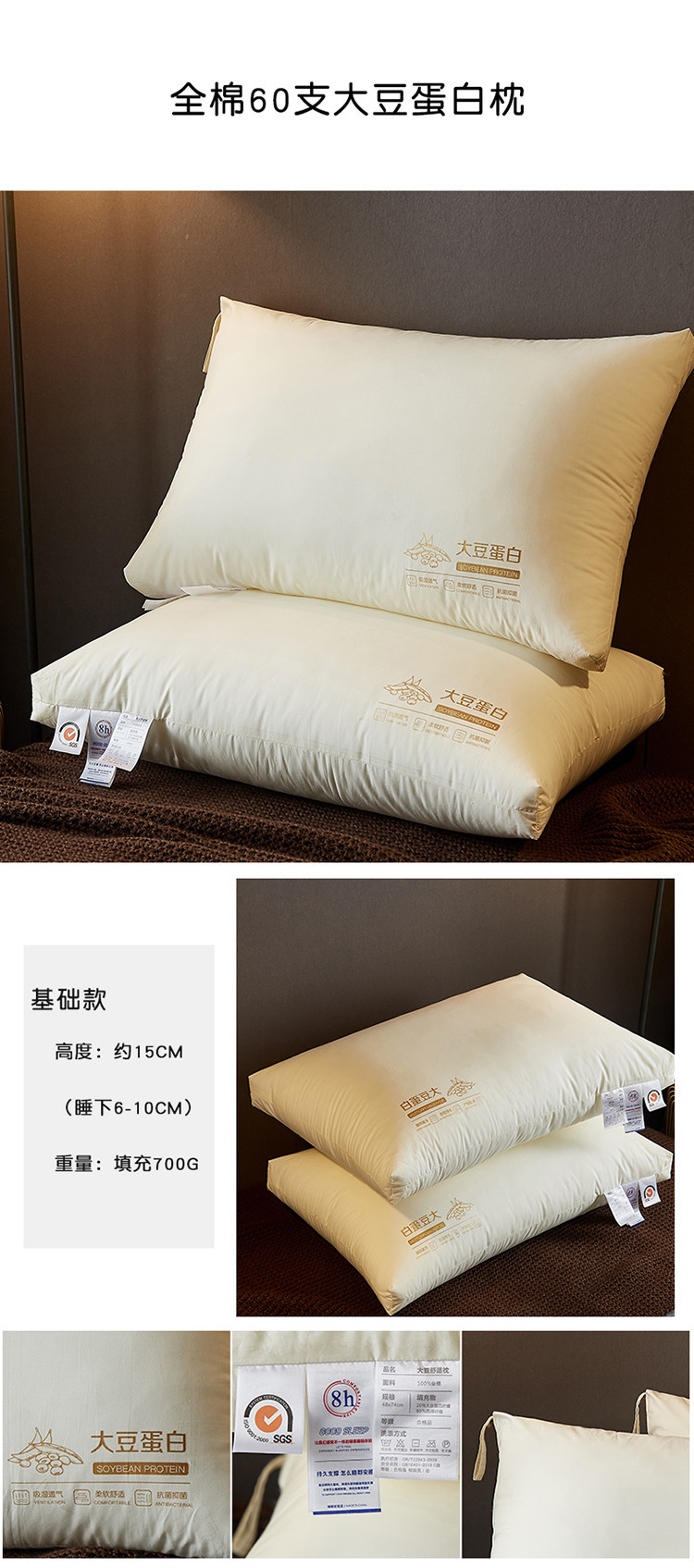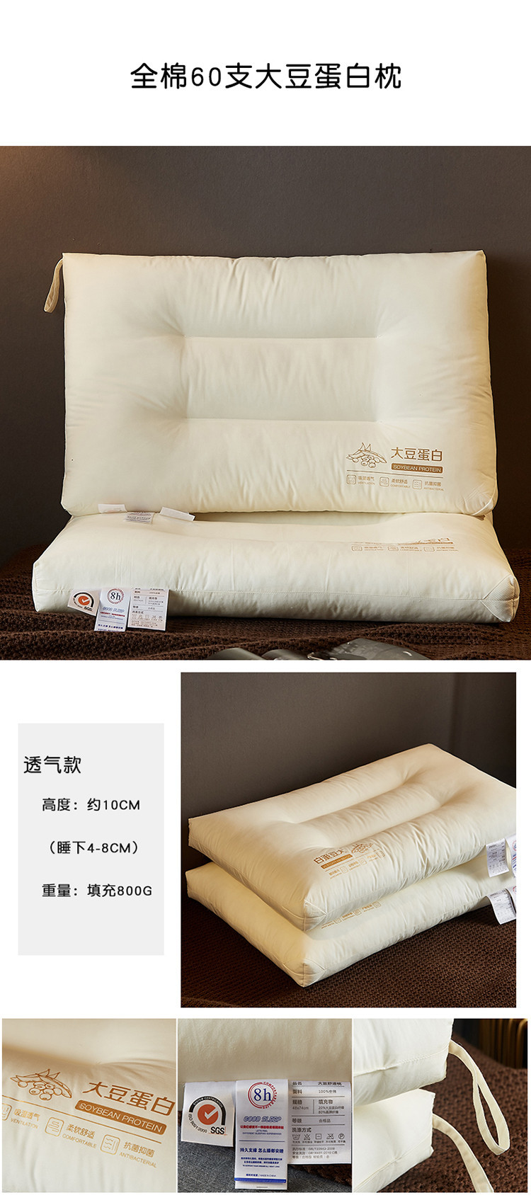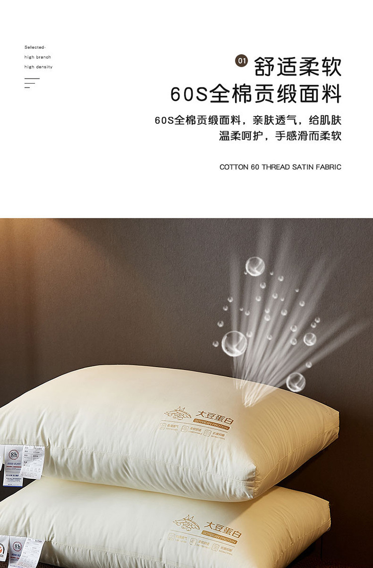 Новый хлопок 60-х годов соевый протеин подушки взрослых шеи подушки хлопка комфортабельный отель Подушка дома волос