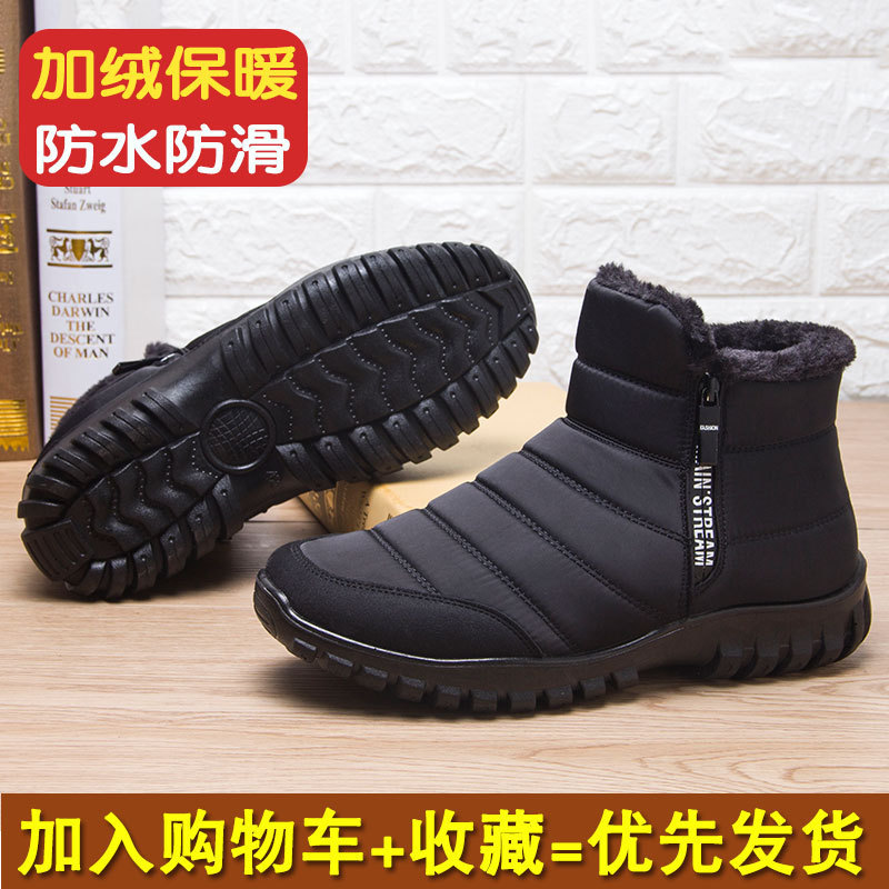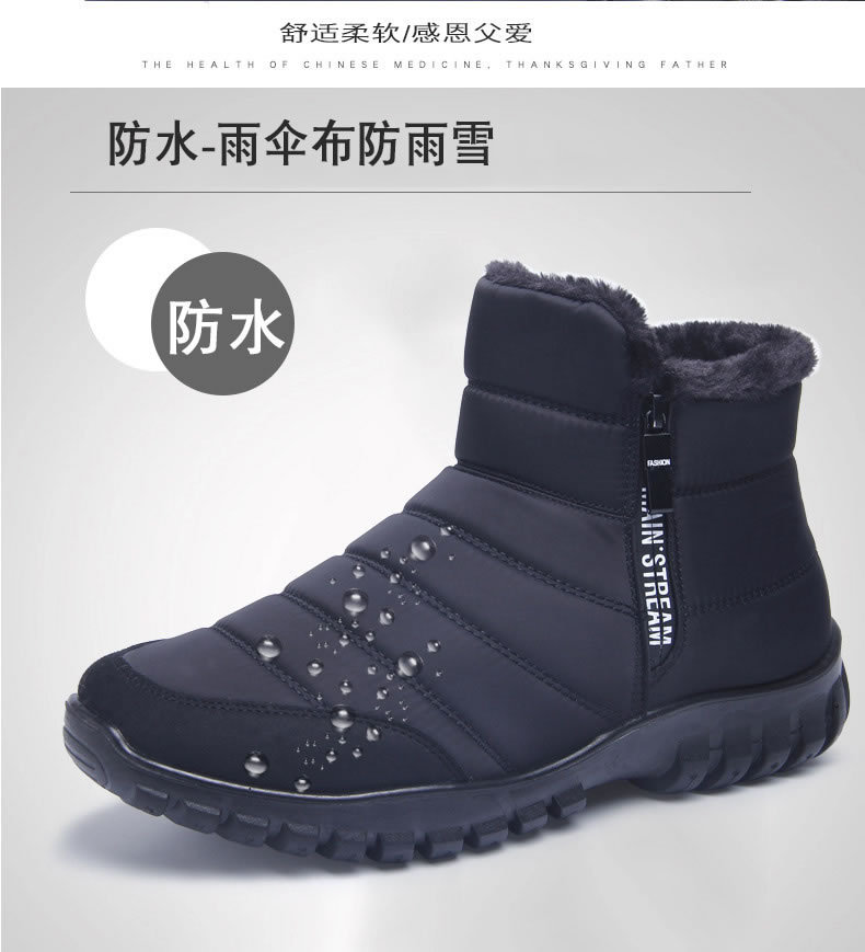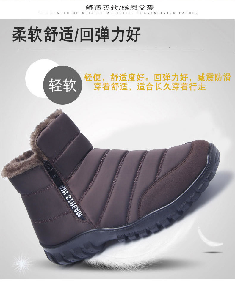 Теплые зимние ботинки на флисовой подкладке из снежного хлопка с высокой талией и молнией для пожилых людей Водонепроницаемая Нескользящая легкая Глянцевая хлопковая обувь для мужчин