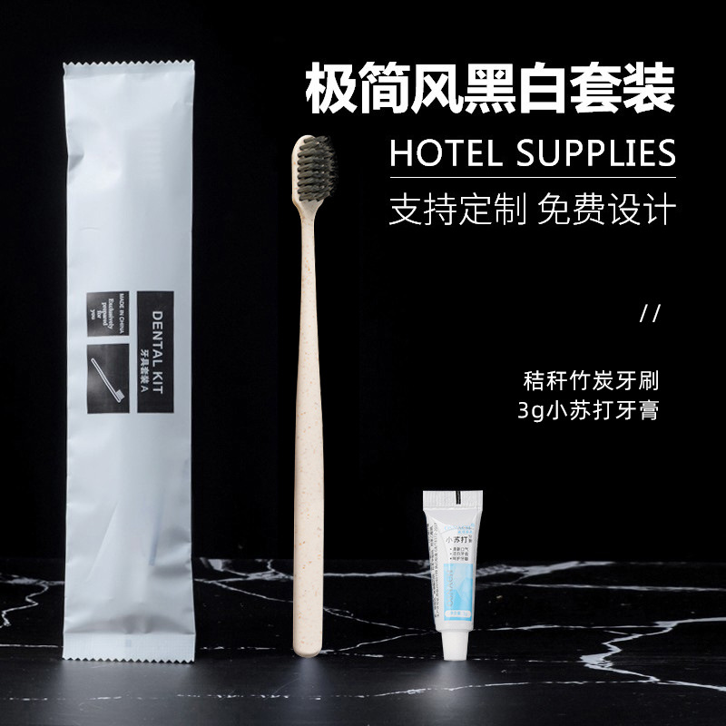 Гостиничные туалетные принадлежности костюм с мягкой пленкой зубная щетка солома Мягкие волосы 2-в-1 картонная коробка стоматологический прибор гостиничная одноразовая зубная щетка