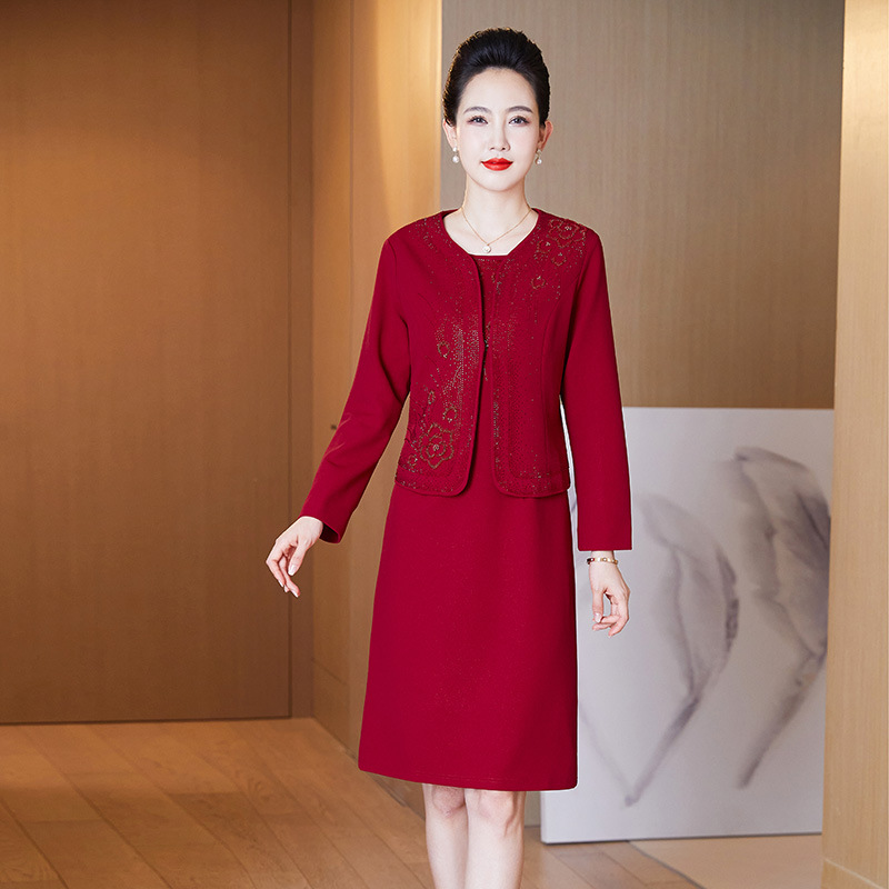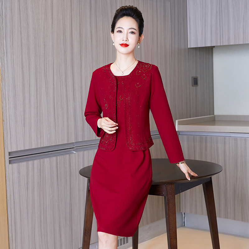 Осенний новый темперамент тонкий свадебный костюм мамы из двух частей
