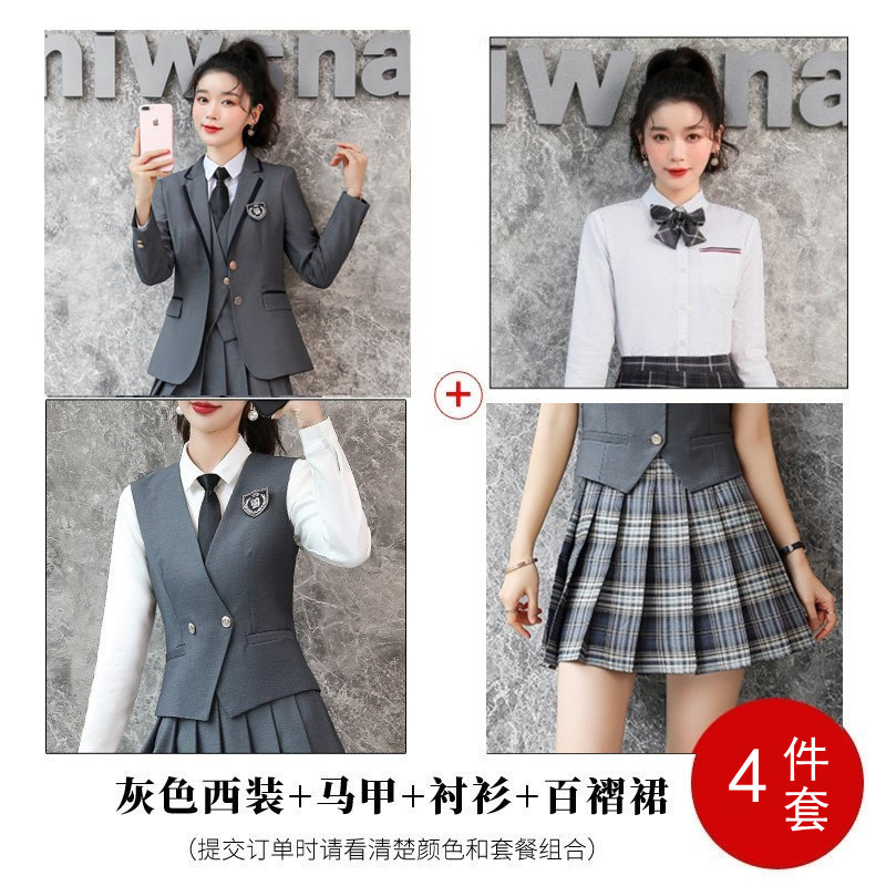 Одиночный серый костюм; Один темно-синий костюм; Темно-синий костюм + темно-синяя юбка; Серый костюм + серая юбка; Серый костюм + серые деловые брюки; Серый костюм + синяя клетчатая юбка.; Темно-синий костюм + темно-синие формальные брюки; Темно-синий костюм + серая юбка; Синий костюм + черная клетчатая юбка JK; [Комплект из трех предметов] Темно-синий костюм + темно-синие формальные брюки + белая рубашка; [Комплект из трех предметов] Темно-синий костюм + черная клетчатая юбка + белая рубашка; [Комплект из трех предметов] Темно-синий костюм + серая юбка + белая рубашка; [Комплект из трех предметов] Серый костюм + серая юбка + белая рубашка; [Комплект из трех предметов] Серый костюм + белая рубашка + серые деловые брюки; [Комплект из трех предметов] Серый костюм + синяя клетчатая юбка + белая рубашка; [Комплект из трех предметов] Темно-синий костюм + белая рубашка + синяя юбка; [Комплект из четырех предметов] Темно-синий костюм + жилет + белая рубашка + официальные брюки; [Комплект из четырех предметов] Темно-синий костюм + жилет + белая рубашка + серая юбка; [Комплект из четырех предметов] Темно-синий костюм + жилет + белая рубашка + юбка; [Комплект из четырех предметов] Серый костюм + серый жилет + белая рубашка + серая юбка; [Комплект из четырех предметов] Темно-синий костюм + жилет + белая рубашка + черная клетчатая юбка; [Комплект из четырех предметов] Серый костюм + серый жилет + белая рубашка + синяя клетчатая юбка; Одинарная плиссированная юбка (пожалуйста, оставьте сообщение о цвете)