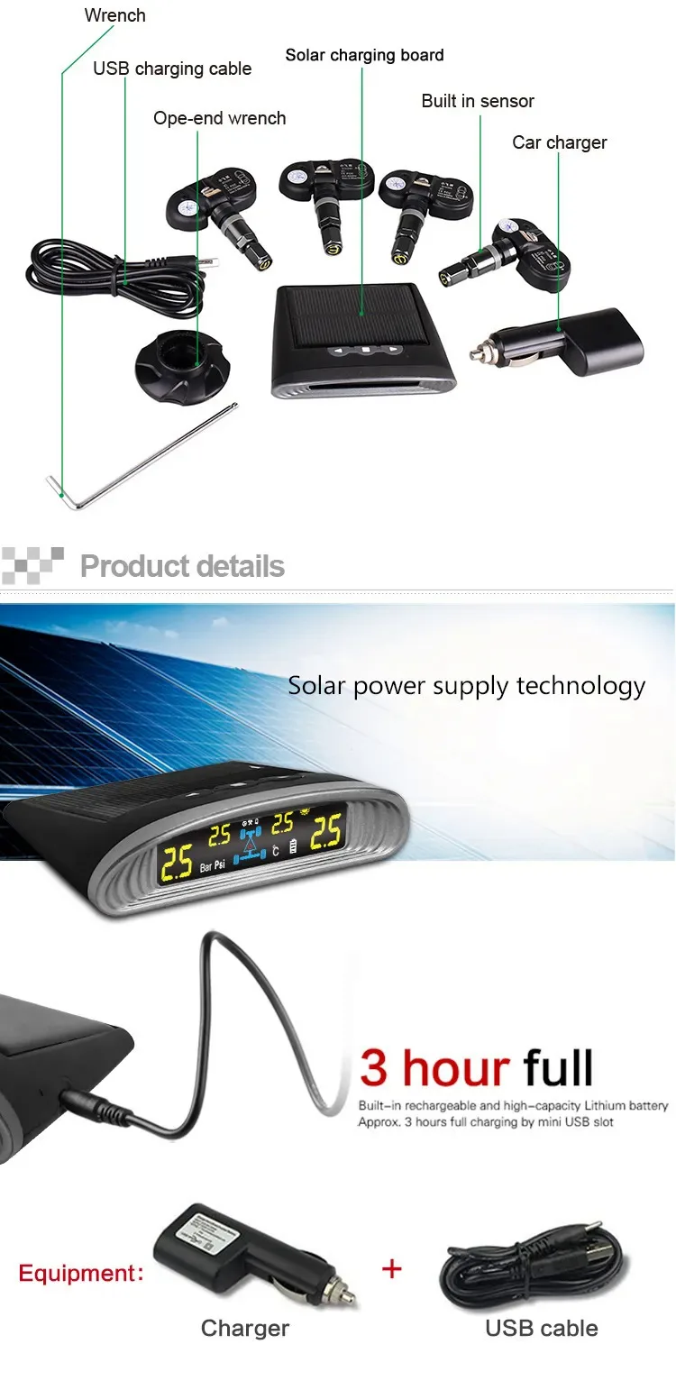 Xiaofei будет Беспроводная солнечная система контроля давления в шинах tpms Обнаружение давления в шинах с 4 встроенными датчиками