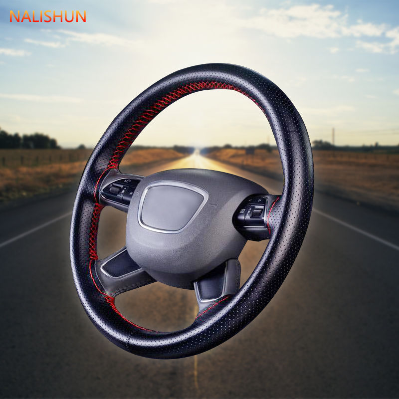 Чехол на руль автомобиля, сшитый вручную, мужской и женский кожаный чехол ручной работы на все сезоны, нескользящий чехол для ручки для шитья