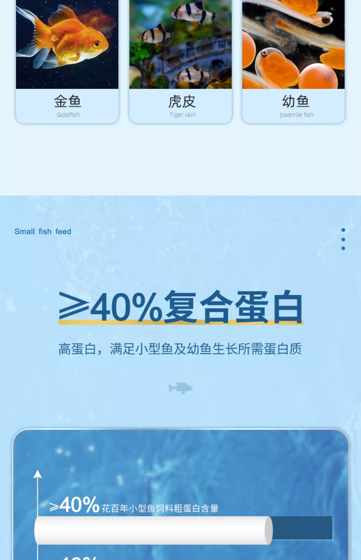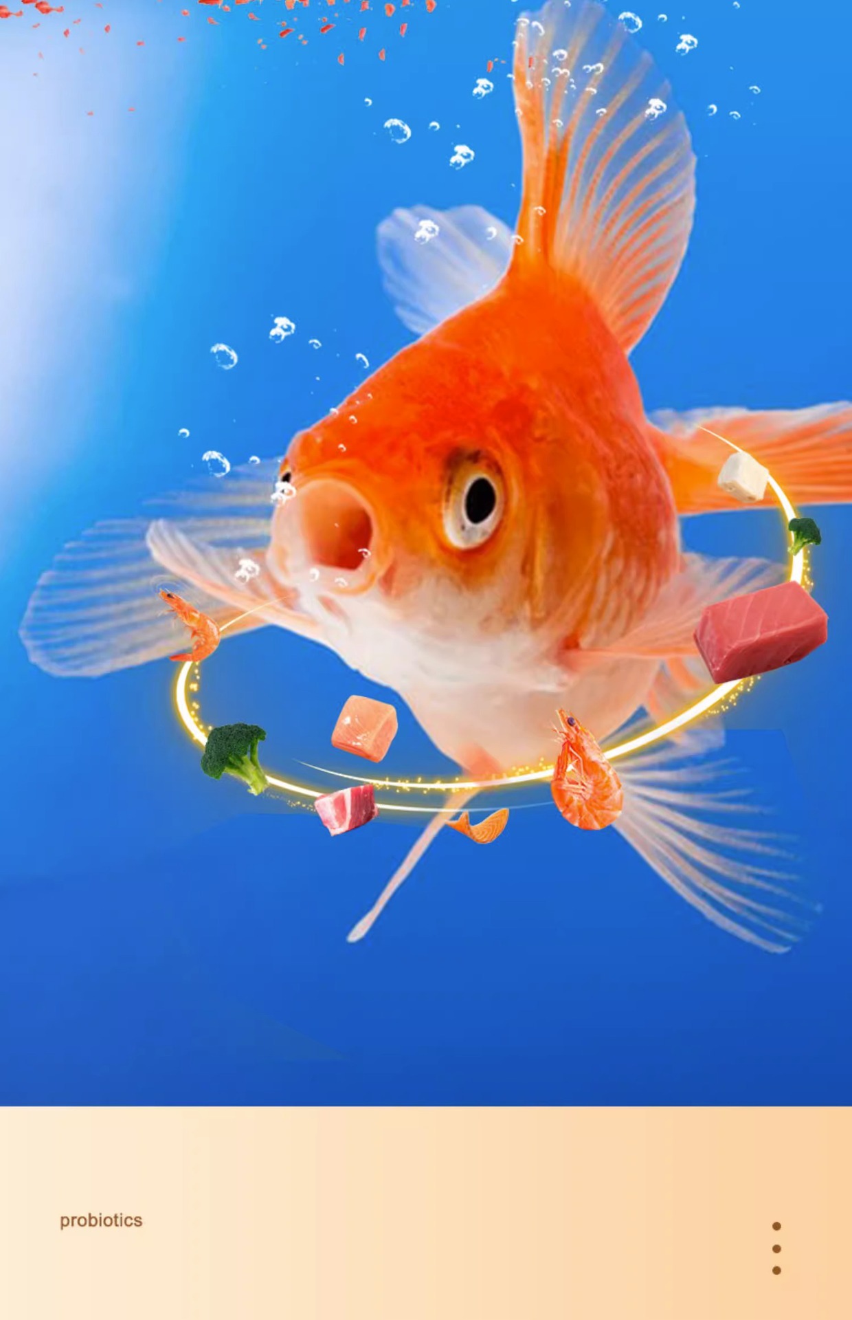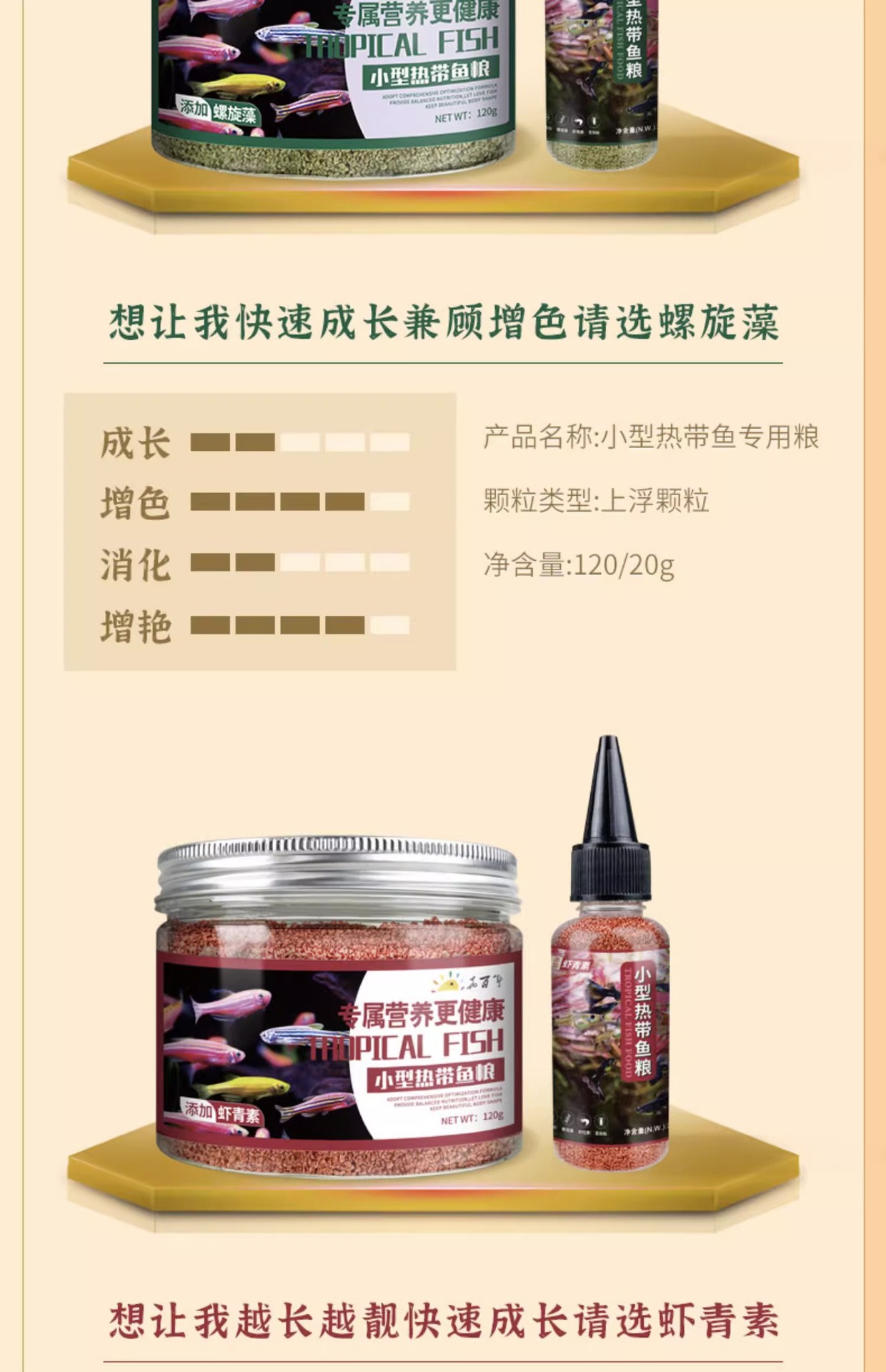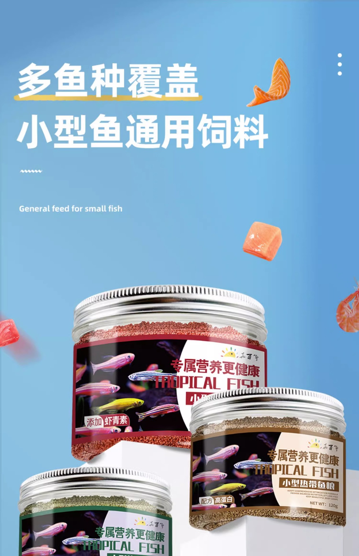 Большая бутылка рыбного корма с высоким содержанием белка [предложение ограничено по времени]; Маленький триколорный корм для рыб; Корм для рыб «три в одном» 100г.; Маленькая бутылочка с высоким содержанием белка, корм для рыб; Пищевые добавки для рыб спирулины; Спирулина, большая бутылка корма для рыб; Астаксантин, маленькая бутылочка, корм для рыб; Астаксантин большая бутылка рыбного корма; Молодь рыбы, маленькая бутылочка с рыбным кормом; Молодь рыбы, большая бутылка рыбного корма