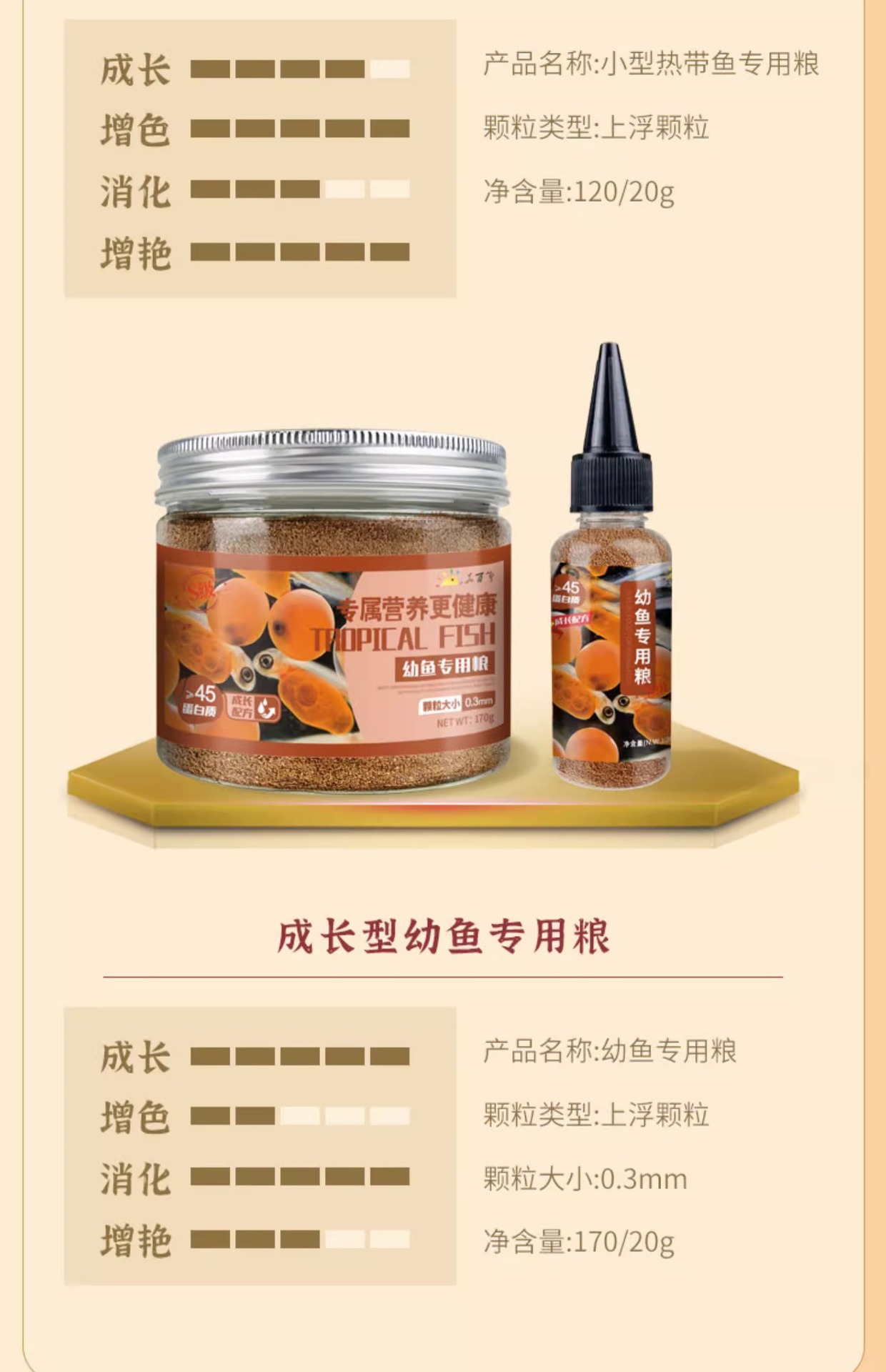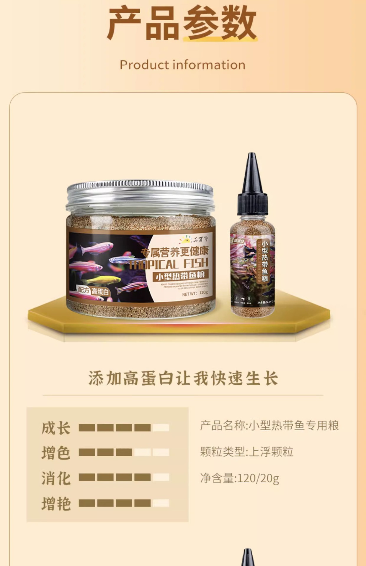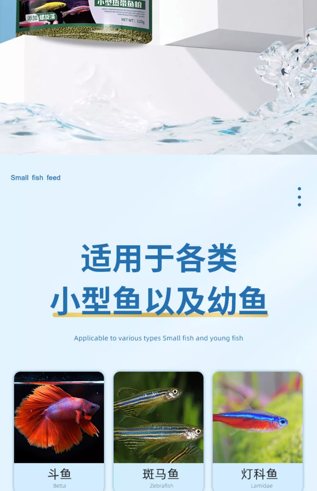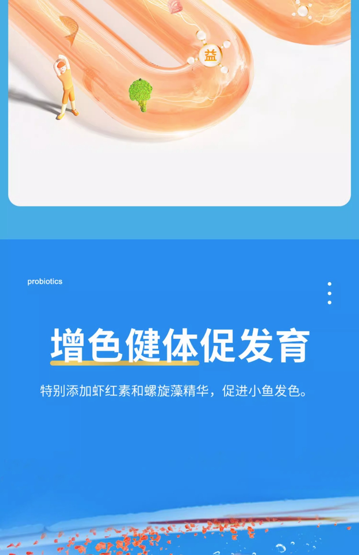 Большая бутылка рыбного корма с высоким содержанием белка [предложение ограничено по времени]; Маленький триколорный корм для рыб; Корм для рыб «три в одном» 100г.; Маленькая бутылочка с высоким содержанием белка, корм для рыб; Пищевые добавки для рыб спирулины; Спирулина, большая бутылка корма для рыб; Астаксантин, маленькая бутылочка, корм для рыб; Астаксантин большая бутылка рыбного корма; Молодь рыбы, маленькая бутылочка с рыбным кормом; Молодь рыбы, большая бутылка рыбного корма