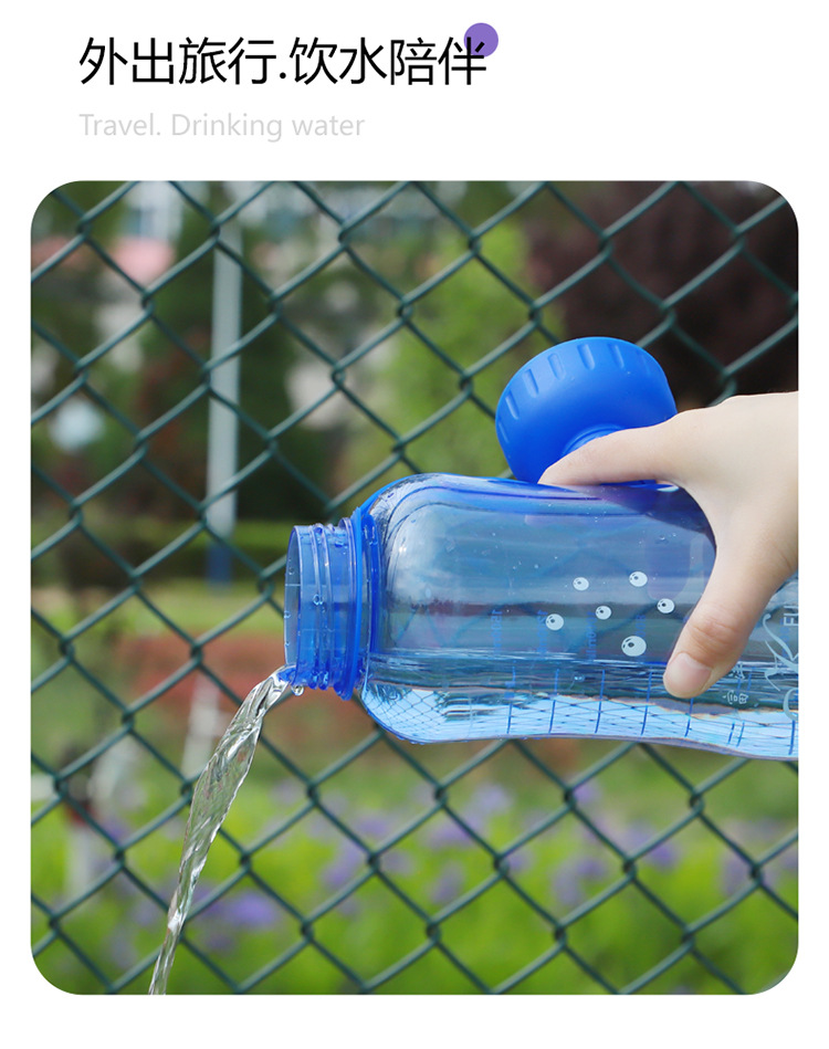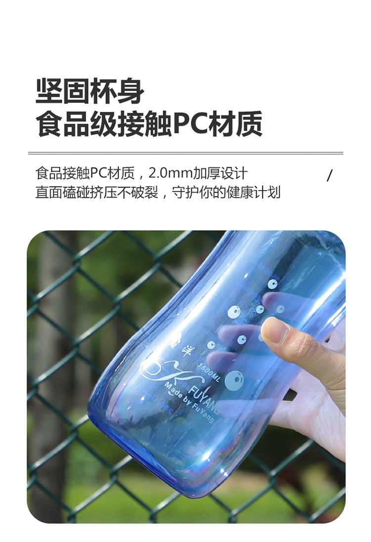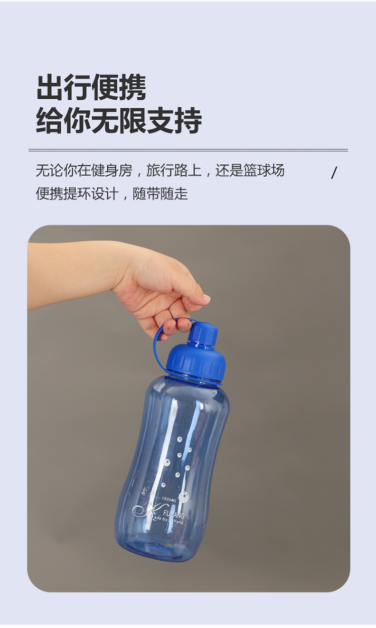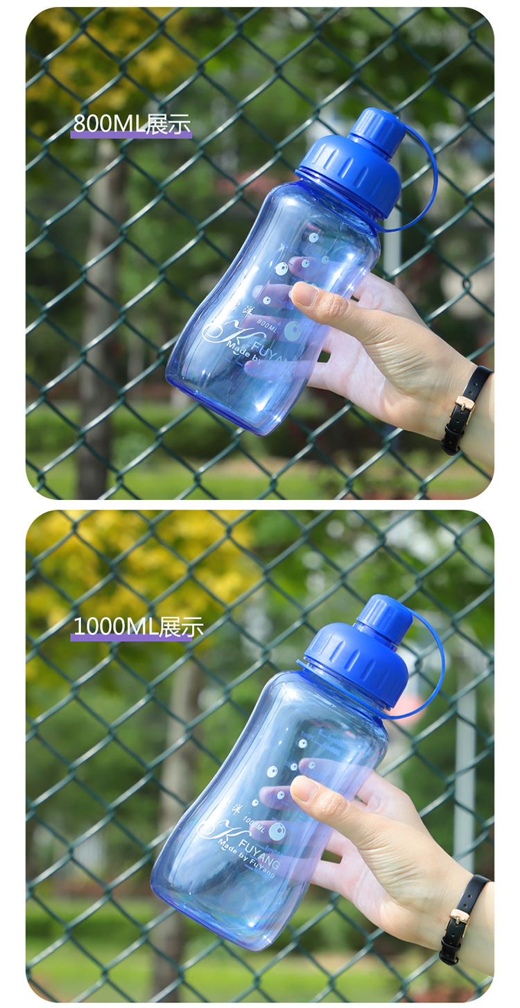 Большая пластиковая спортивная бутылка Fuyang для активного отдыха с мерной шкалой, динамическим фильтром, логотипом и увеличенным объемом.