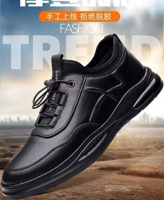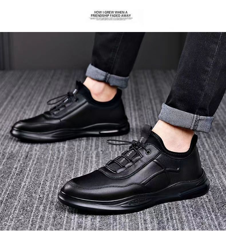 Мужская обувь, новые весенние повседневные деловые кожаные туфли, универсальные модные модные черные спортивные кожаные туфли на эластичной ленте на воздушной подушке
