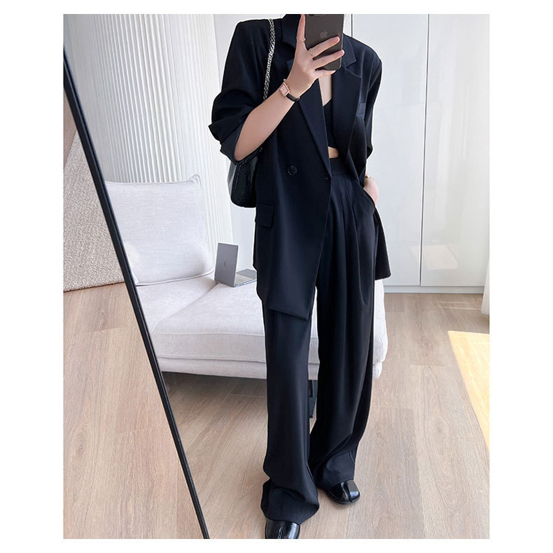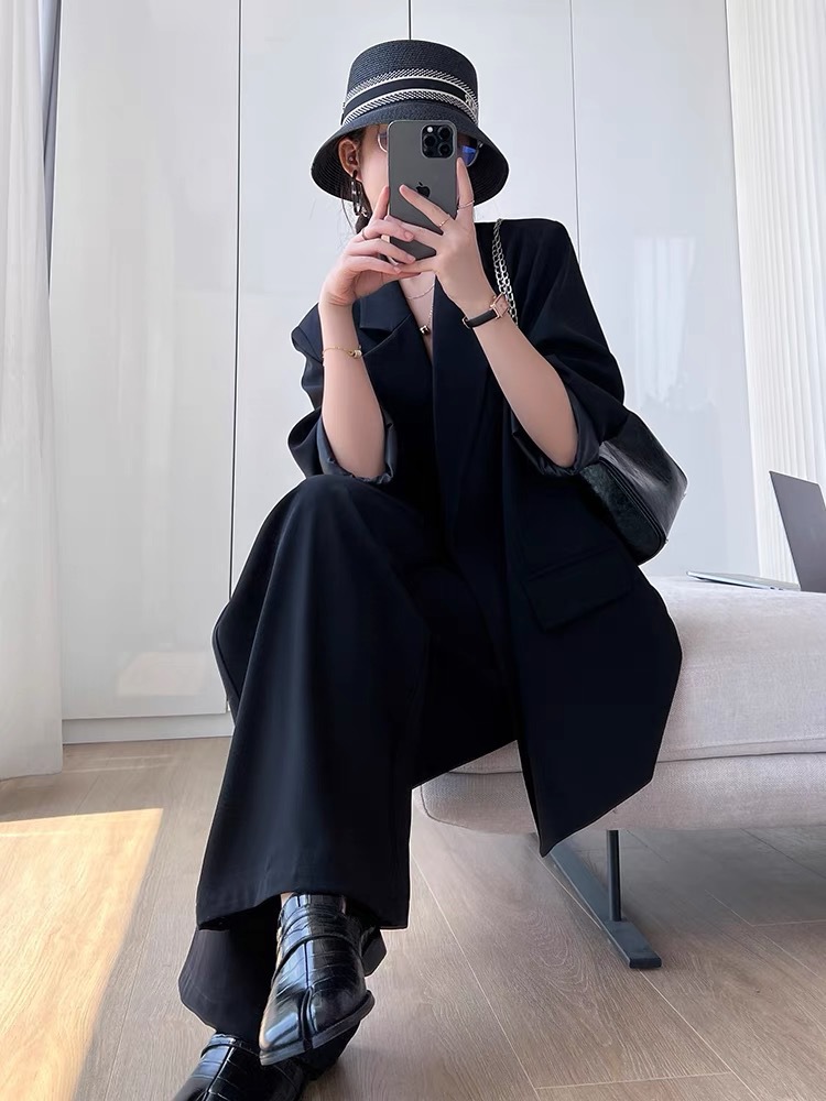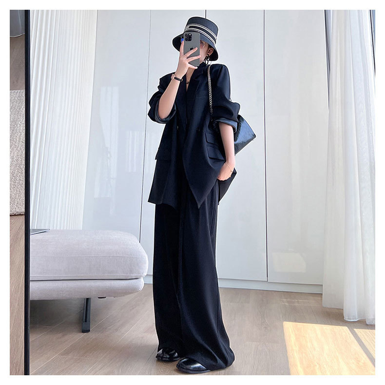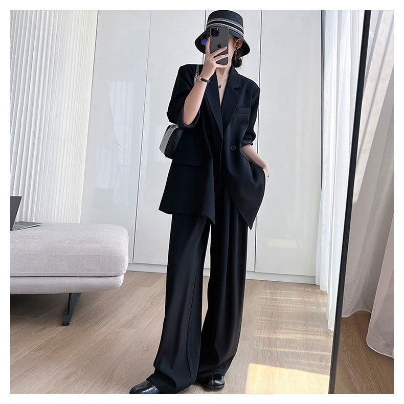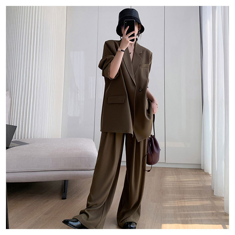 Плюс Размер Женский костюм Куртка Лето Новая Мода пухлые девушки Тонкий Западный стиль костюм Широкие брюки костюм [0730]