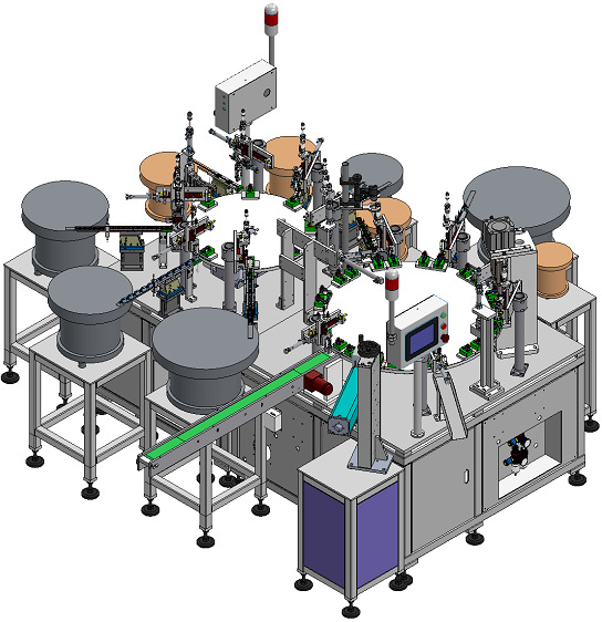 所有机器都是根据产品的组件和结构进行设计的。根据生产程序,可增加以下系统:自动送料碗、送料线、目视检查系统、各种测试系统、自动点胶、焊接、铆接、螺丝、印刷、密封、压盖、钻孔、灌装、攻丝、铣削、成型、包装。。。我们的工作是完成自动化流线设计,使其成为一套高稳定、高效的自动化设备。