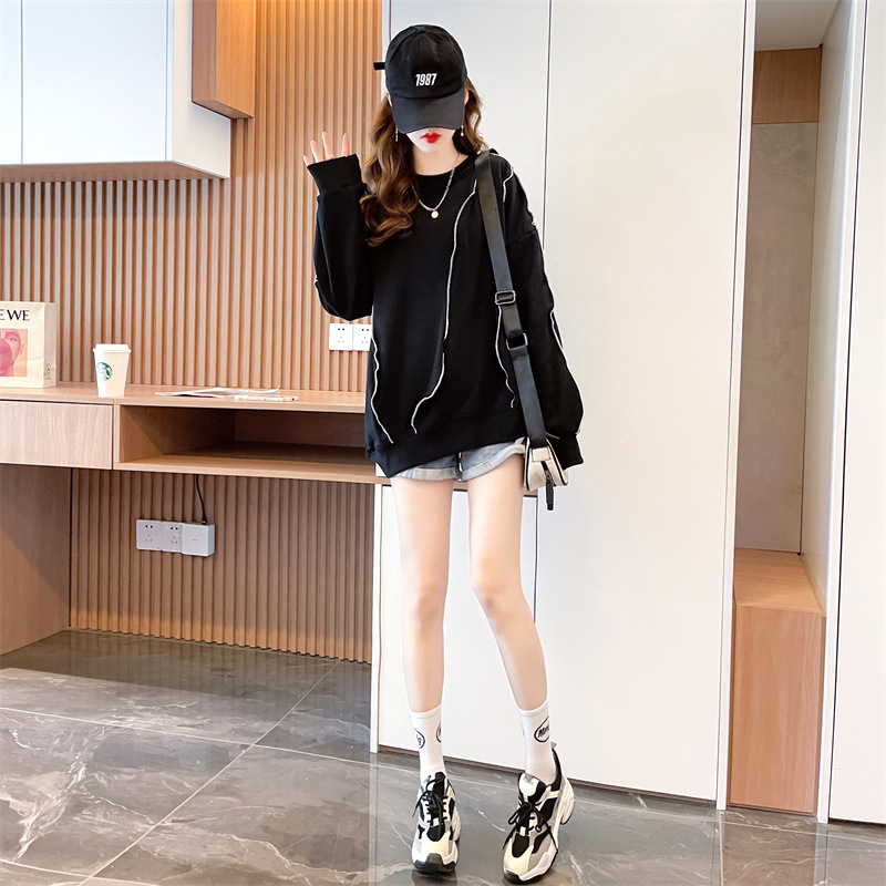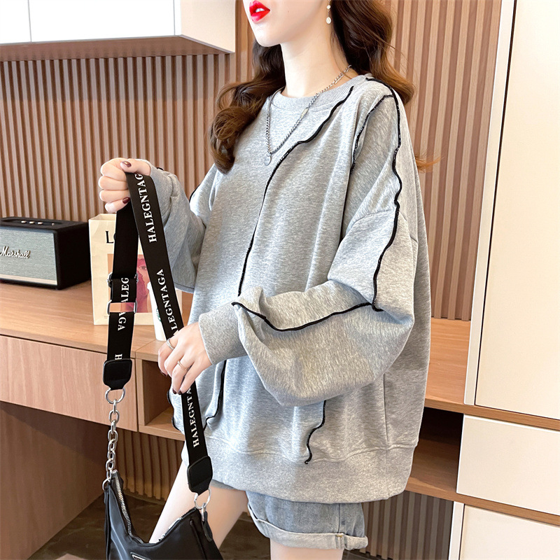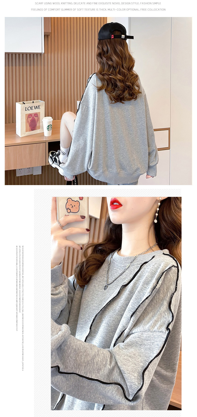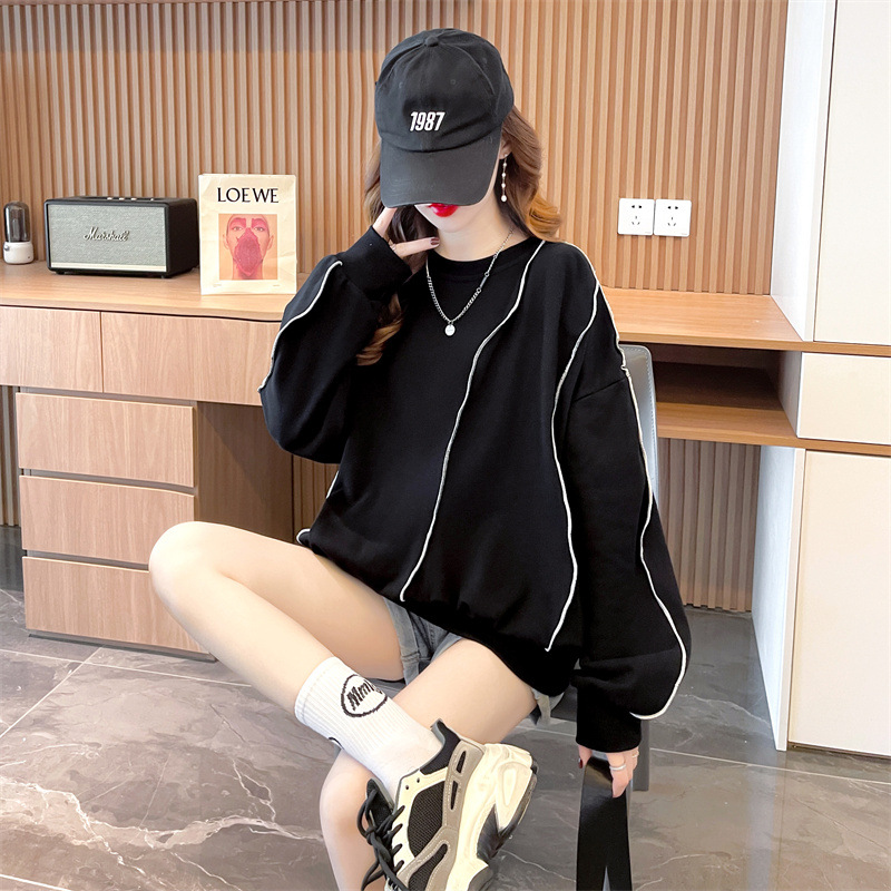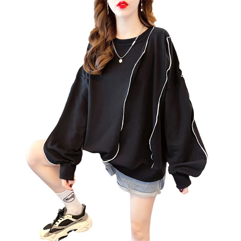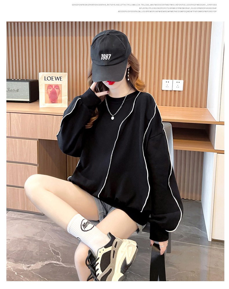 Трансграничная толстовка, женская дизайнерская ниша, тонкая осень 2025, модная свободная толстовка с круглым вырезом большого размера, женская тенденция