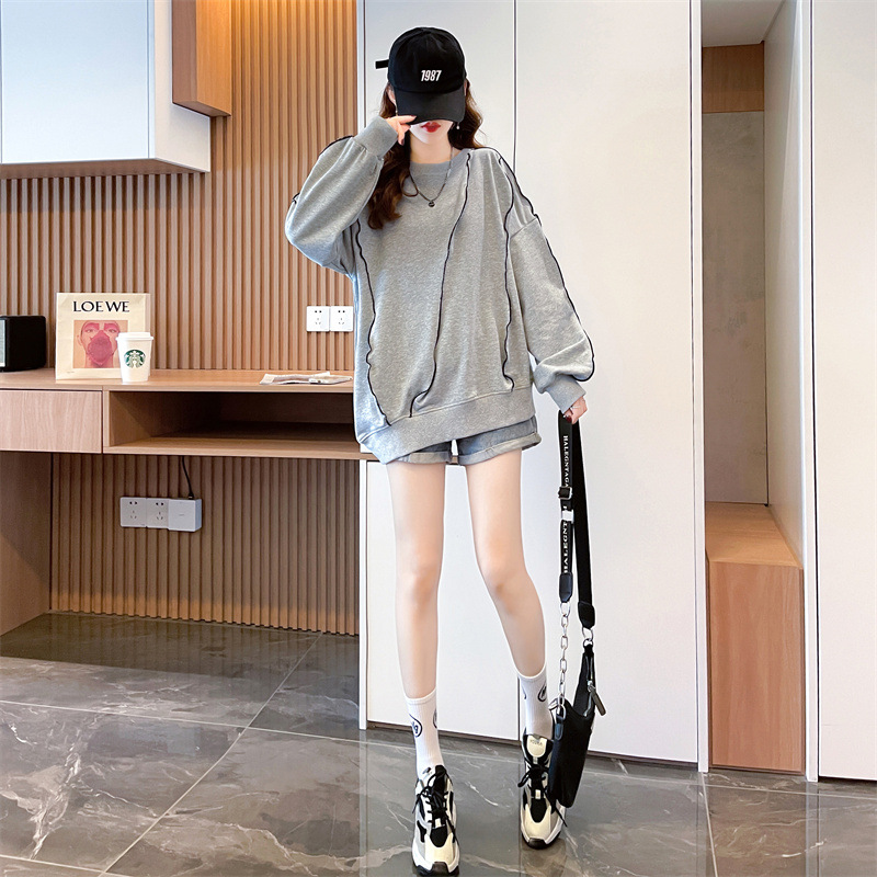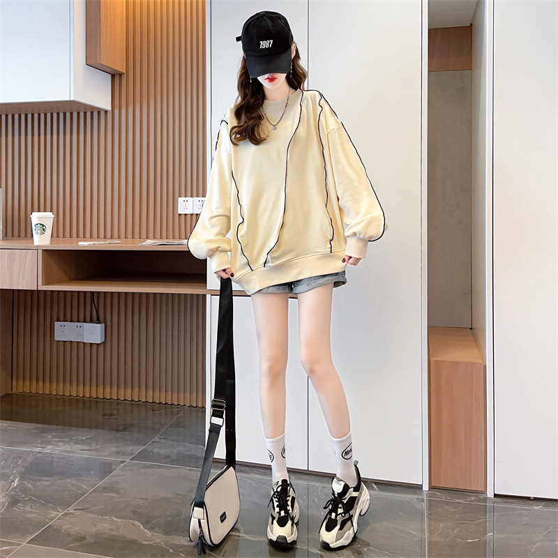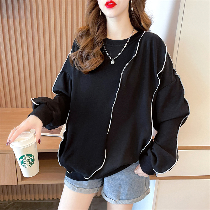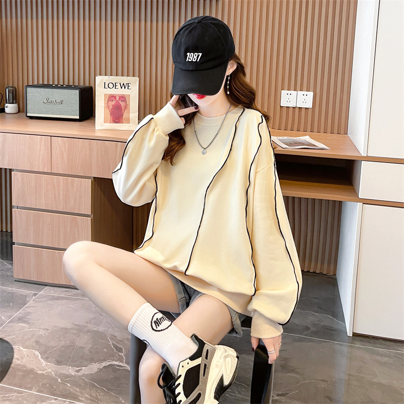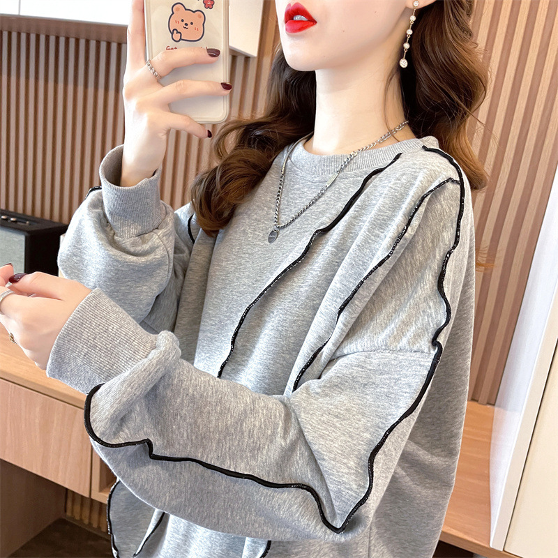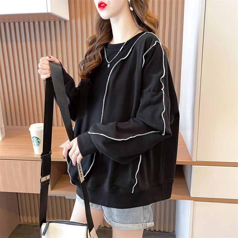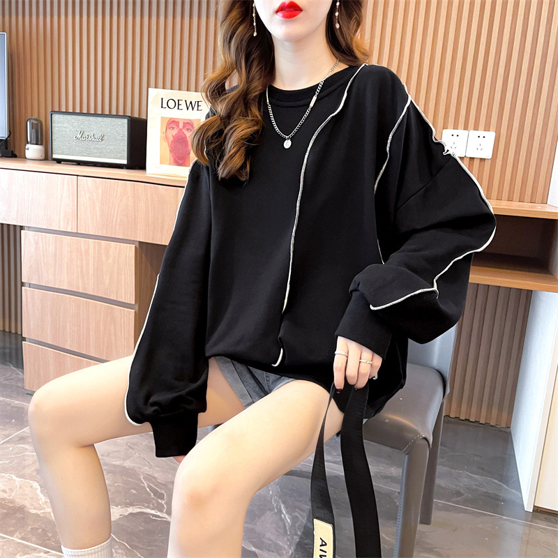 Трансграничная толстовка, женская дизайнерская ниша, тонкая осень 2025, модная свободная толстовка с круглым вырезом большого размера, женская тенденция