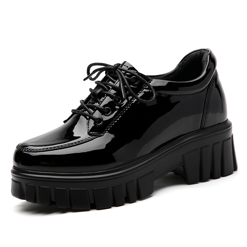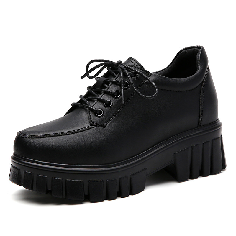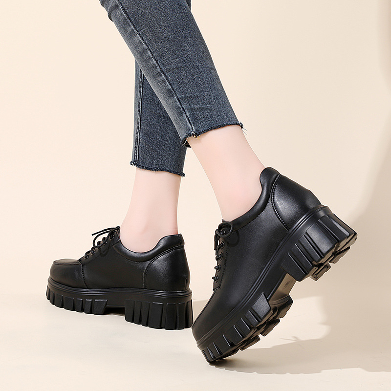 2024 весенняя новая женская обувь на толстой подошве на платформе, корейская версия, универсальные кожаные туфли на толстой подошве, модные повседневные туфли на плоской подошве в британском стиле