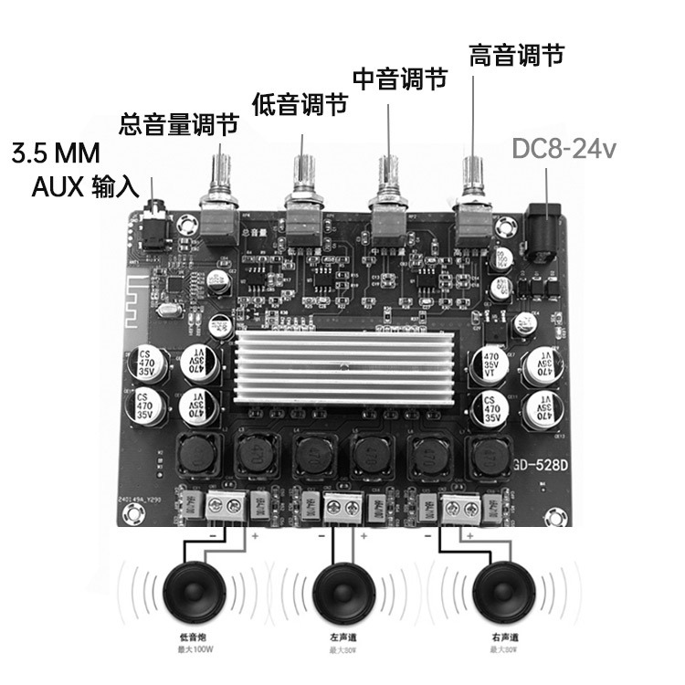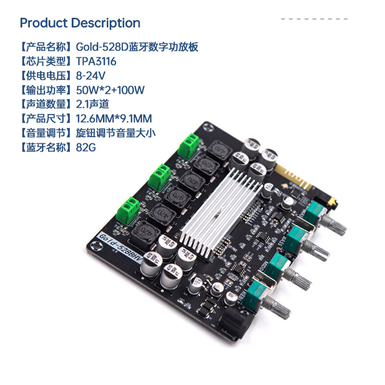 TPA3116 цифровая плата усилителя 2.1 канал 2*50W 100W Высокая мощность 8-24V Gold-528BHV