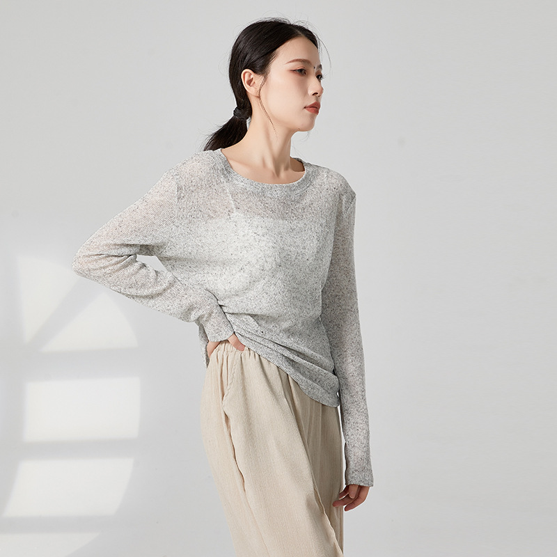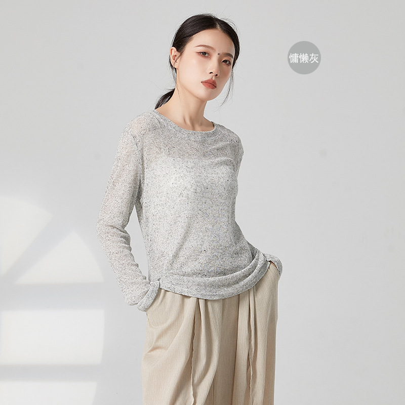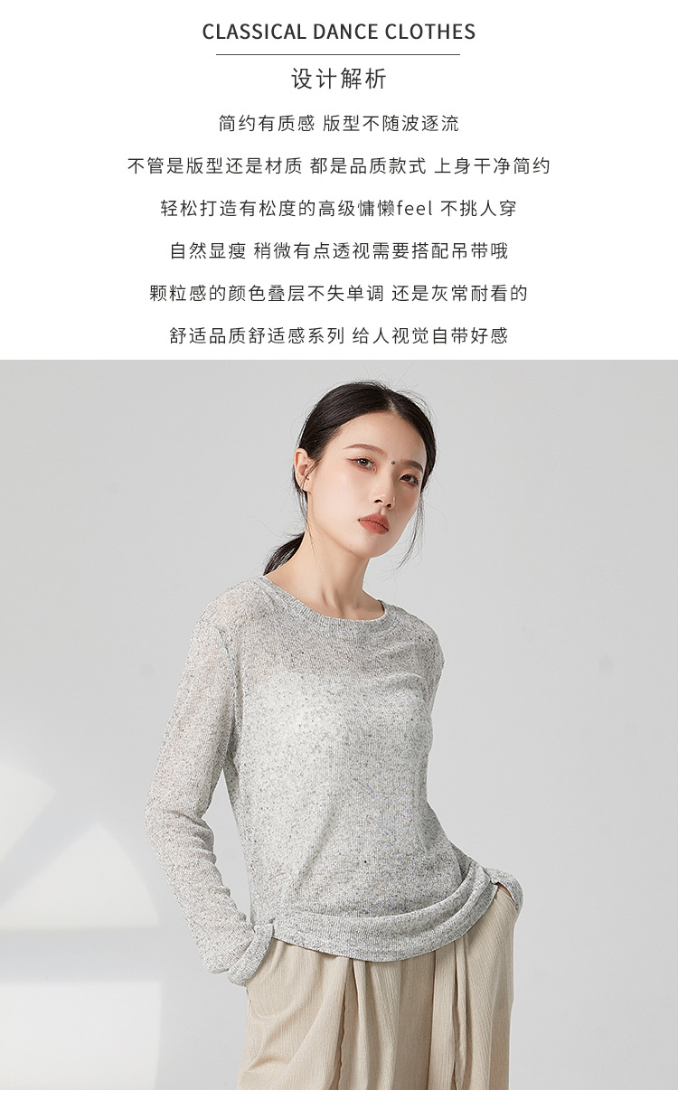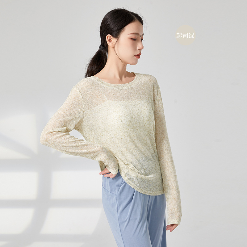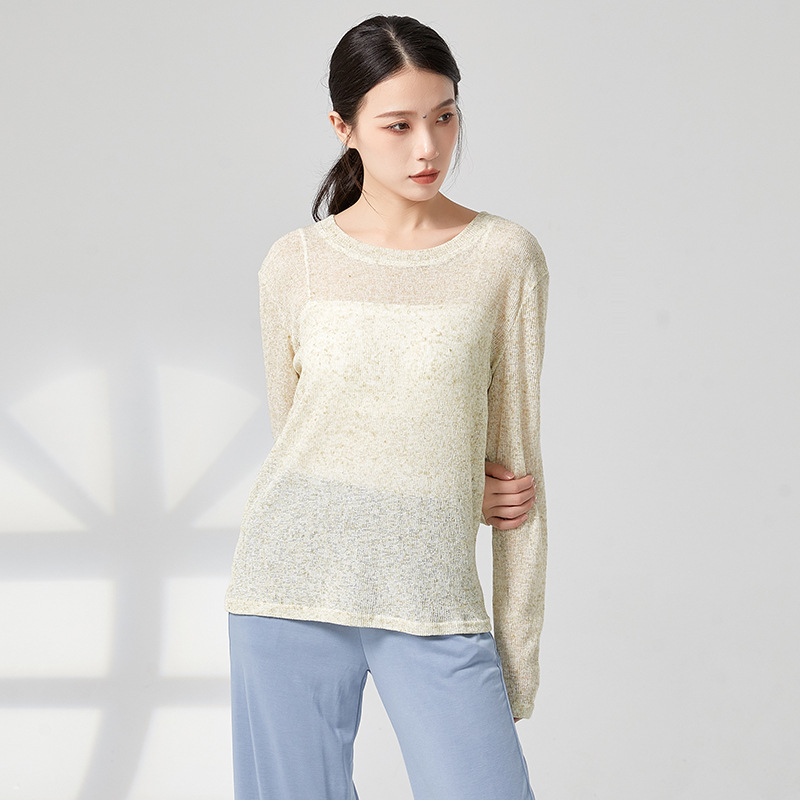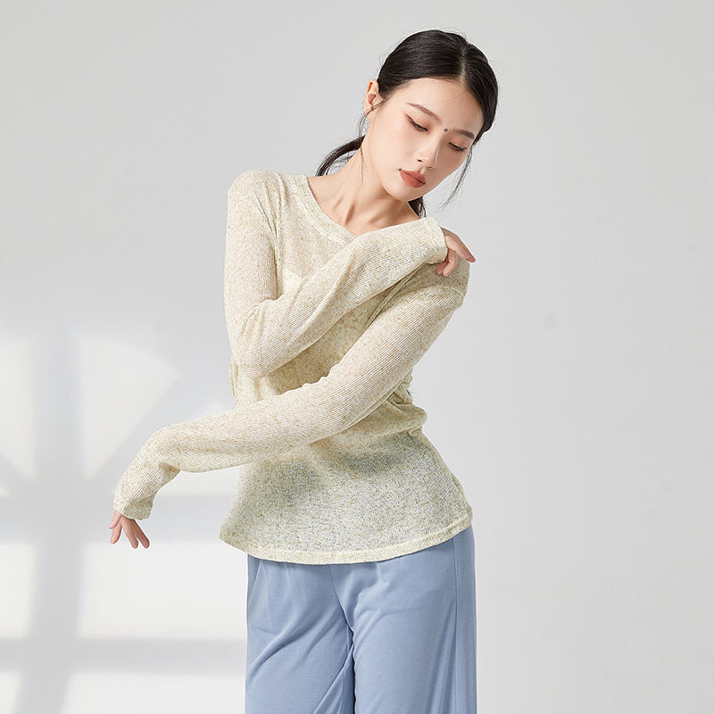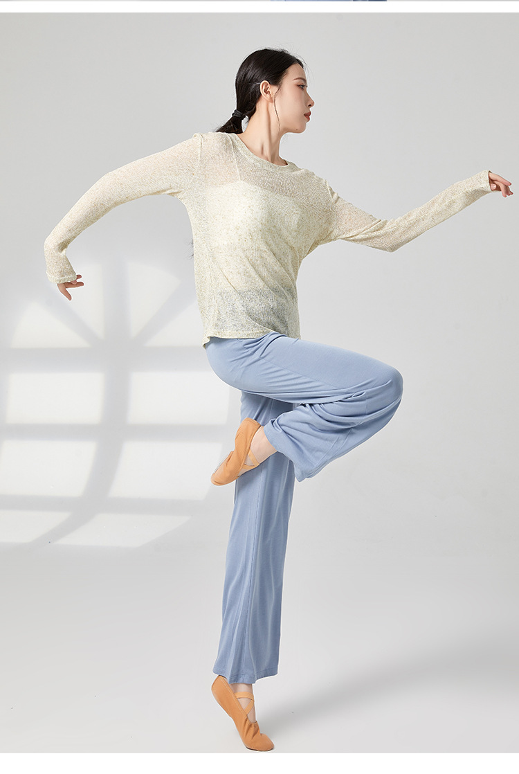 Современная танцевальная одежда Микро-прозрачный солнцезащитный крем Футболка с длинными рукавами Женская Свободная блузка с круглым вырезом Простая Классическая танцевальная тренировочная одежда