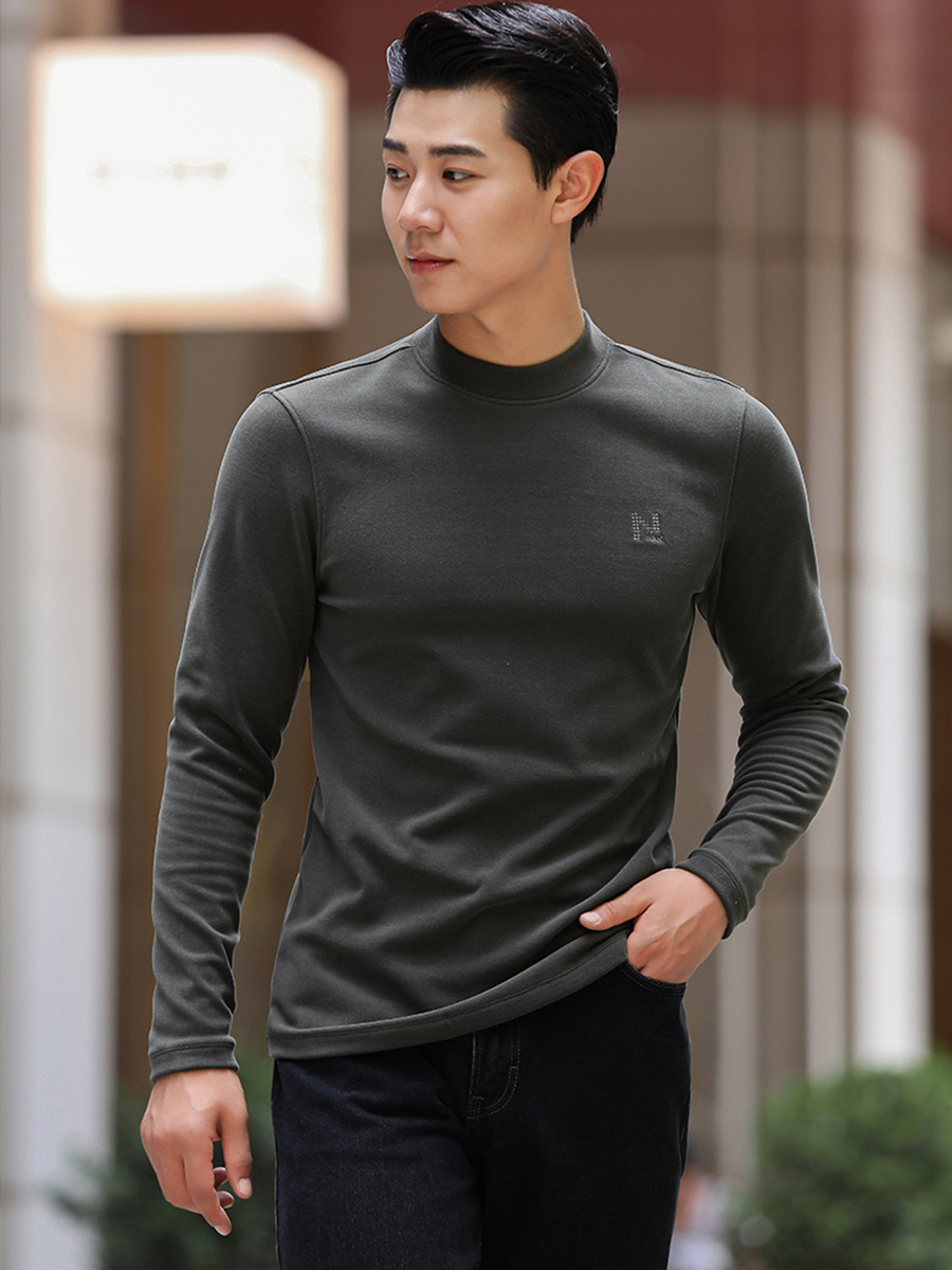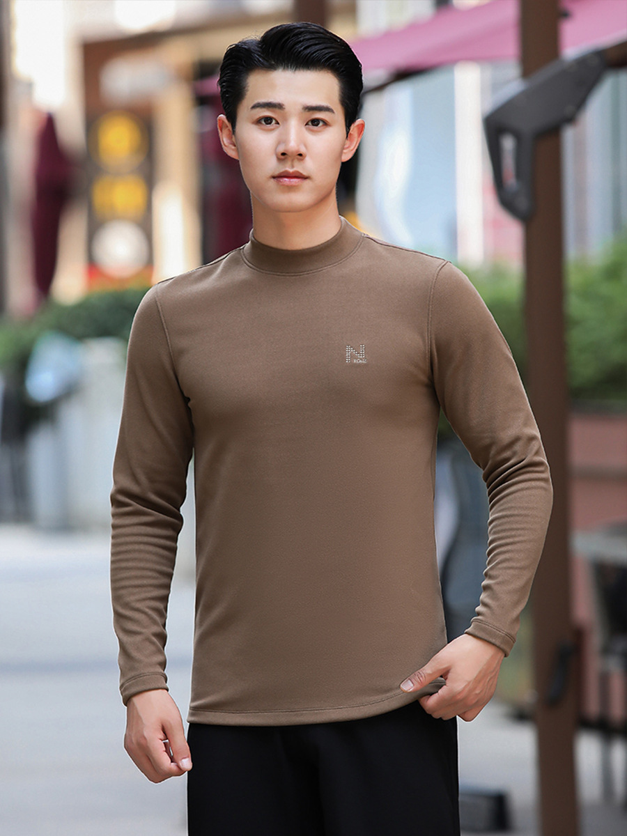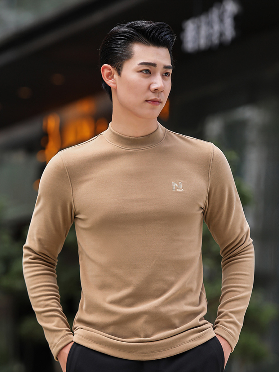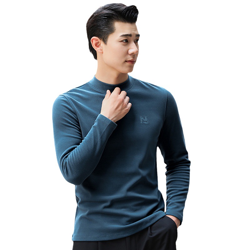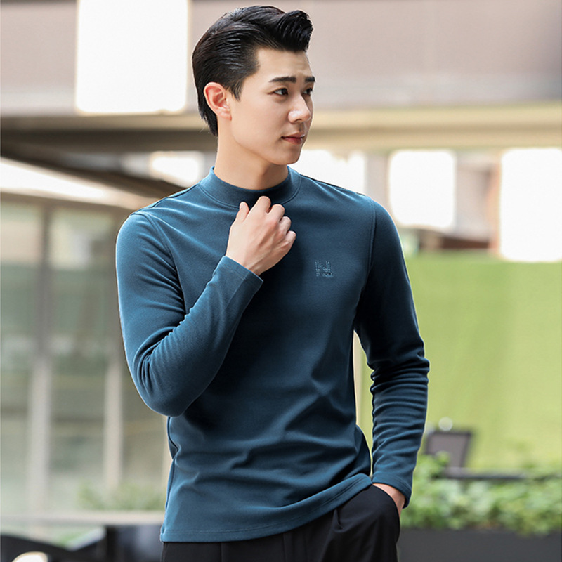 Осенне-зимняя новая мужская нижняя рубашка с Вышивкой Букв из бархата со средним воротником, шлифовальный кашемировый Шелковый Топ с длинным рукавом