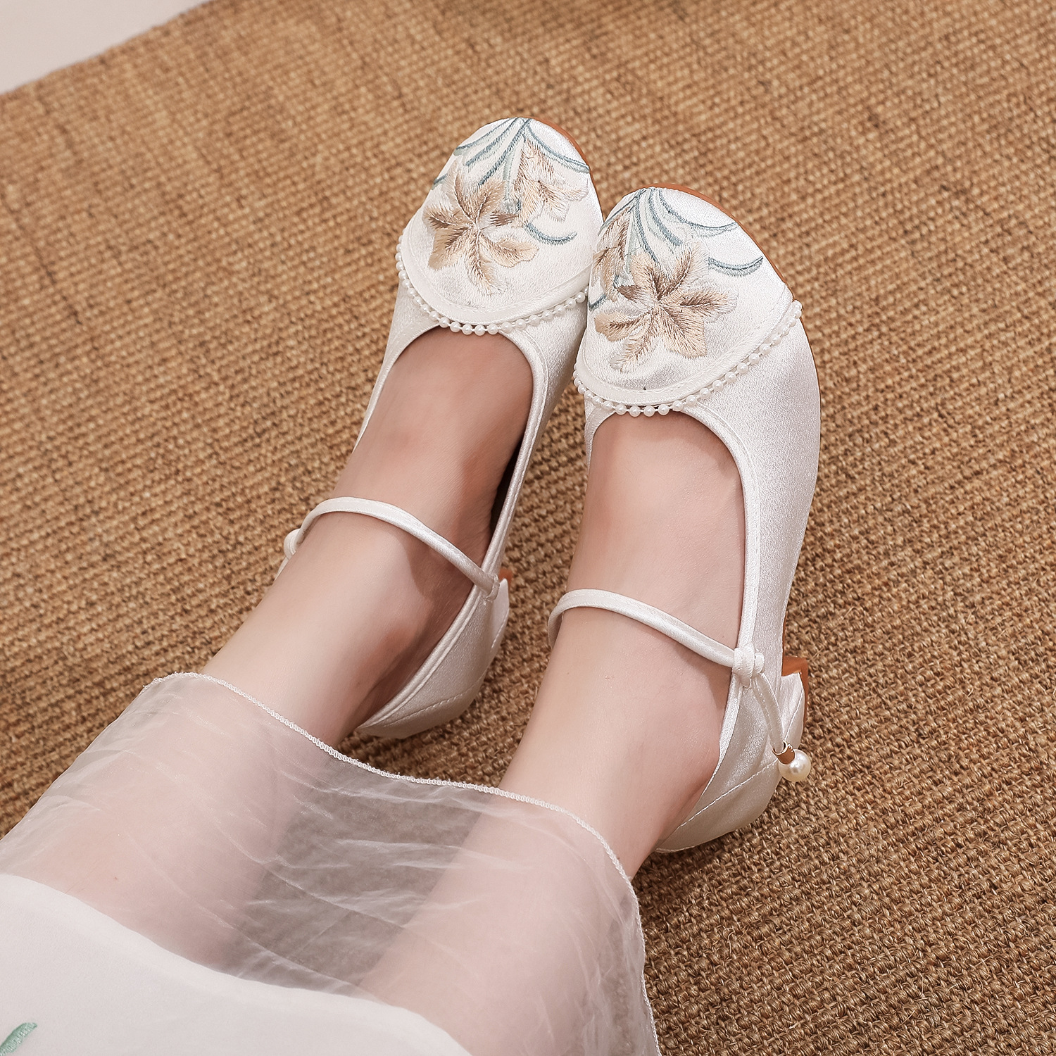 Оценка 2024 новых квадратных каблуков с чонсам Hanfu обувь этнический стиль одиночные туфли вышитые туфли