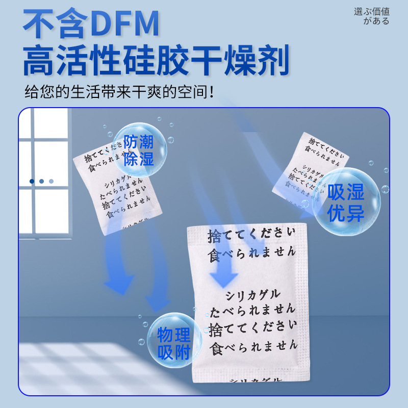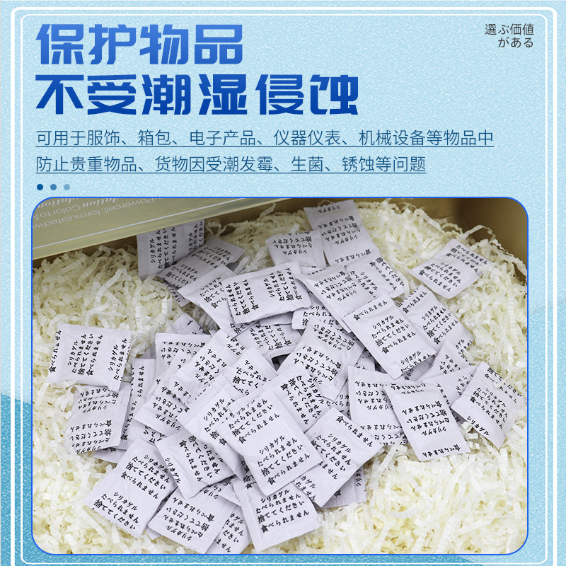 Небольшая упаковка 2 г влагостойкого прозрачного осушителя силикагеля с японской печатью на экспорт, промышленный бытовой гардероб, коробка