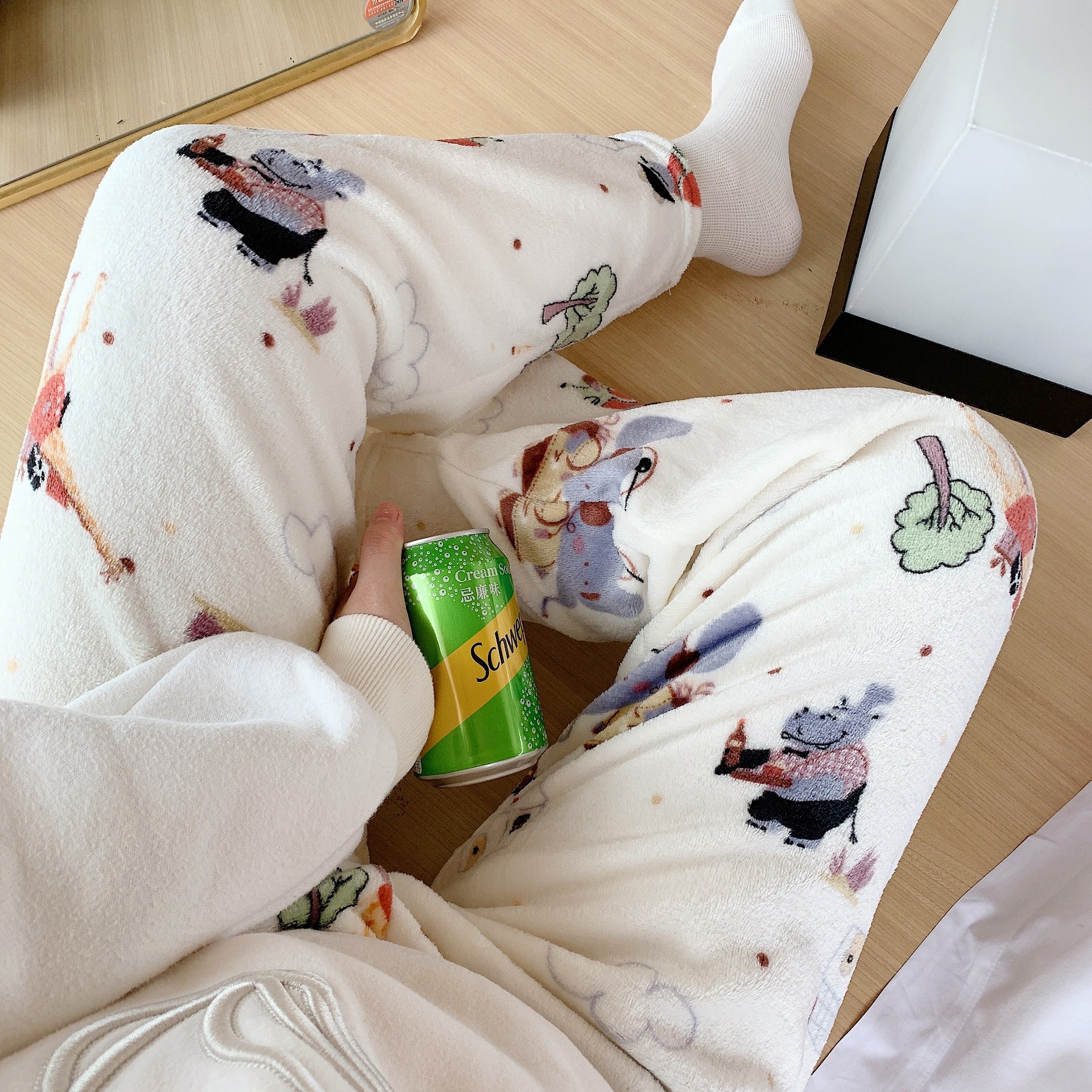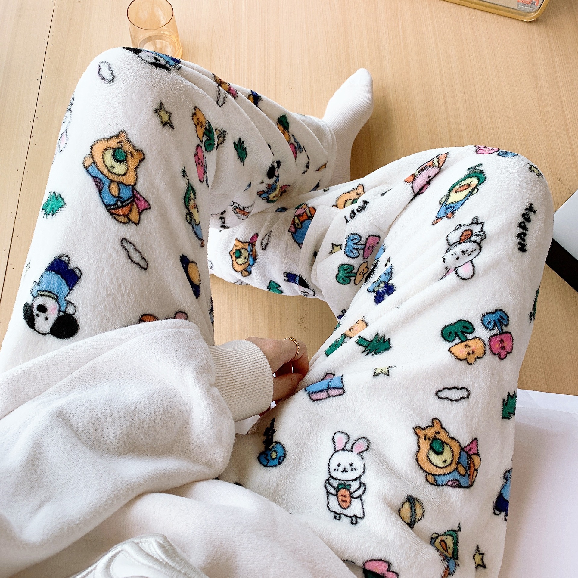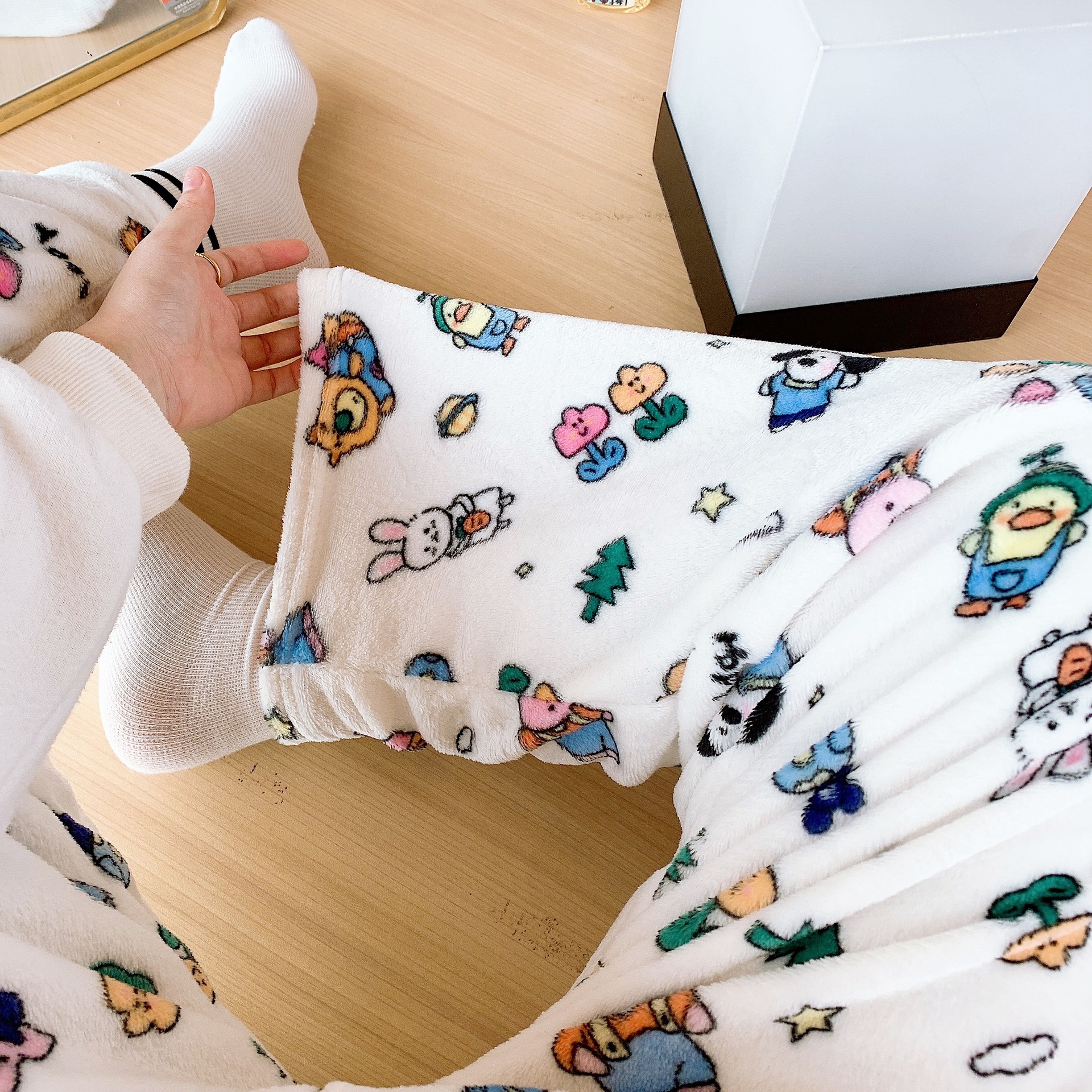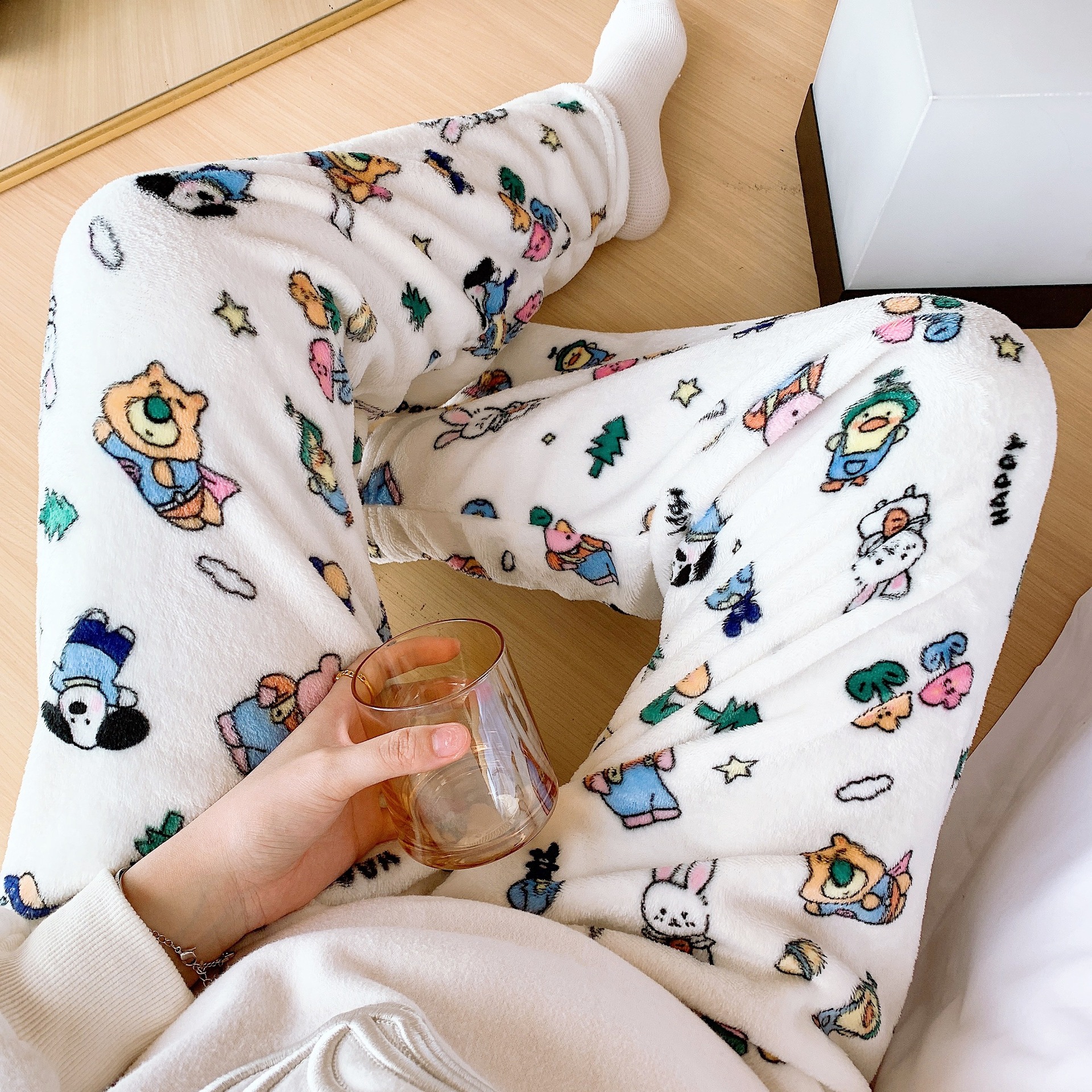 Фланелевые пижамные брюки с мультяшными летучими животными, женские осенне-зимние новые утолщенные Теплые повседневные домашние брюки из кораллового флиса