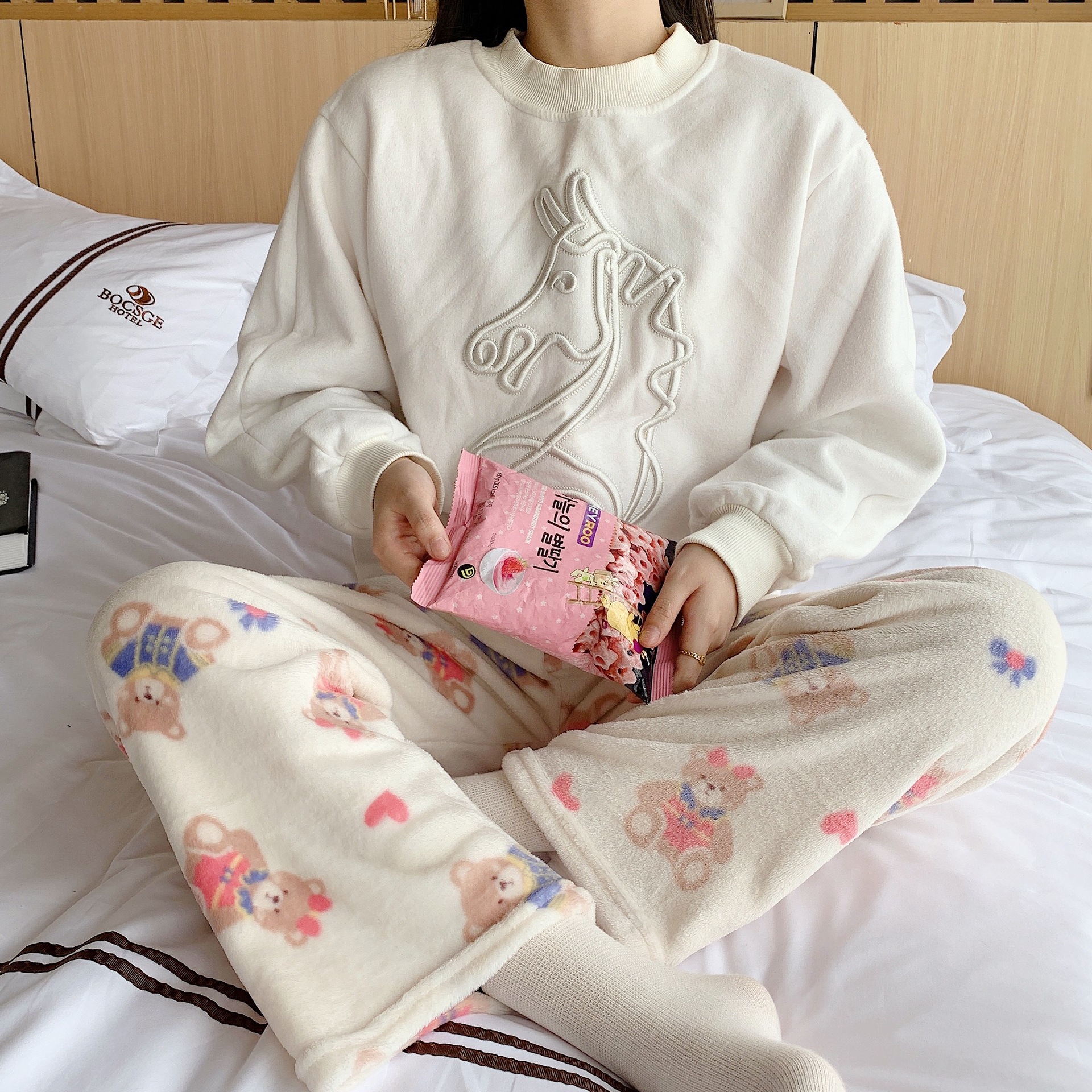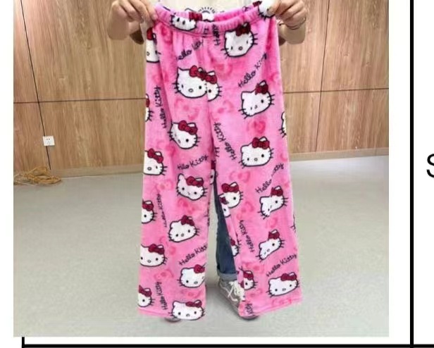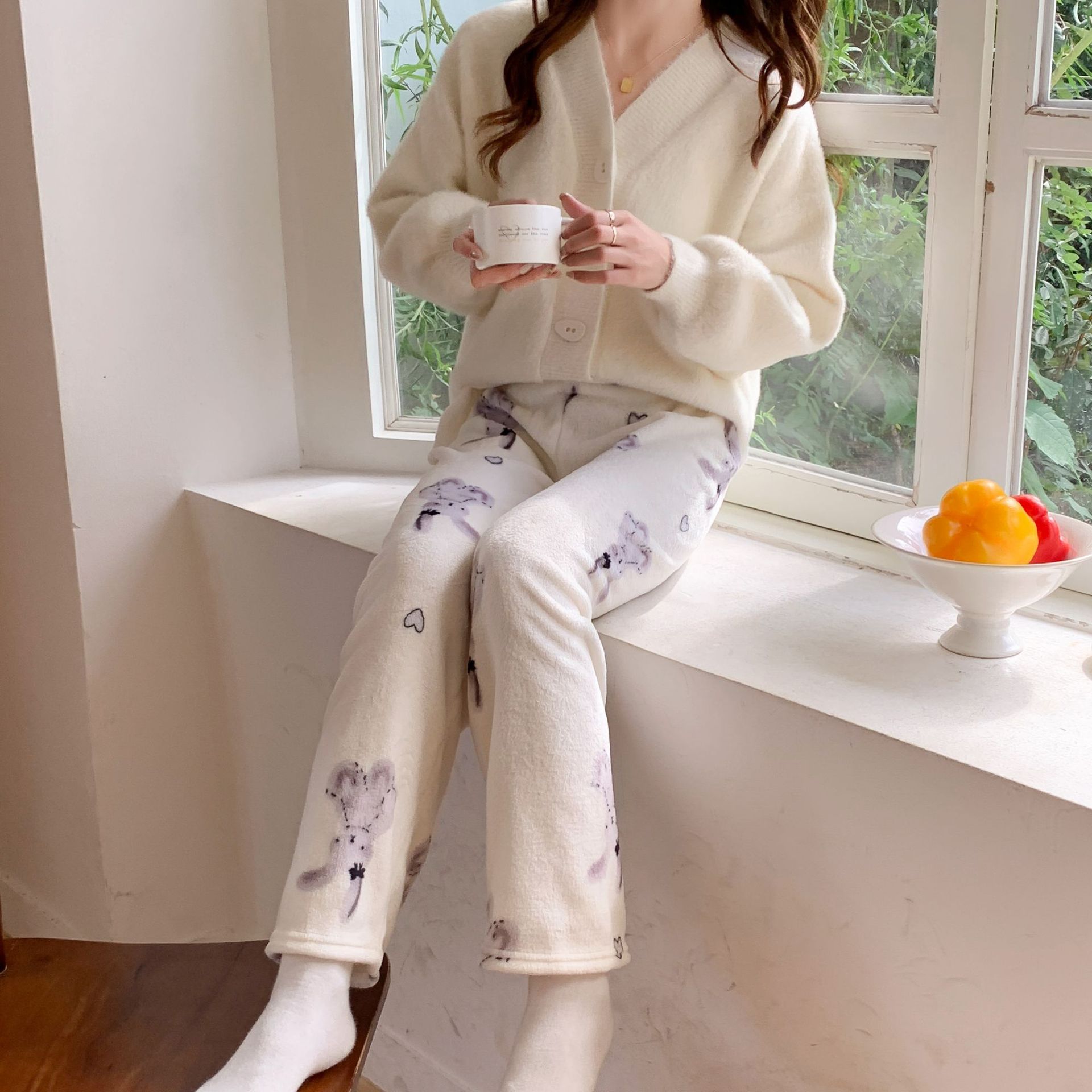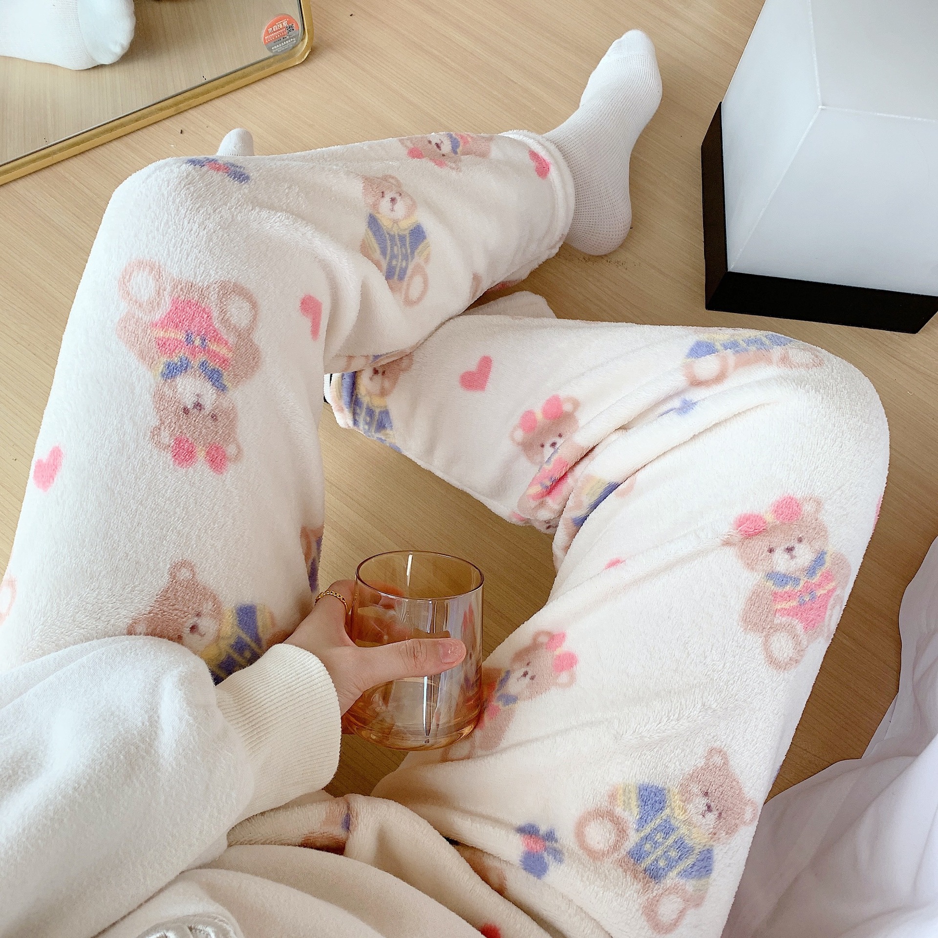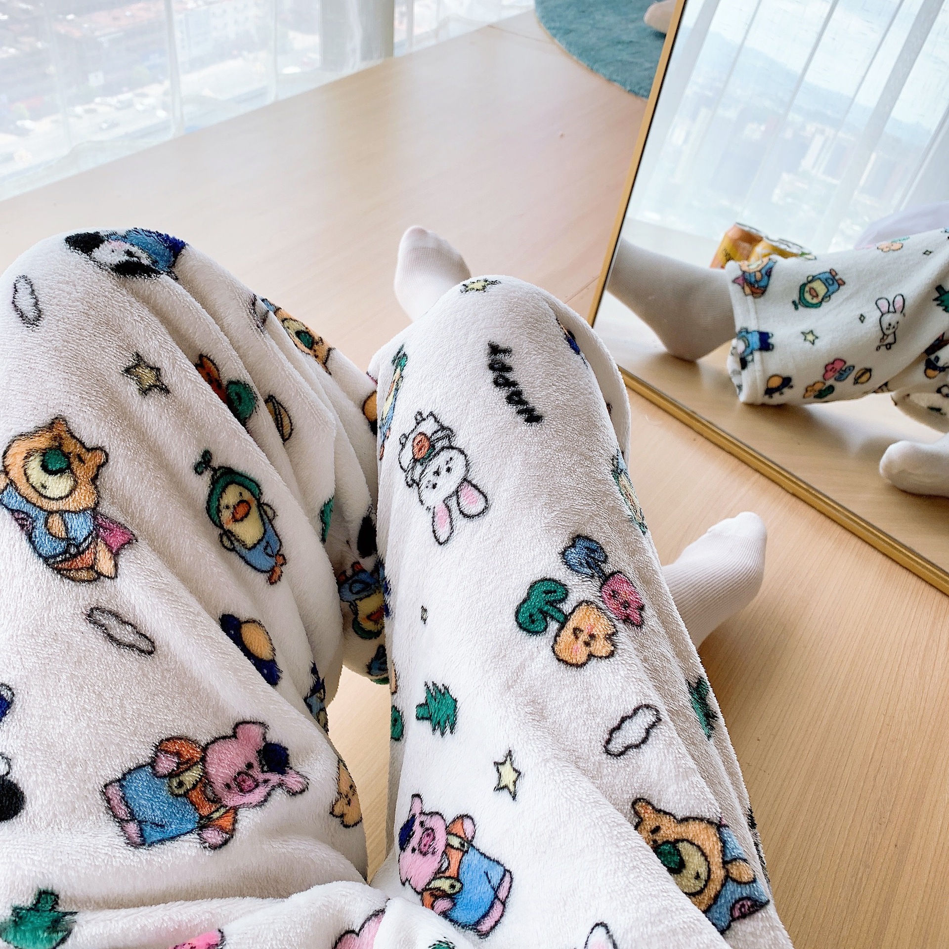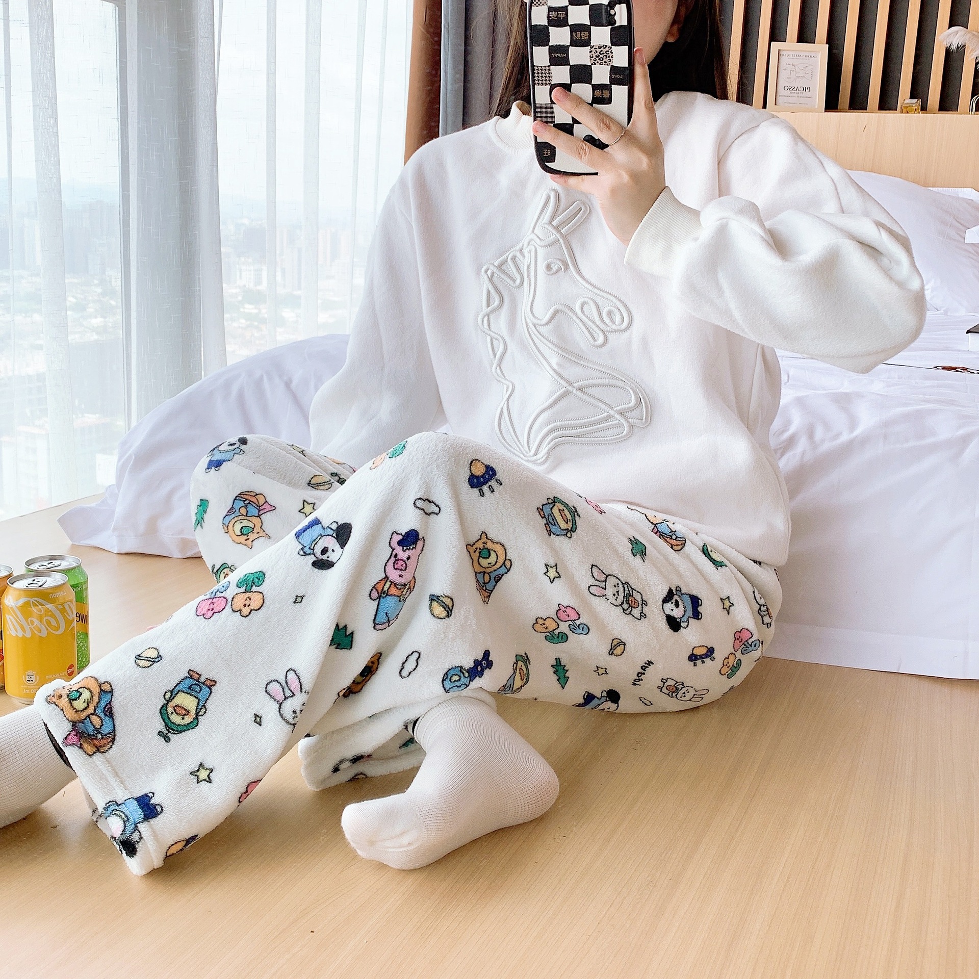 Фланелевые пижамные брюки с мультяшными летучими животными, женские осенне-зимние новые утолщенные Теплые повседневные домашние брюки из кораллового флиса