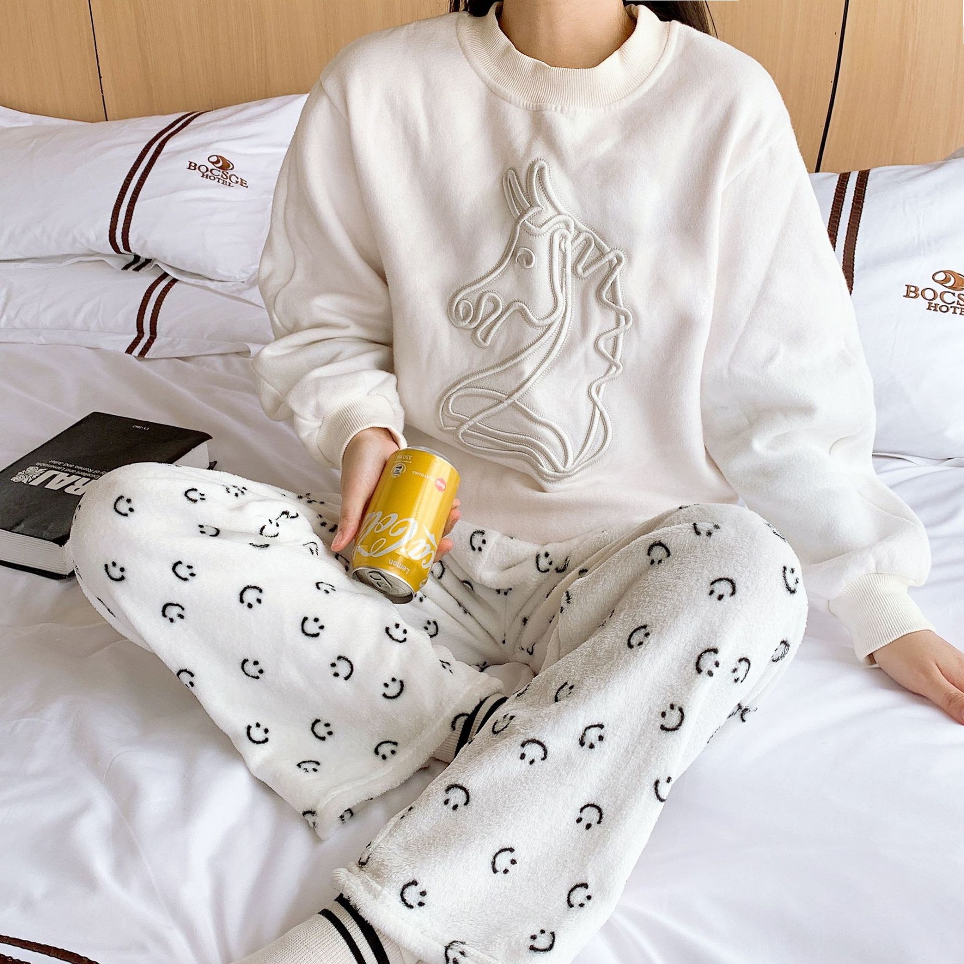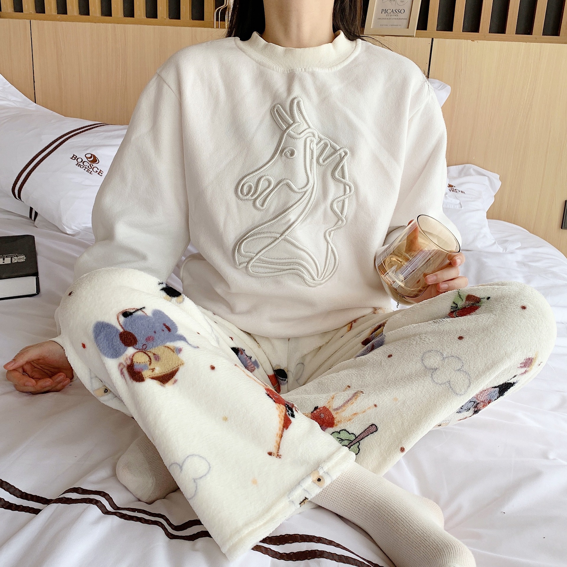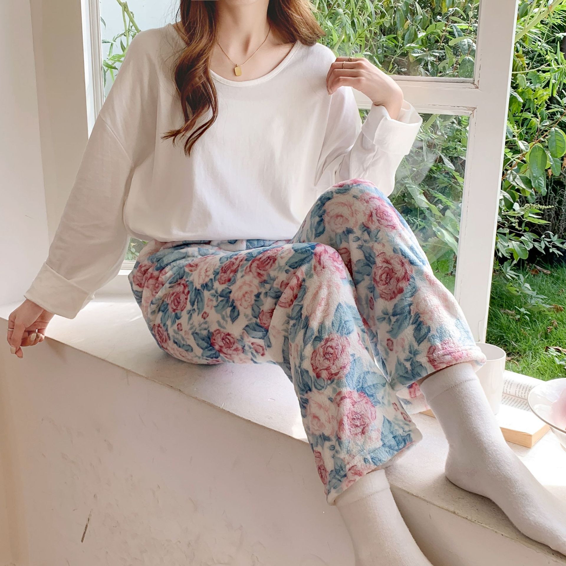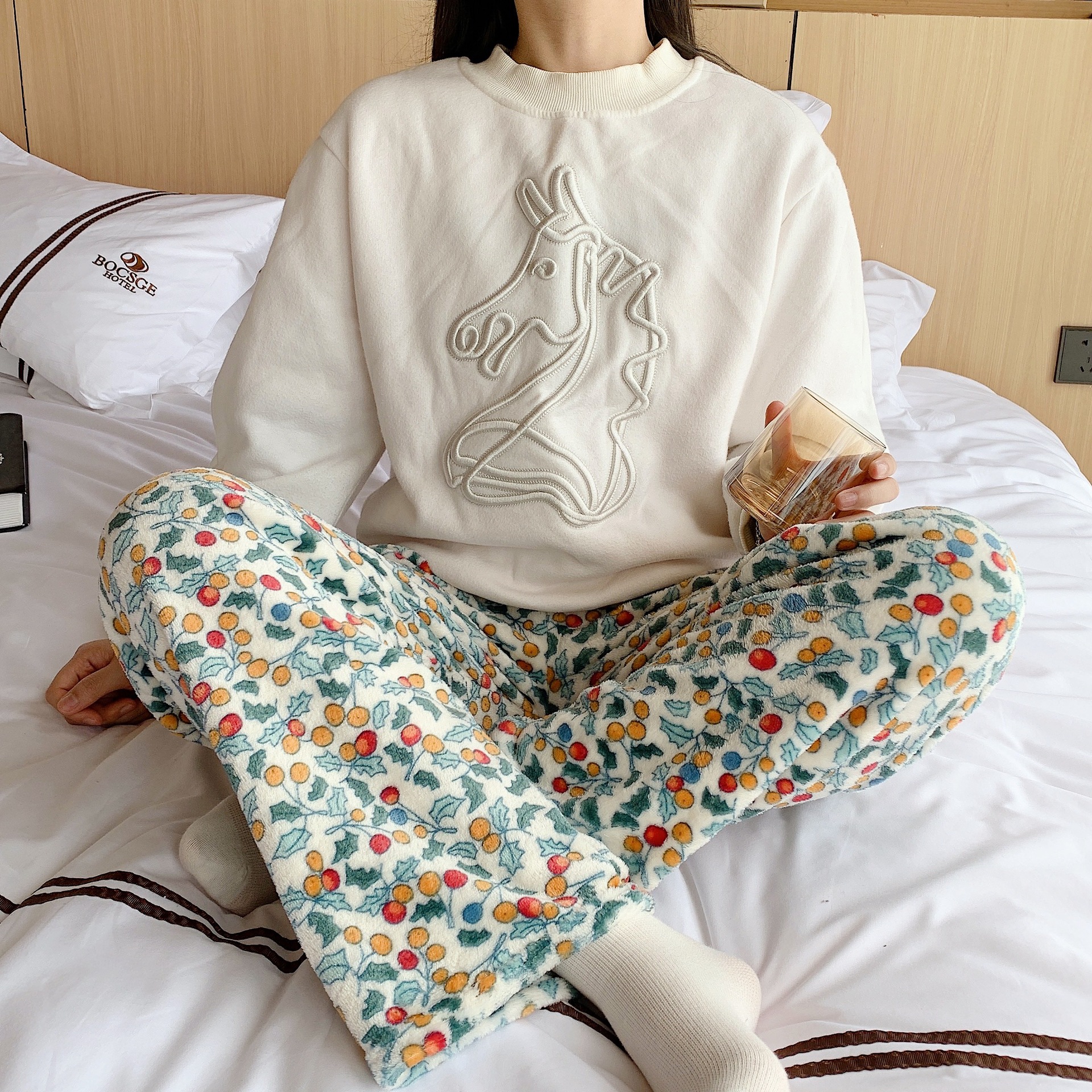 Фланелевые пижамные брюки с мультяшными летучими животными, женские осенне-зимние новые утолщенные Теплые повседневные домашние брюки из кораллового флиса