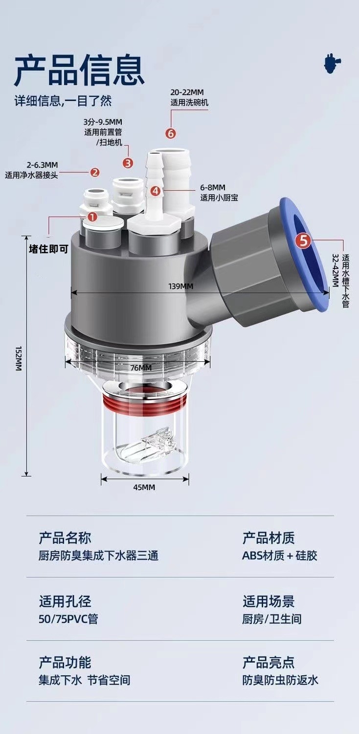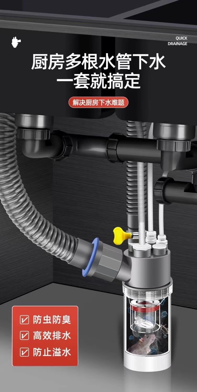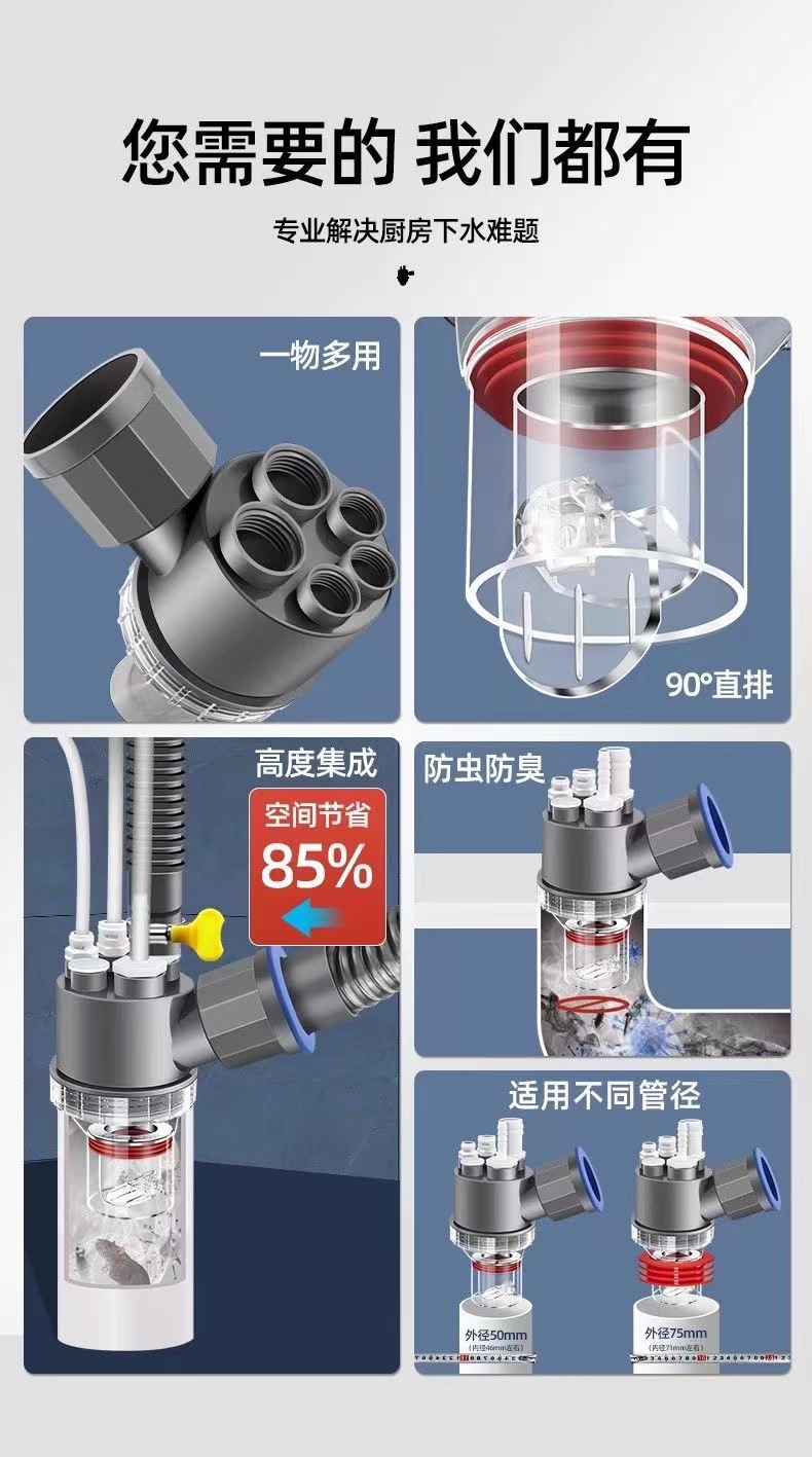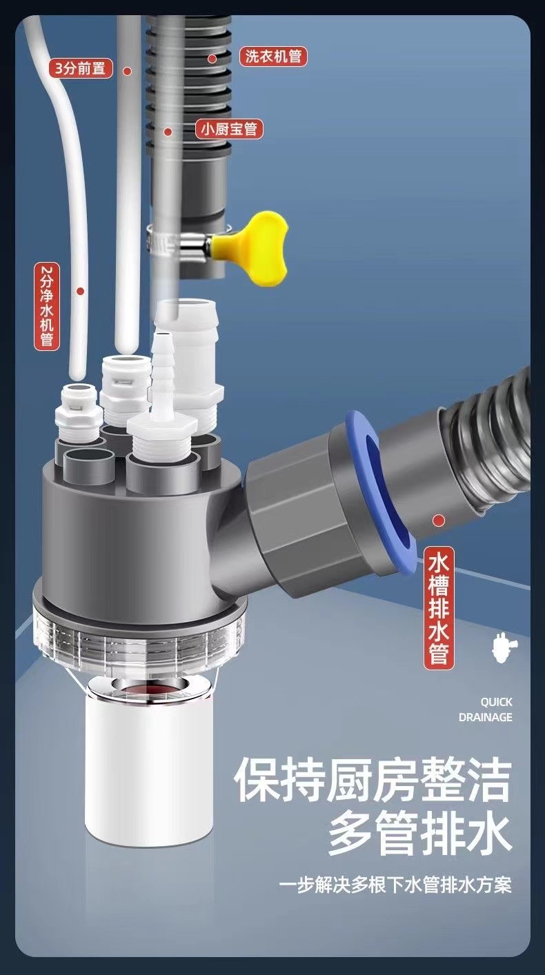 Кухня сливная труба тройник посудомоечная машина очиститель воды маленькая кухня сокровище стиральная машина сливная труба дезодорант три-в-одном соединение
