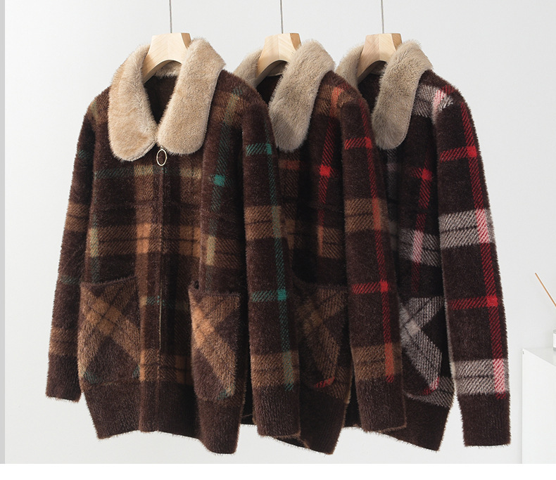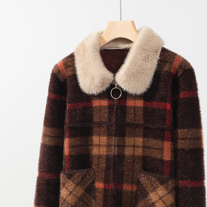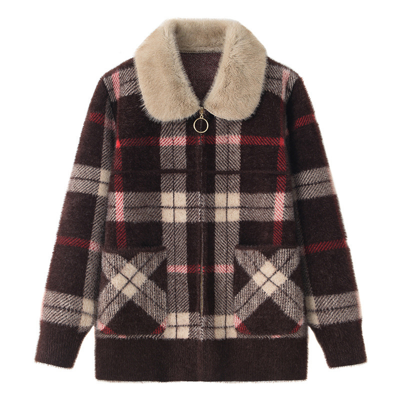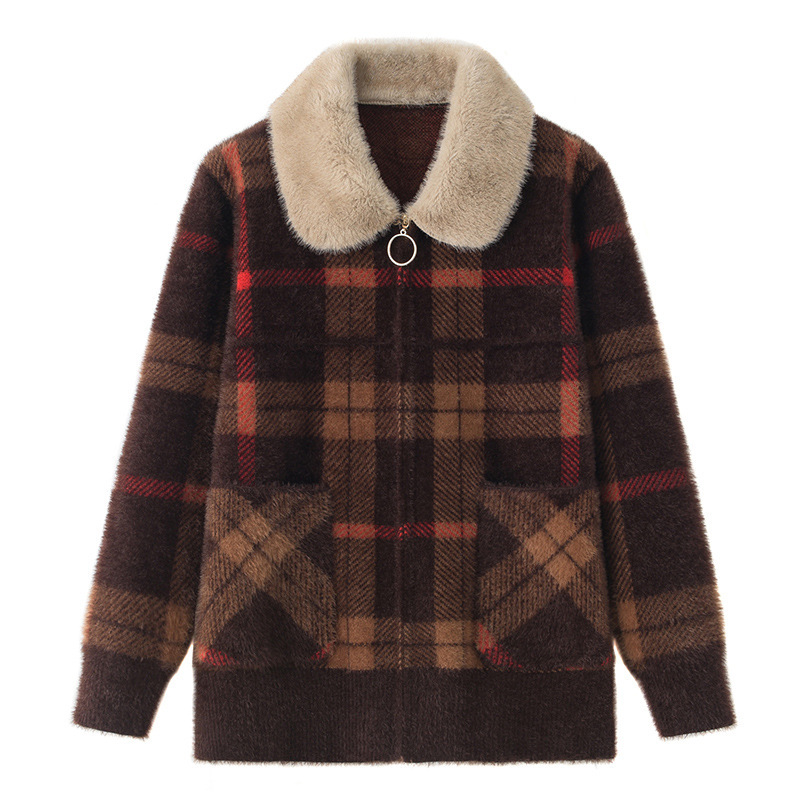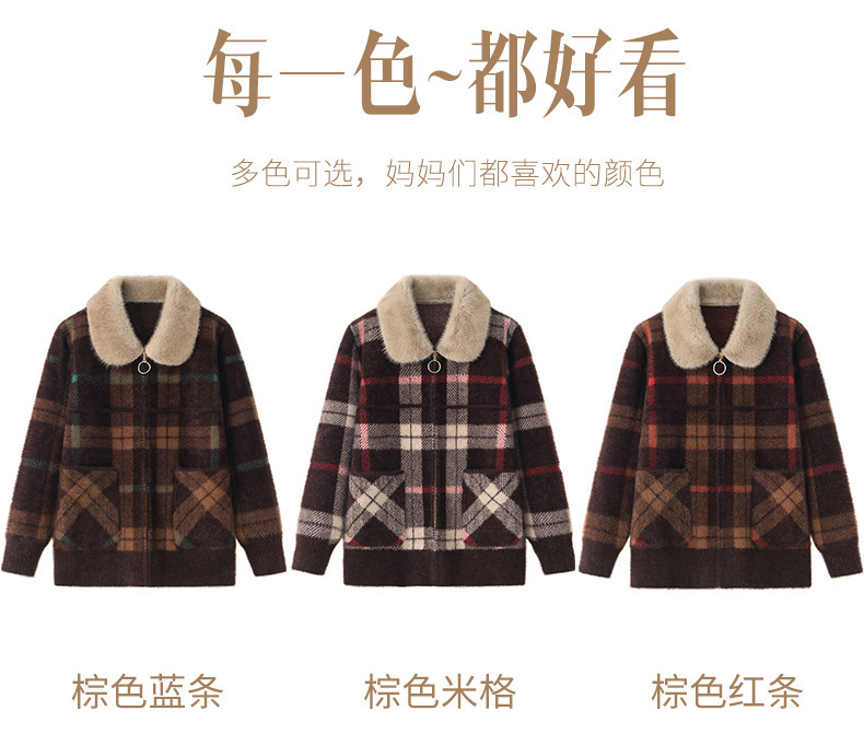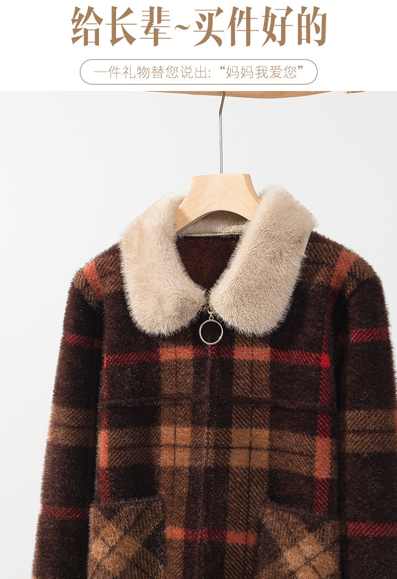 Новое маминое пальто на молнии из искусственной норковой шерсти, осенне-зимний Кардиган, клетчатая весенняя одежда для женщин среднего и пожилого возраста