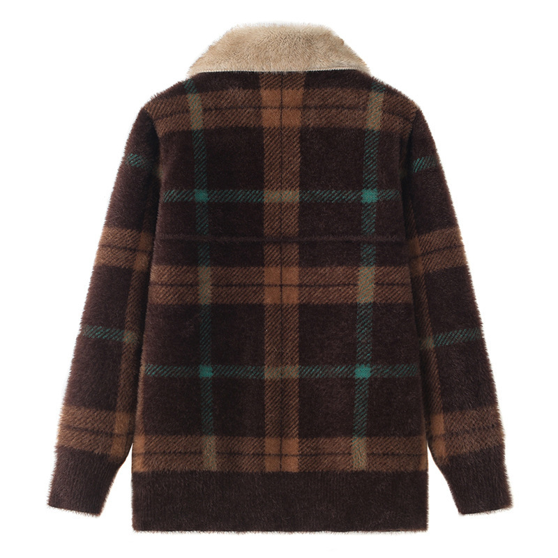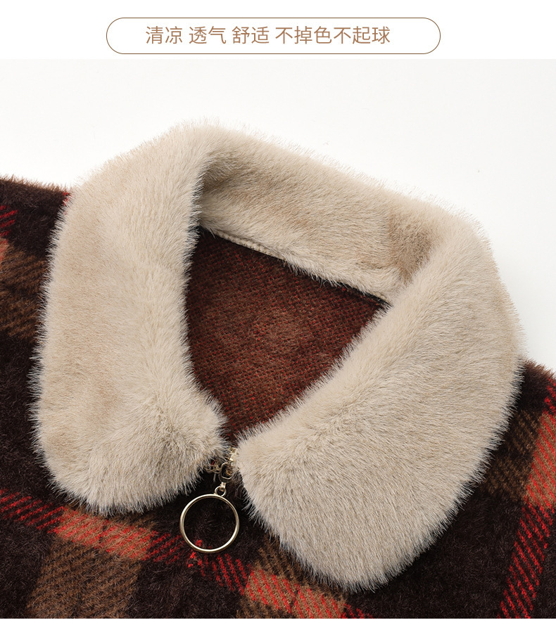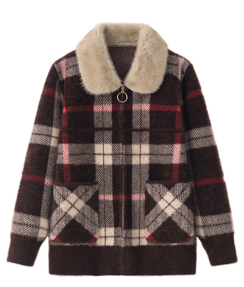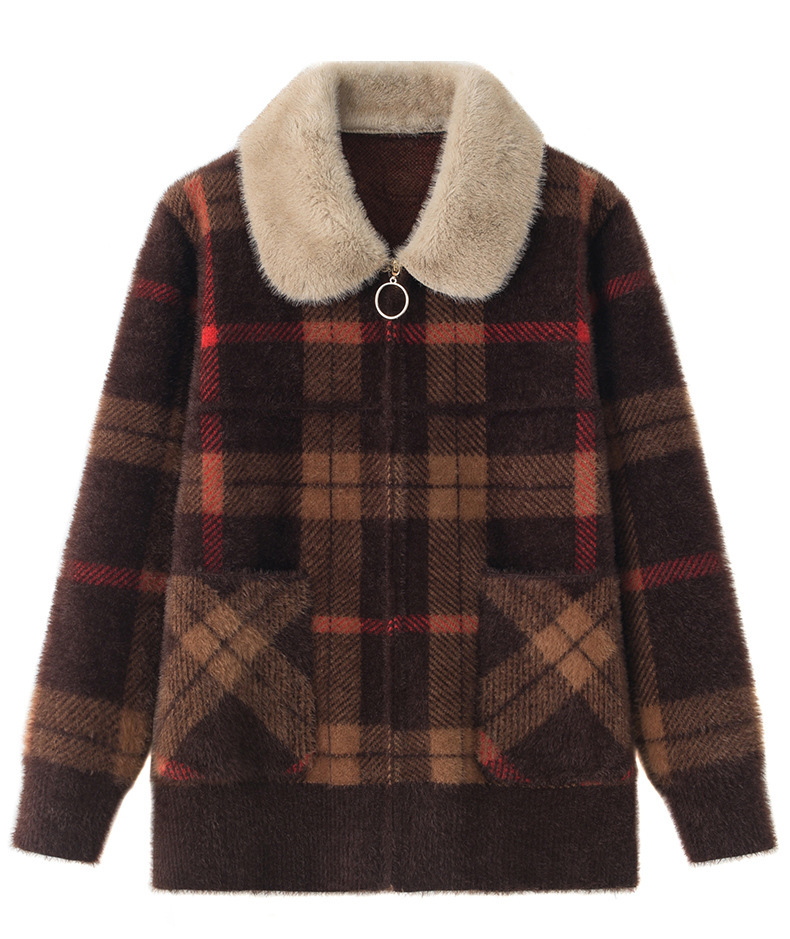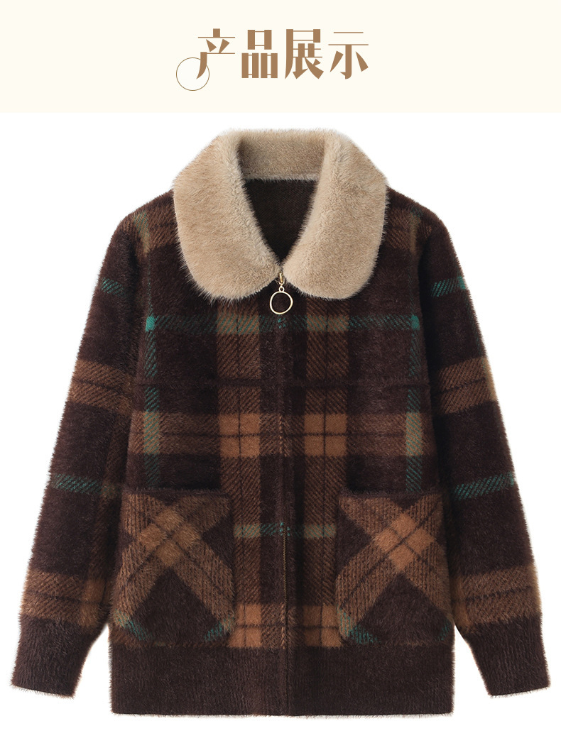 Новое маминое пальто на молнии из искусственной норковой шерсти, осенне-зимний Кардиган, клетчатая весенняя одежда для женщин среднего и пожилого возраста