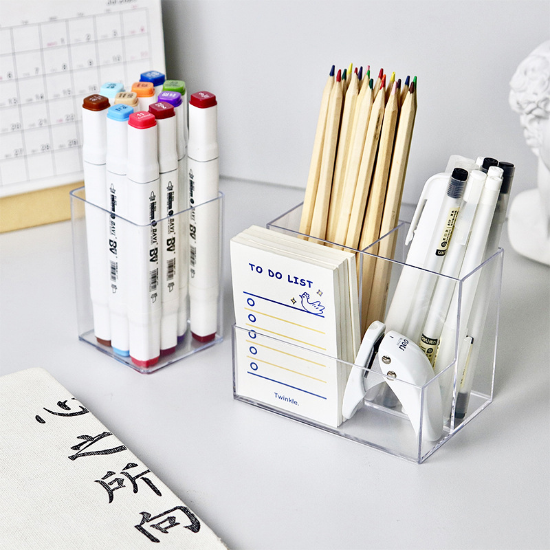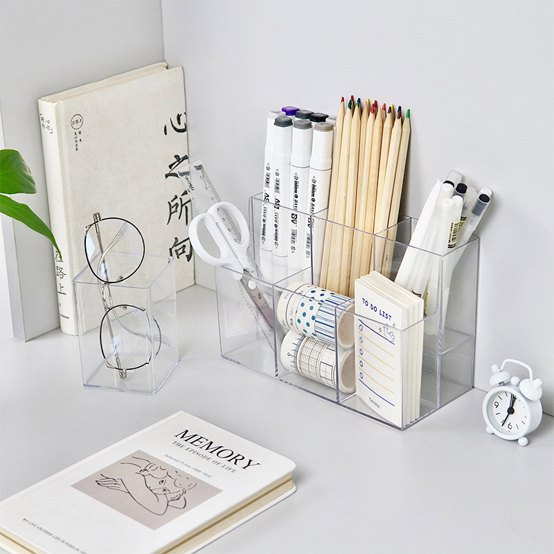 Ins Прозрачные контейнеры для ручек Акриловое ведро для ручек Студенческий офис Настольный Органайзер Ящик для хранения косметических кистей Ведро для хранения