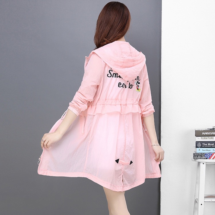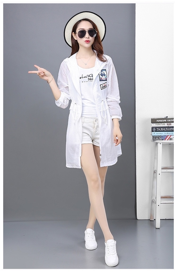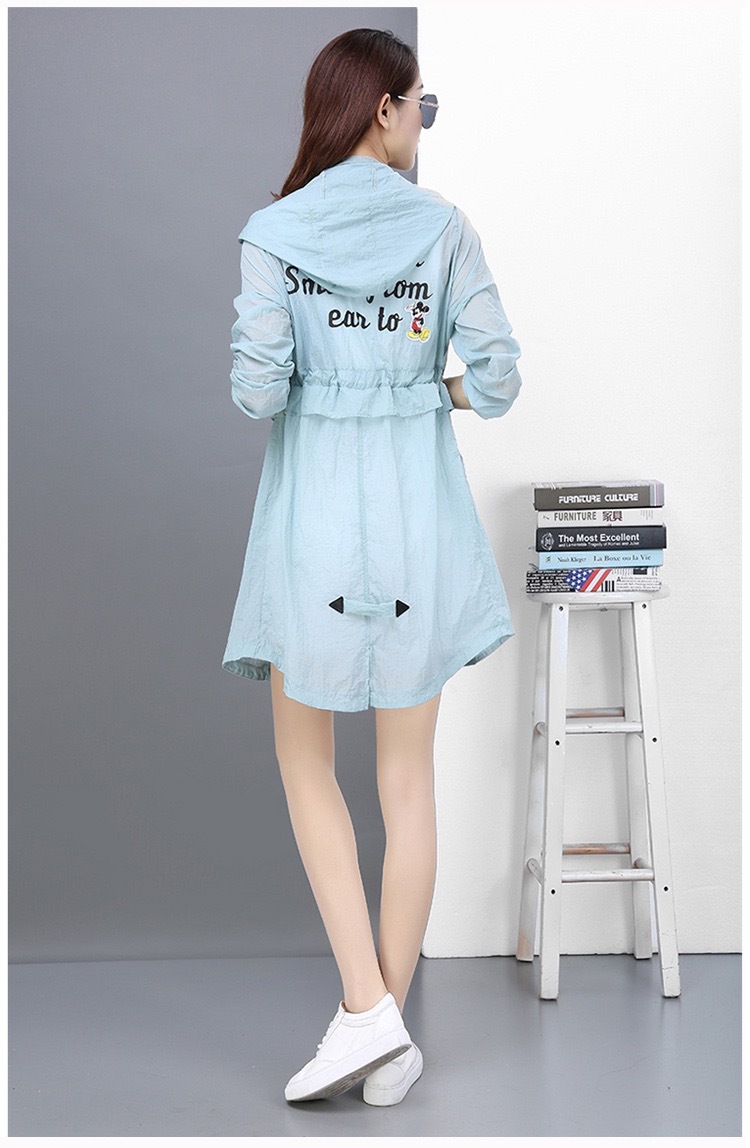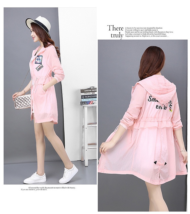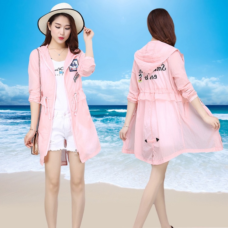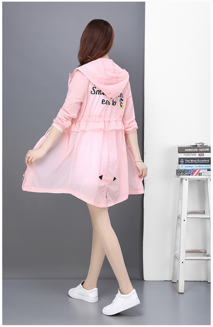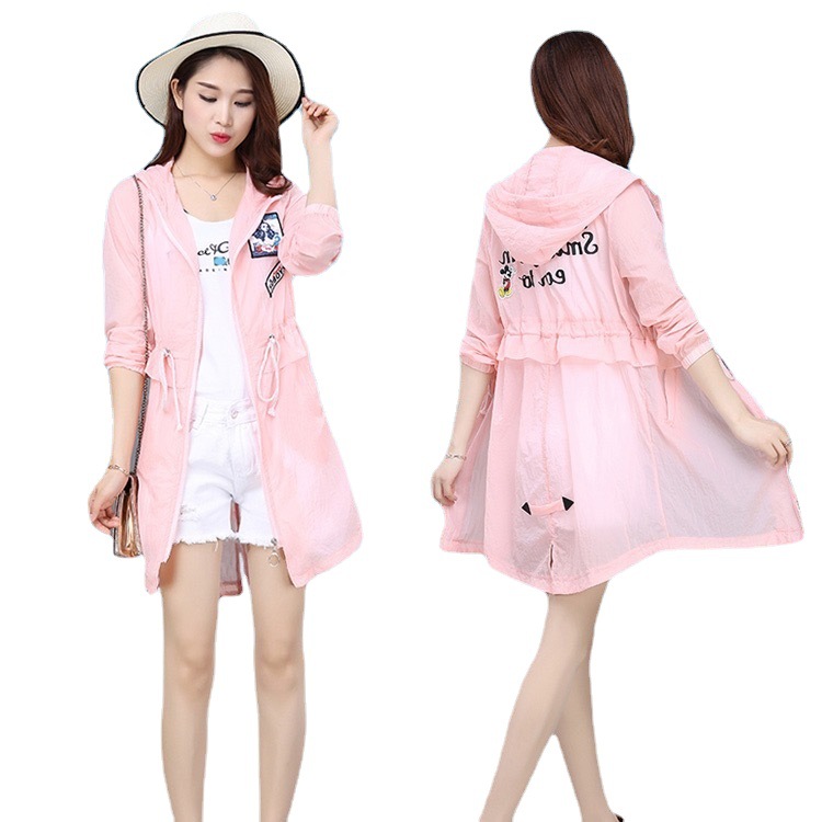 Женская летняя свободная ультратонкая куртка средней длины с капюшоном и завязками на талии, устойчивая к ультрафиолетовому излучению, в Корейском стиле