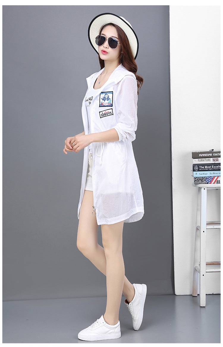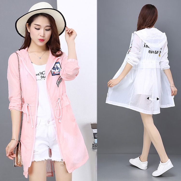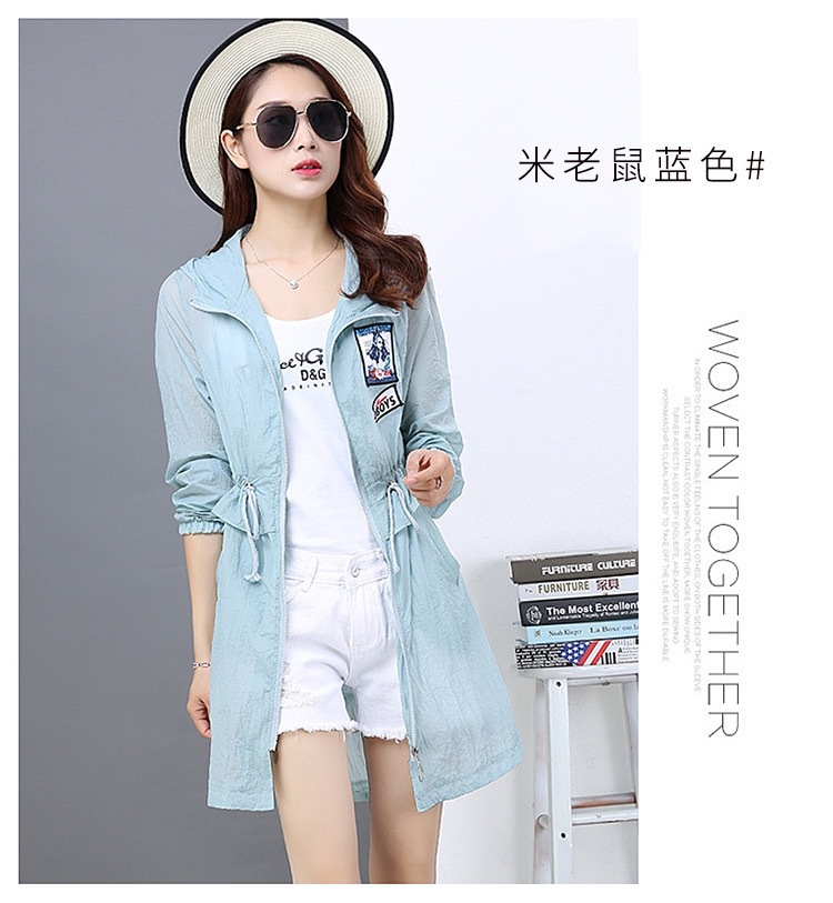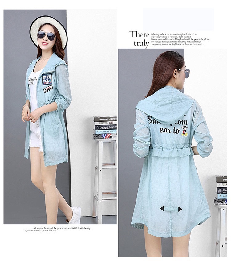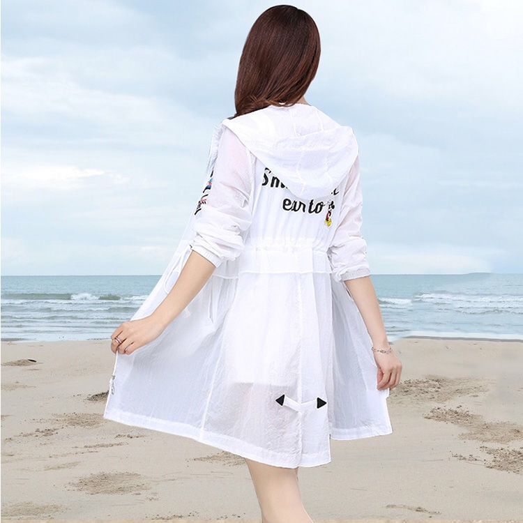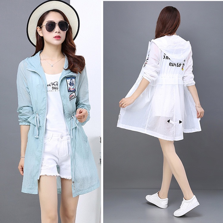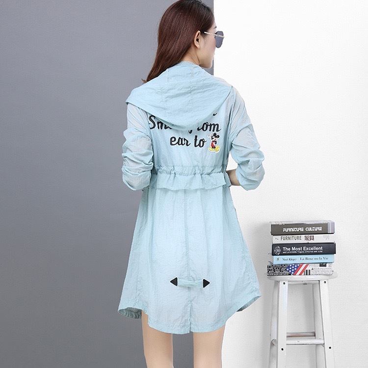 Женская летняя свободная ультратонкая куртка средней длины с капюшоном и завязками на талии, устойчивая к ультрафиолетовому излучению, в Корейском стиле