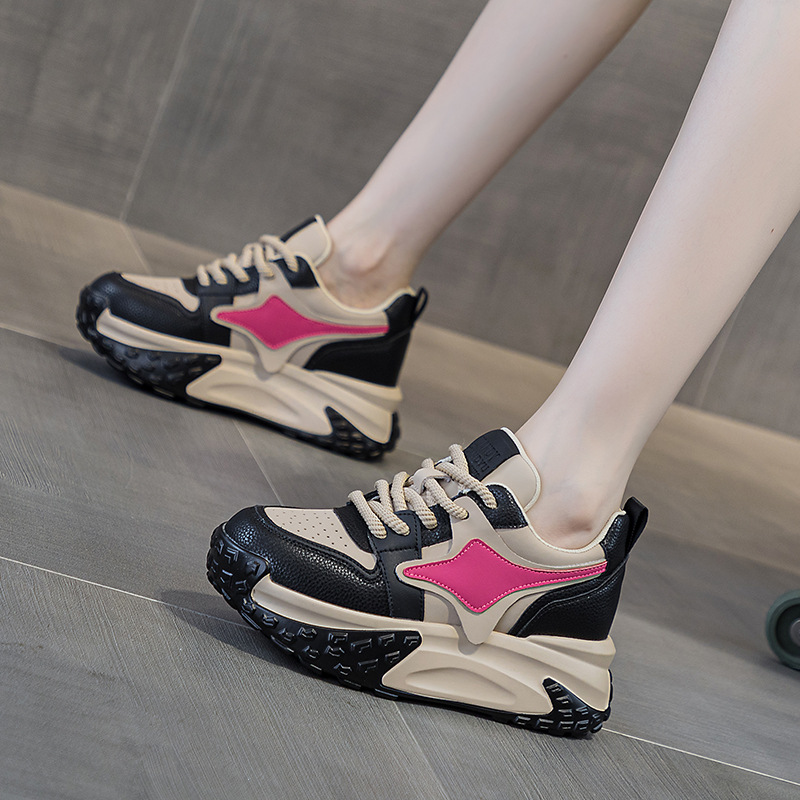 Весенние женские кроссовки 2025 года, корейский стиль, на толстой подошве, увеличивающие рост, универсальные, популярные, повседневные, модные и стильные.