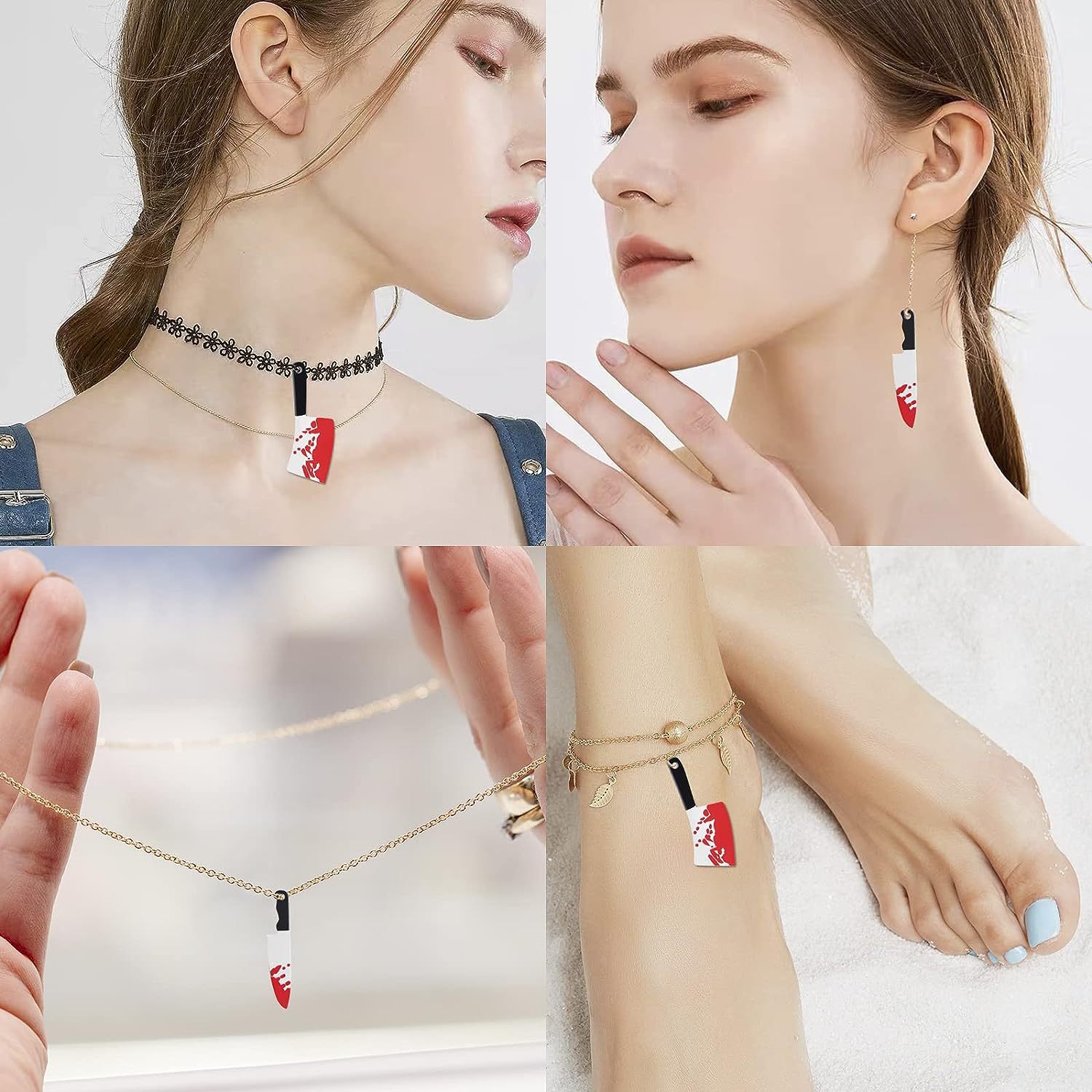 24pcs моделирование Хэллоуин кухонный нож кулон акриловые украшения DIY аксессуары с коробкой креативные аксессуары для ключей