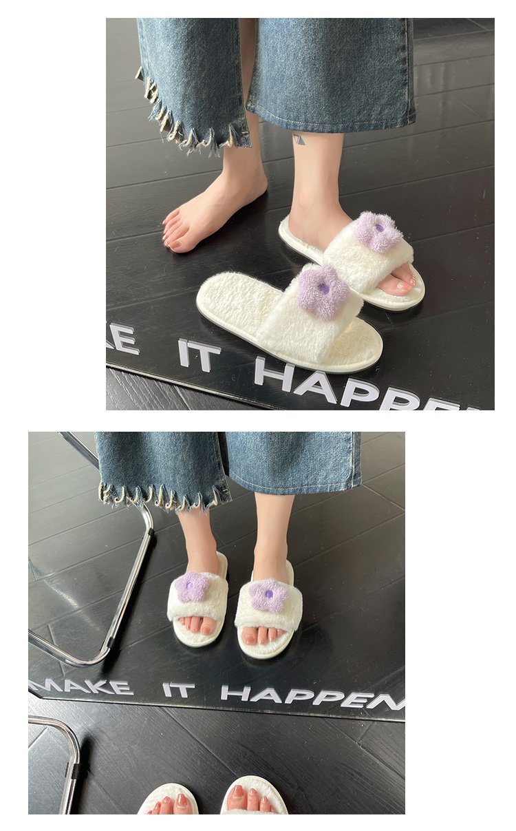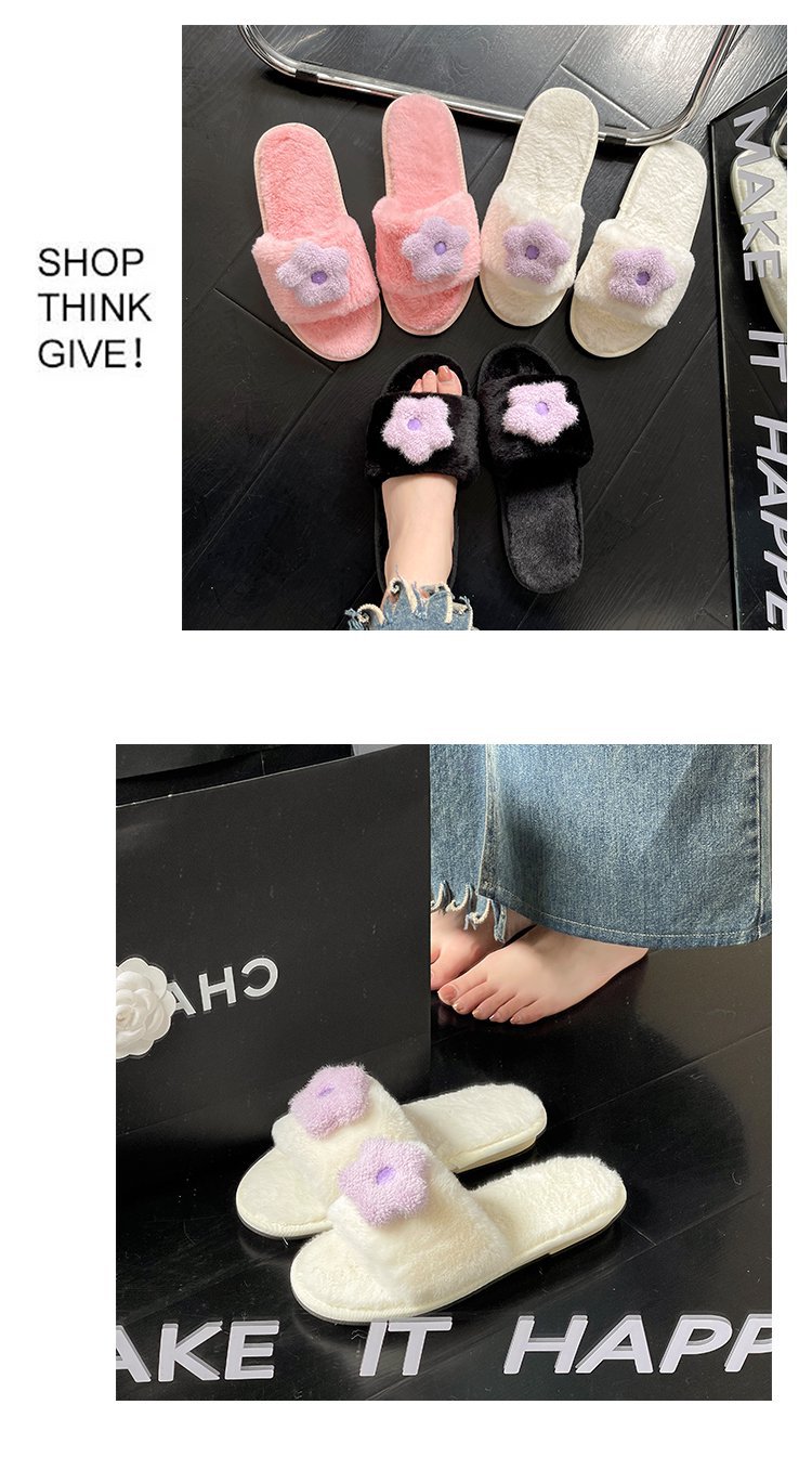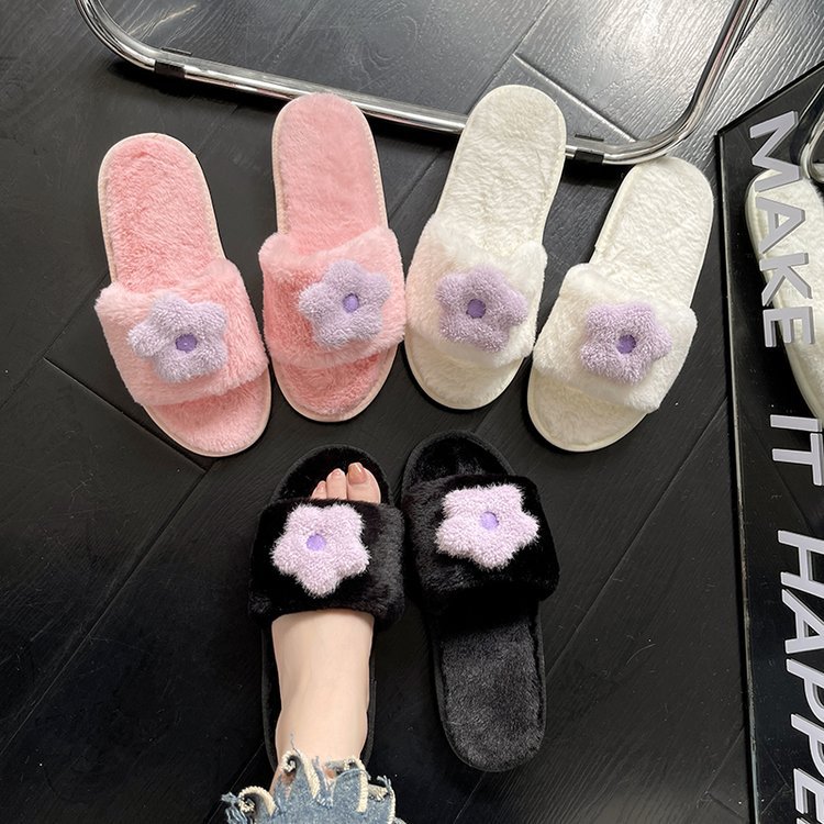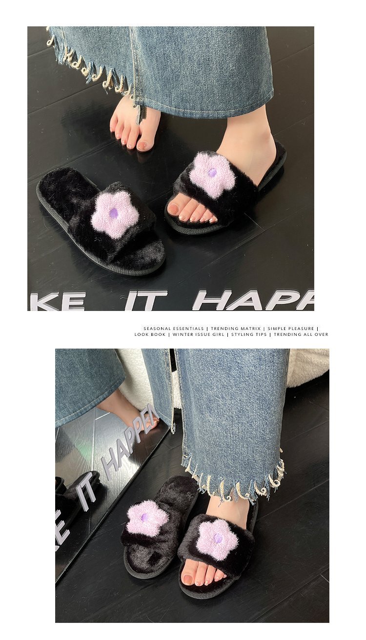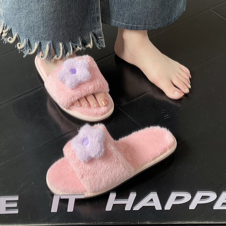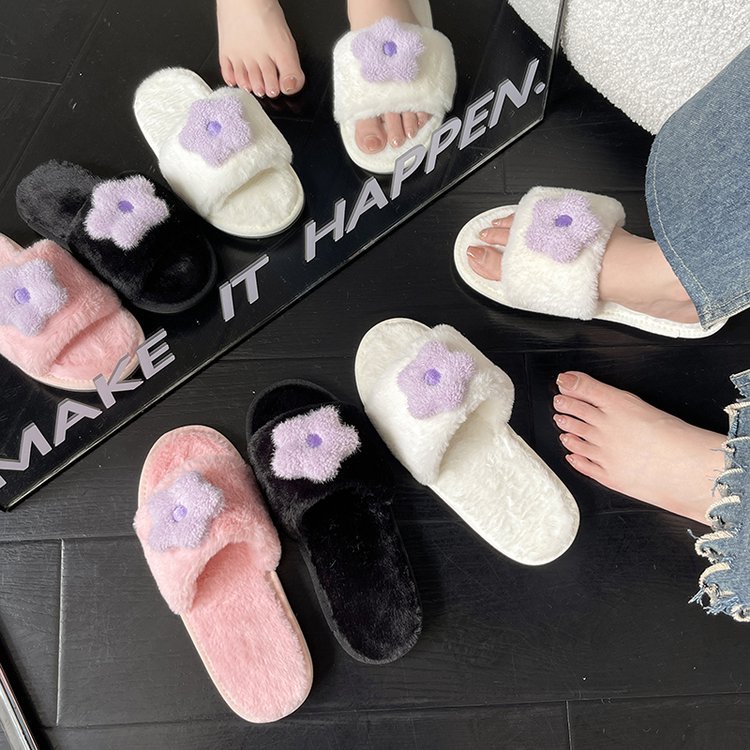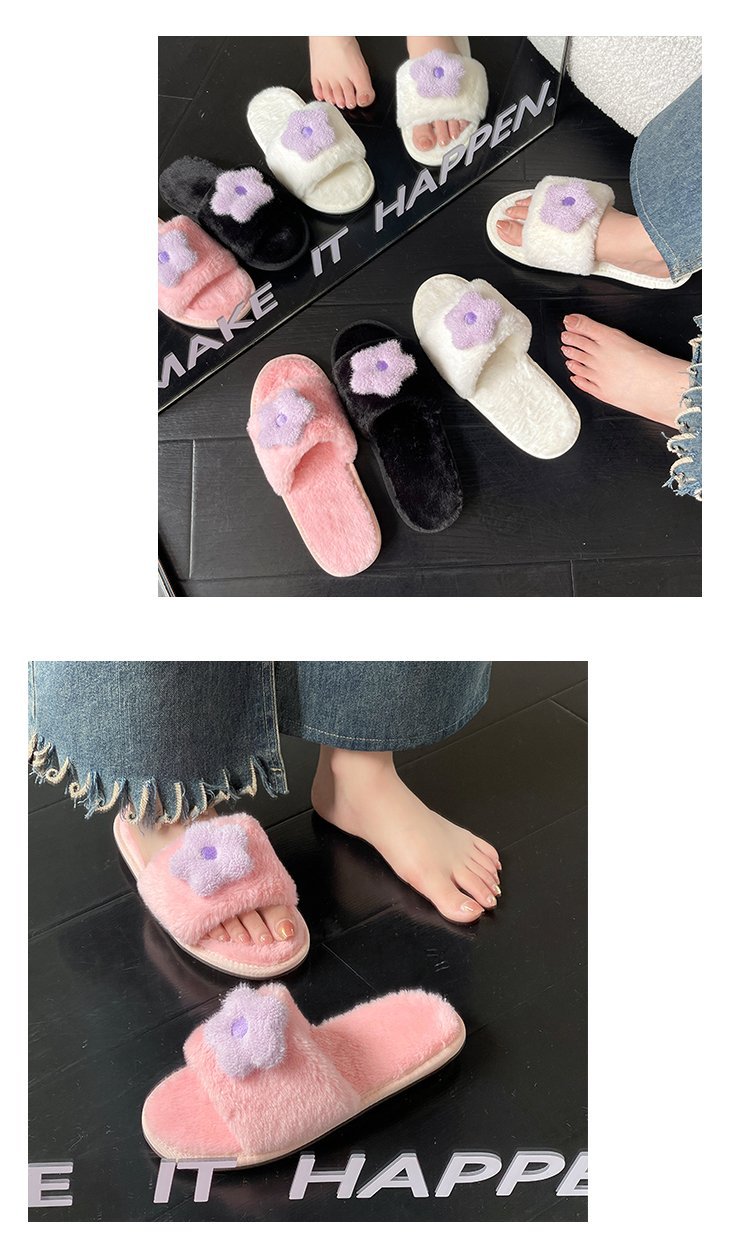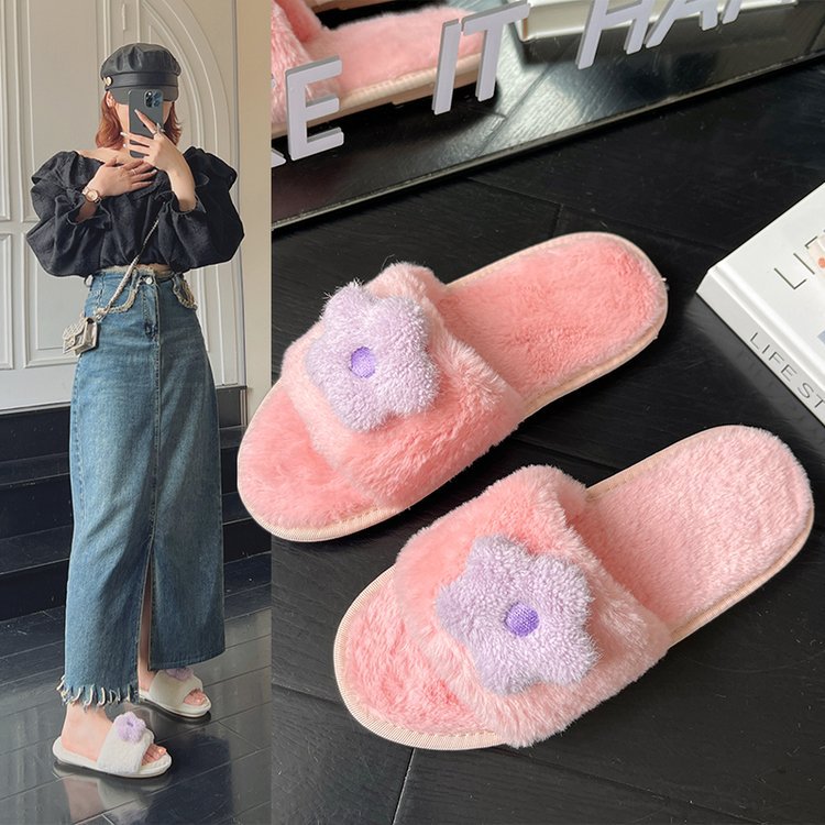 Легкие нескользящие повседневные тапочки-слипоны на осень-зиму 2025 года для дома и улицы с цветочным меховым дизайном